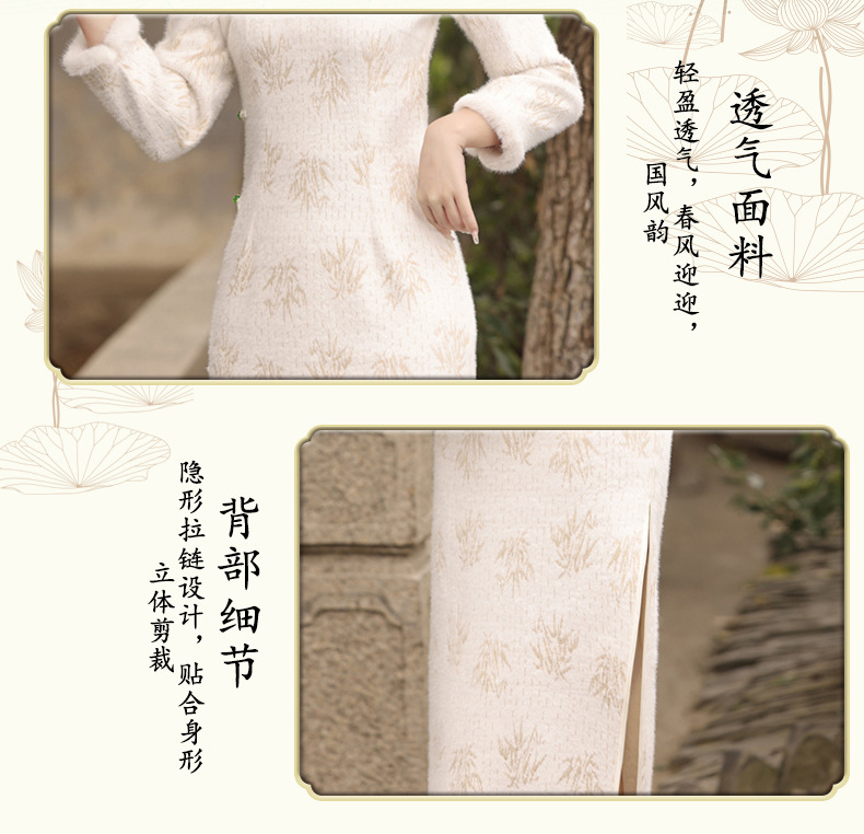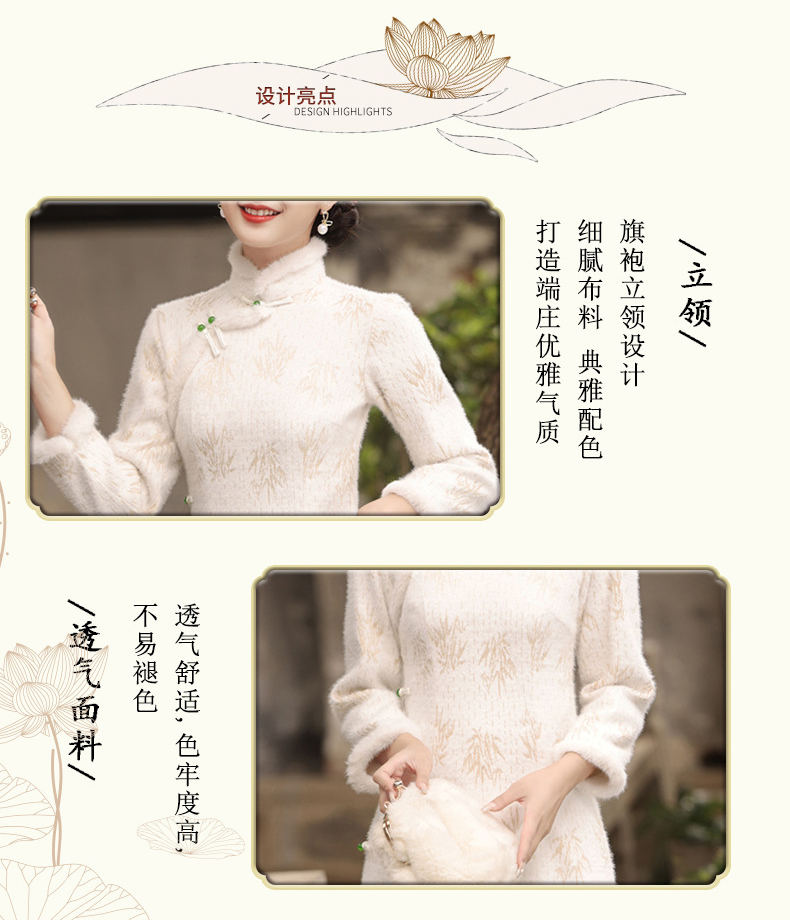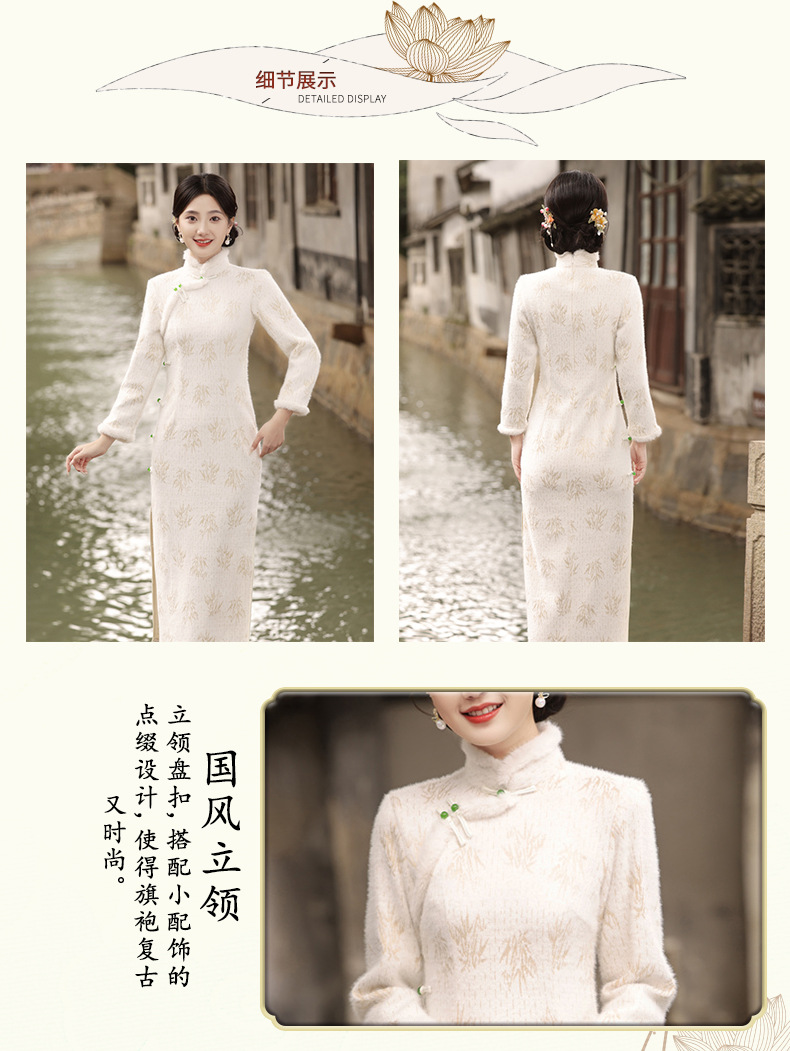 冬季新款,加毛加厚针织雪尼尔侧八扣长款旗袍中国风开衩女旗袍SJT-395