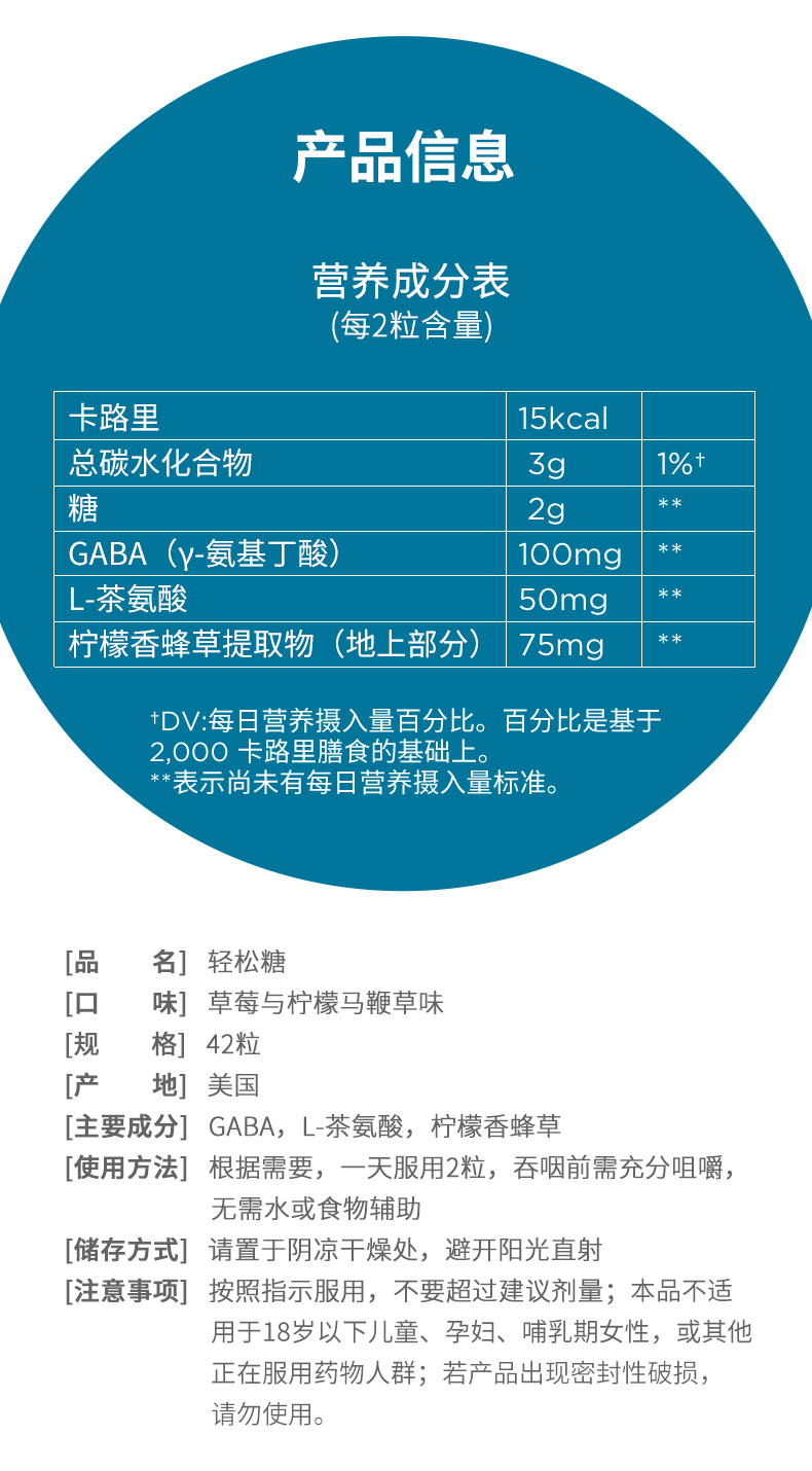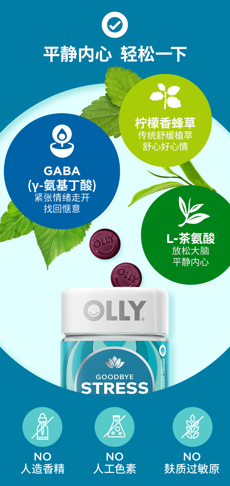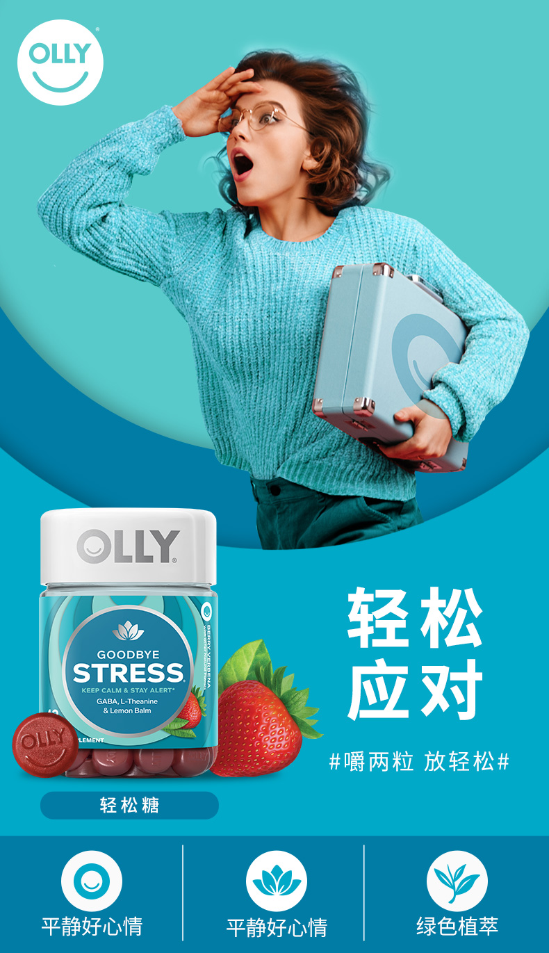 OLLY对抗压力软糖42粒/瓶 GABA氨基丁酸 缓解焦虑(效期26-8)