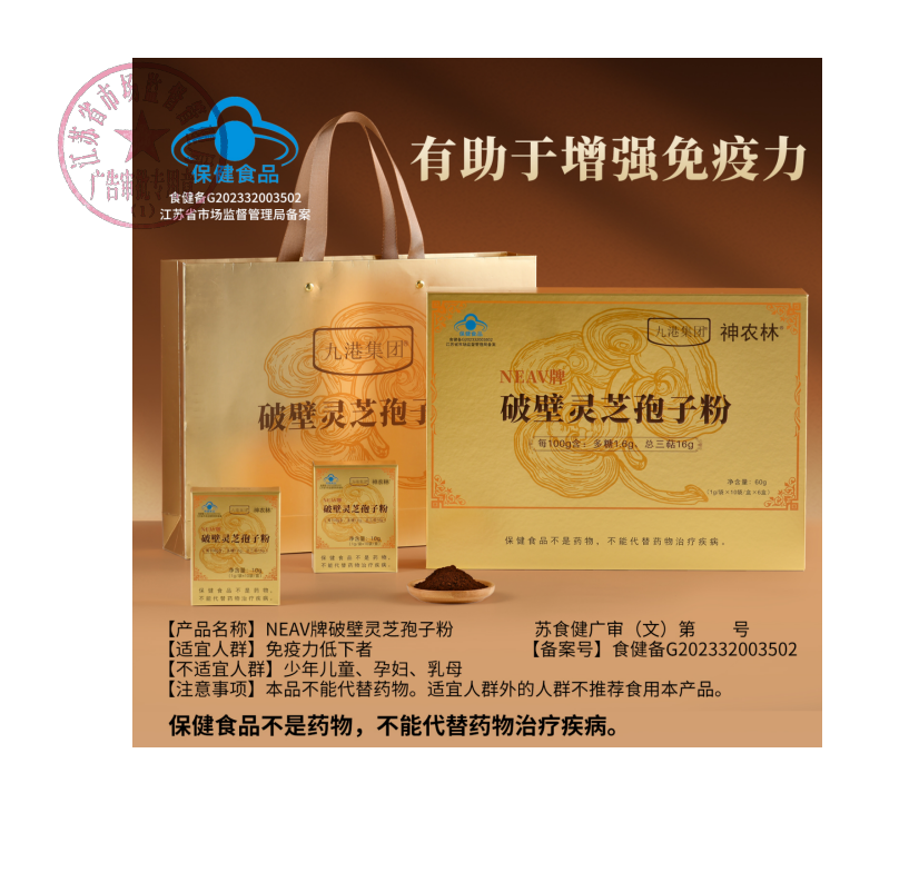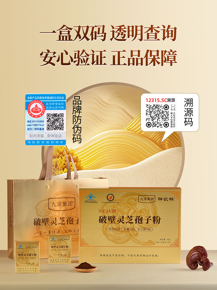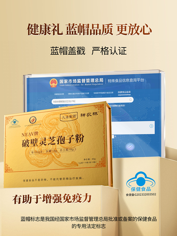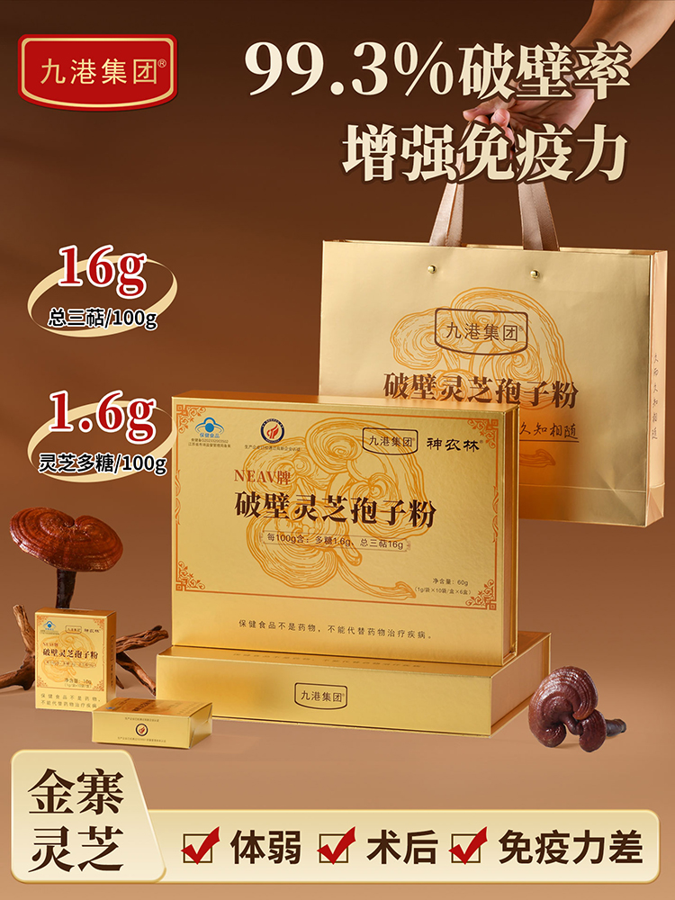 热卖中!!九港集团神农林破壁灵芝孢子粉 增强免疫 蓝帽认证 日常滋补 送长辈父母健康礼品