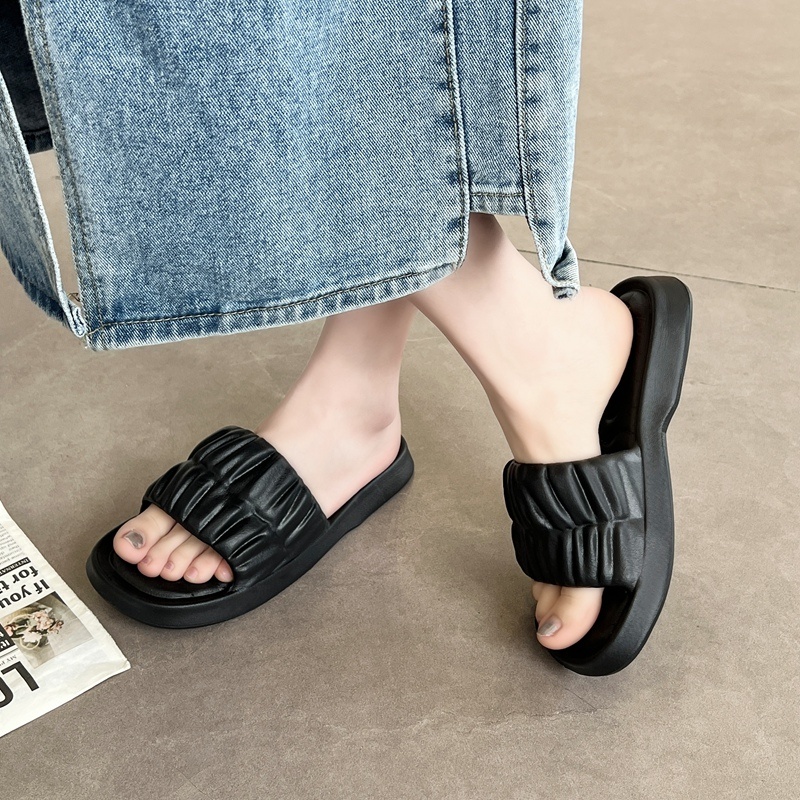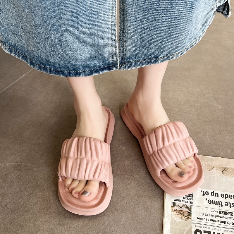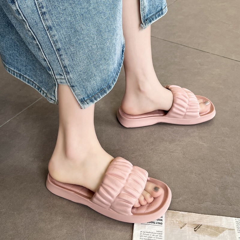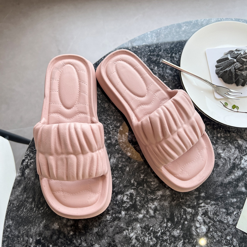 【品名】:蚂蚁之恋 时尚褶皱糖果色居家外穿女士凉拖 3双装