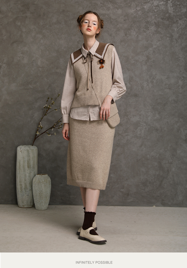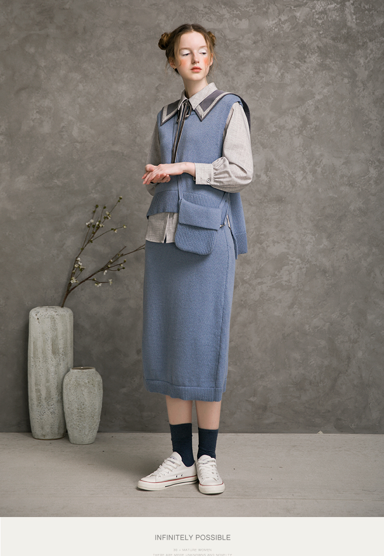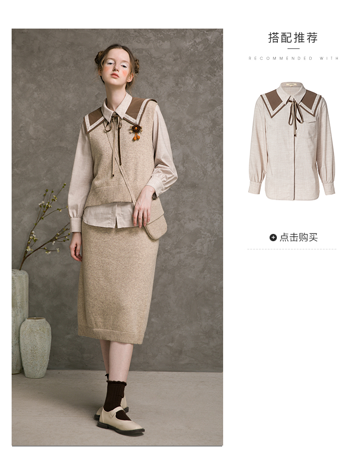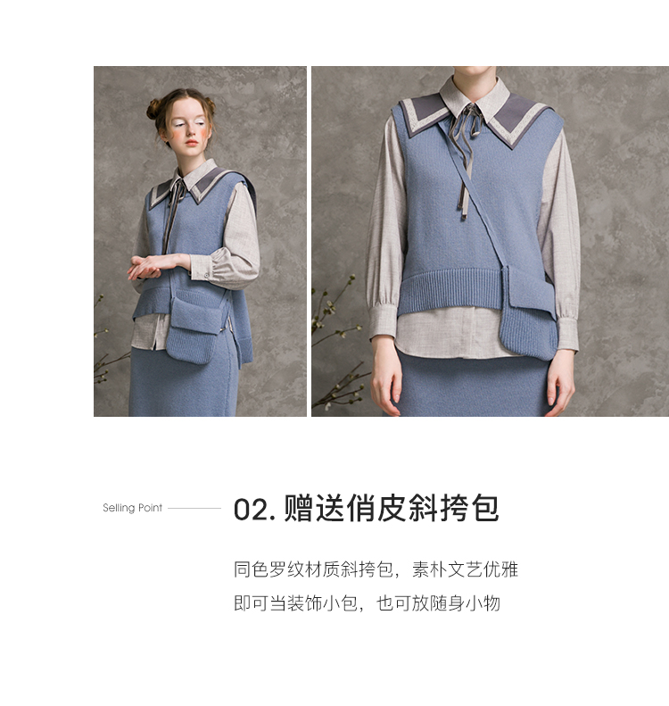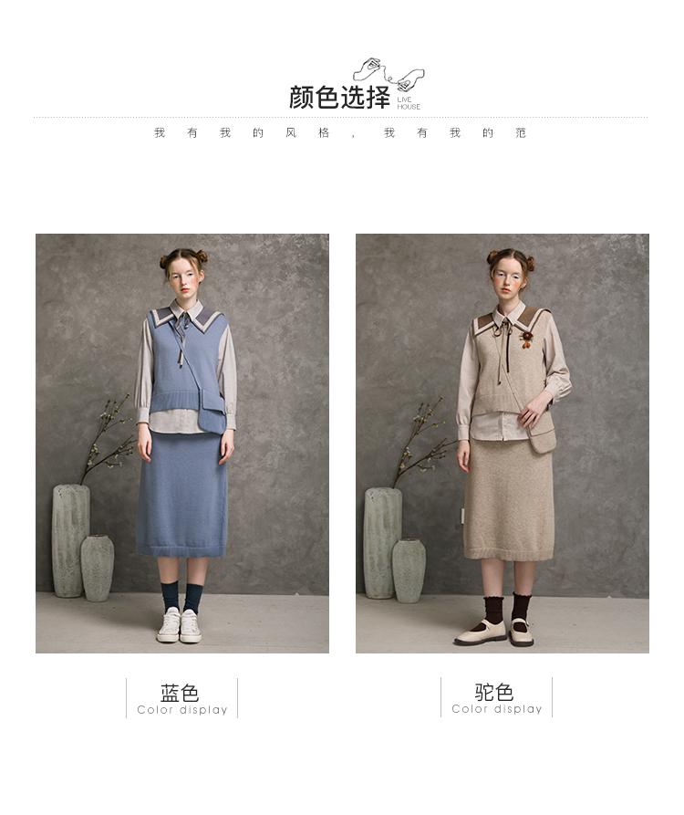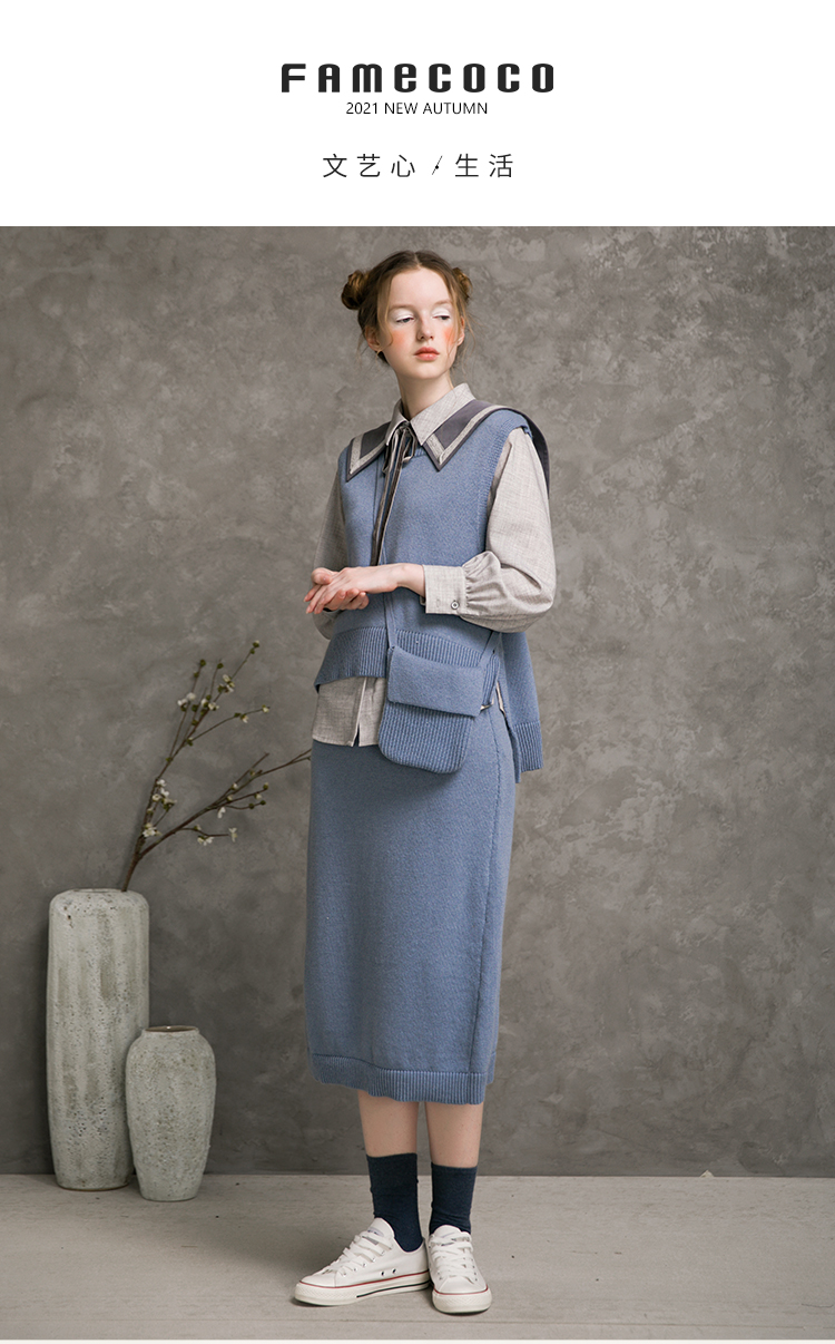 famecoco范可儿套装裙秋气质时尚绵羊毛两件套裙子F216EA014