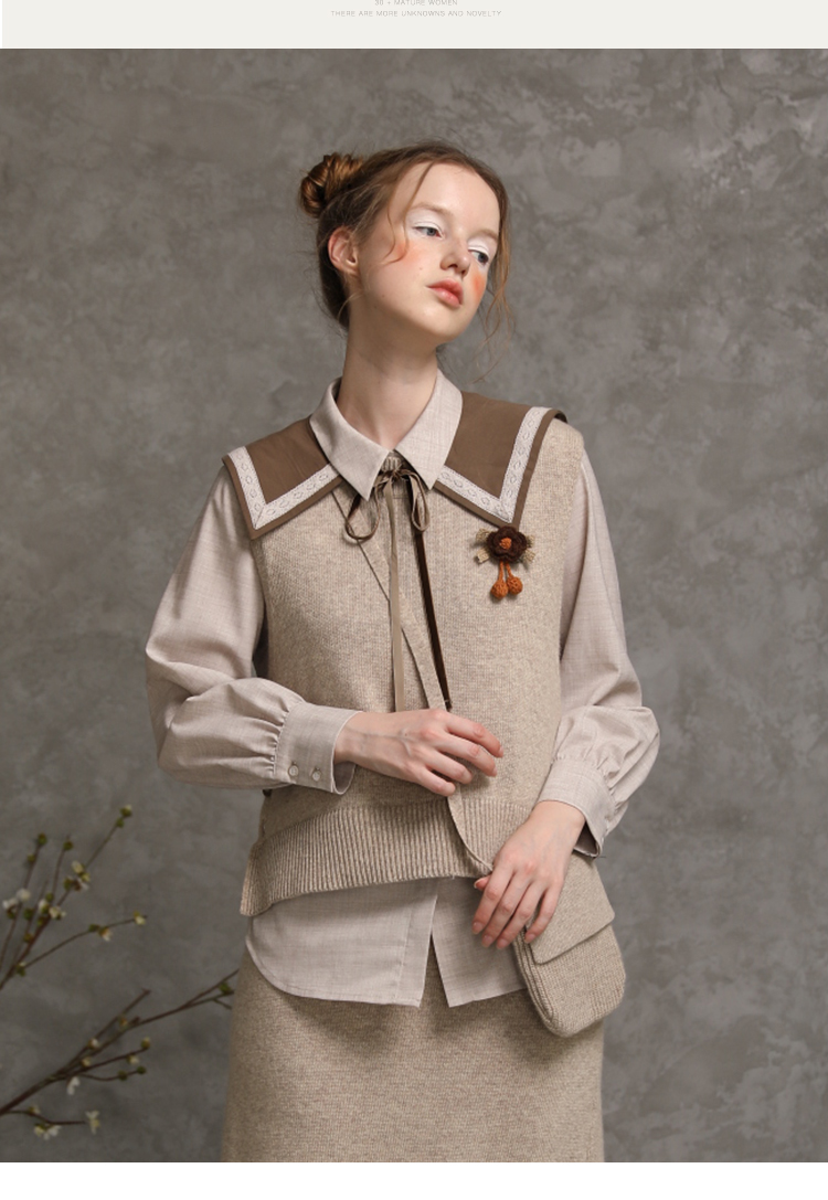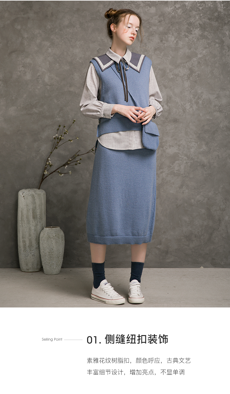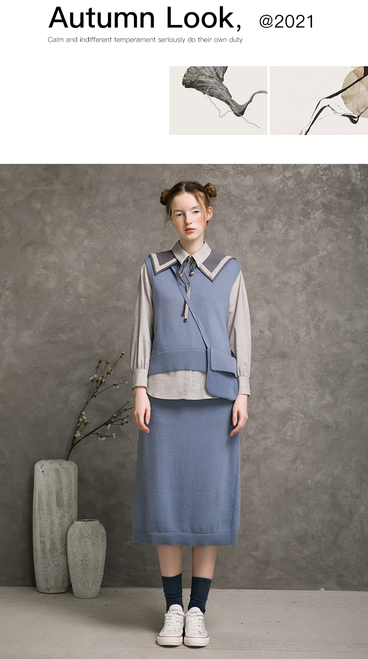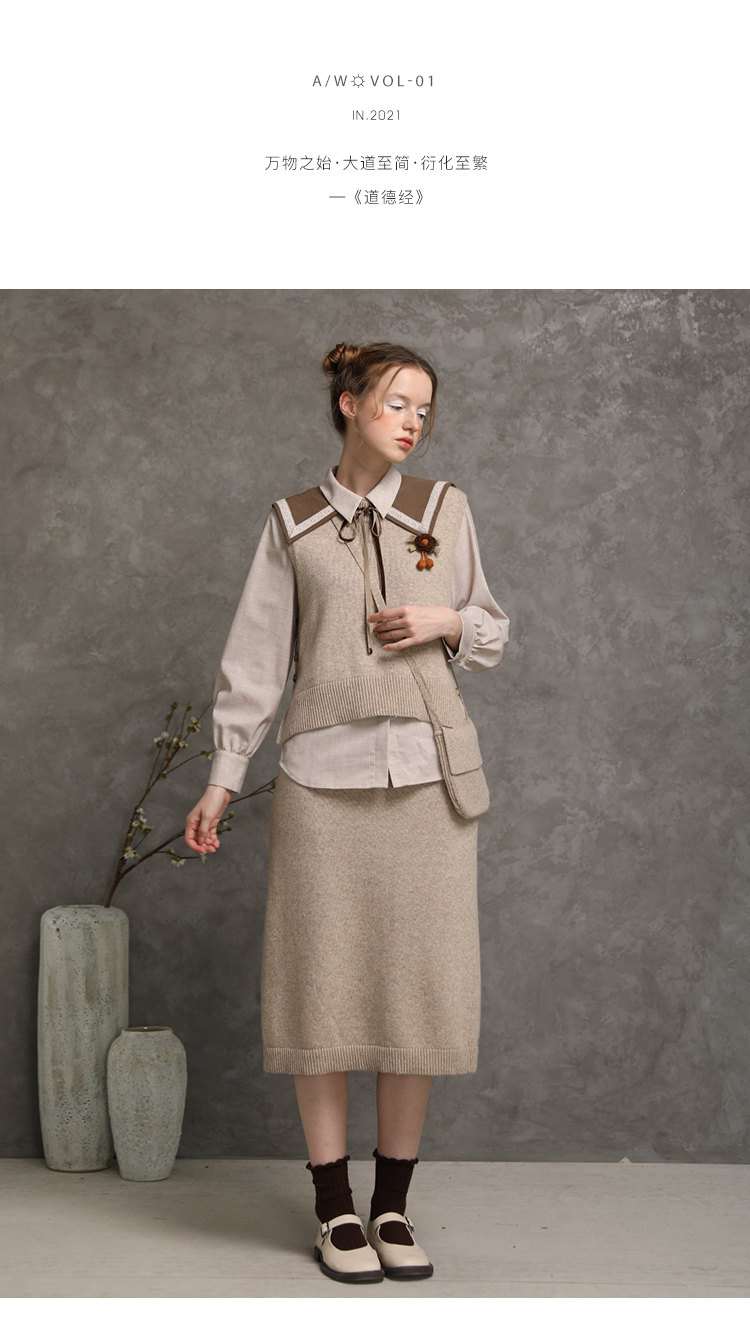 famecoco范可儿套装裙秋气质时尚绵羊毛两件套裙子F216EA014