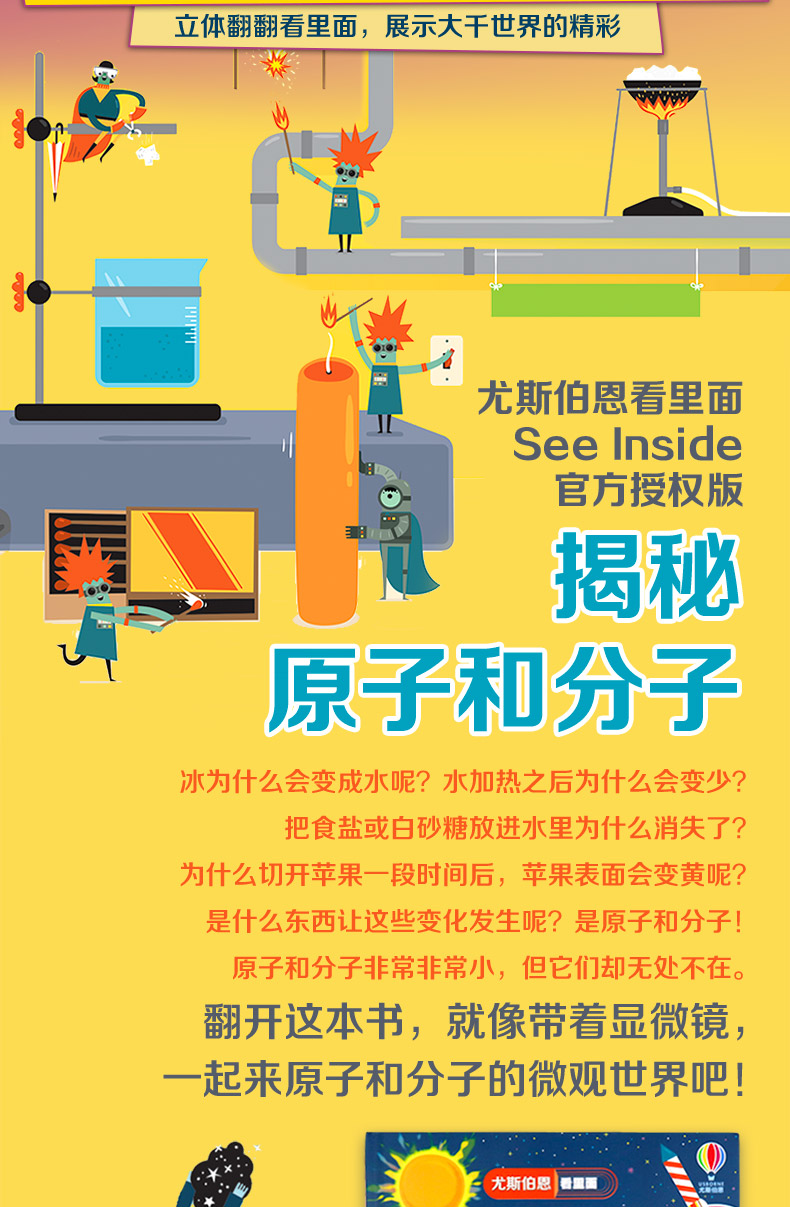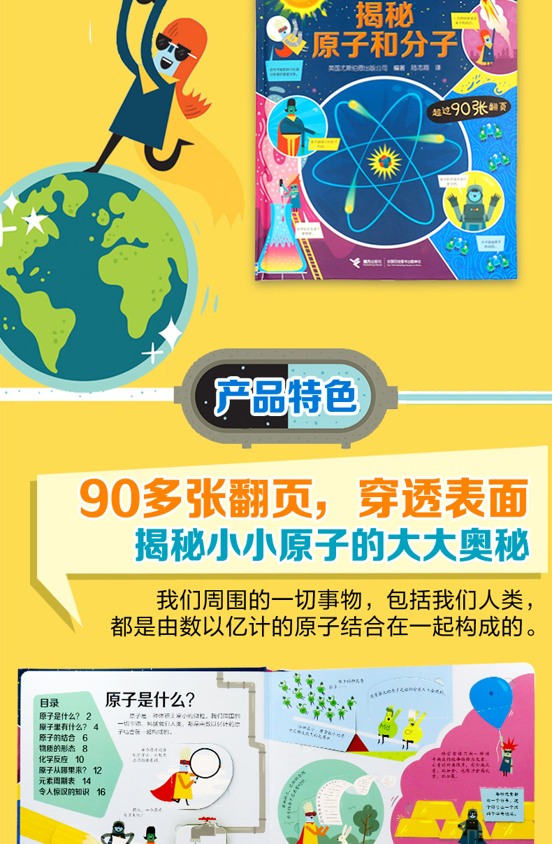 科学探索不止停留于表面,一张张翻页像一个个放大镜、望远镜,像一扇扇大门,让孩子穿越时空,揭开万物背后的“秘密”。