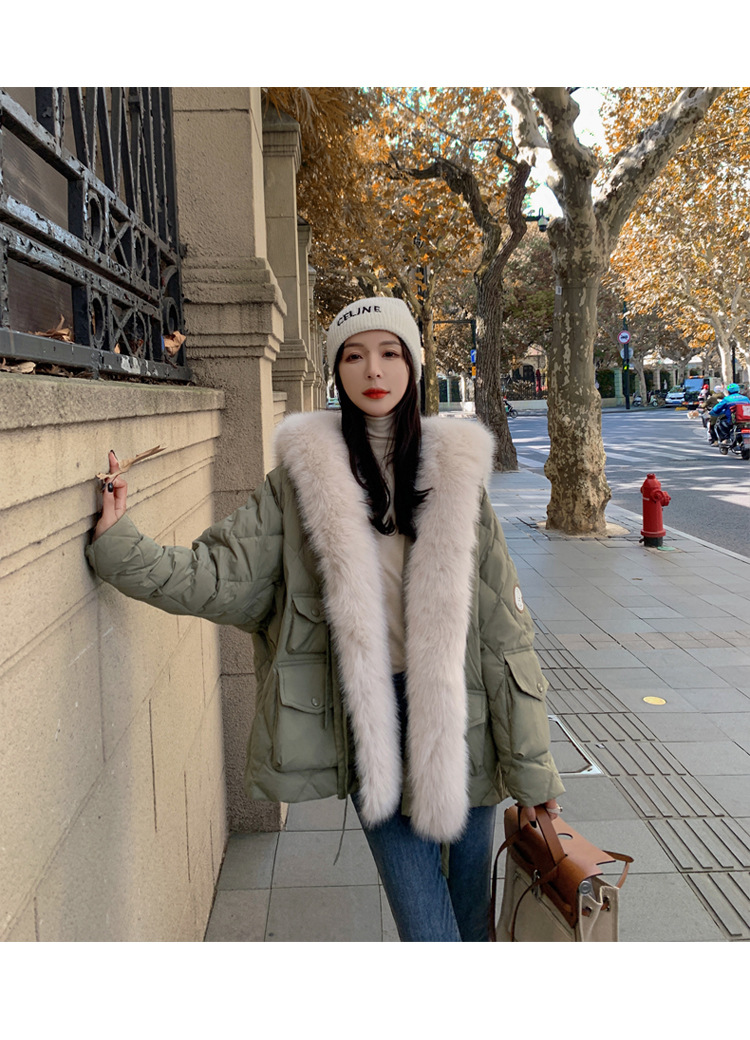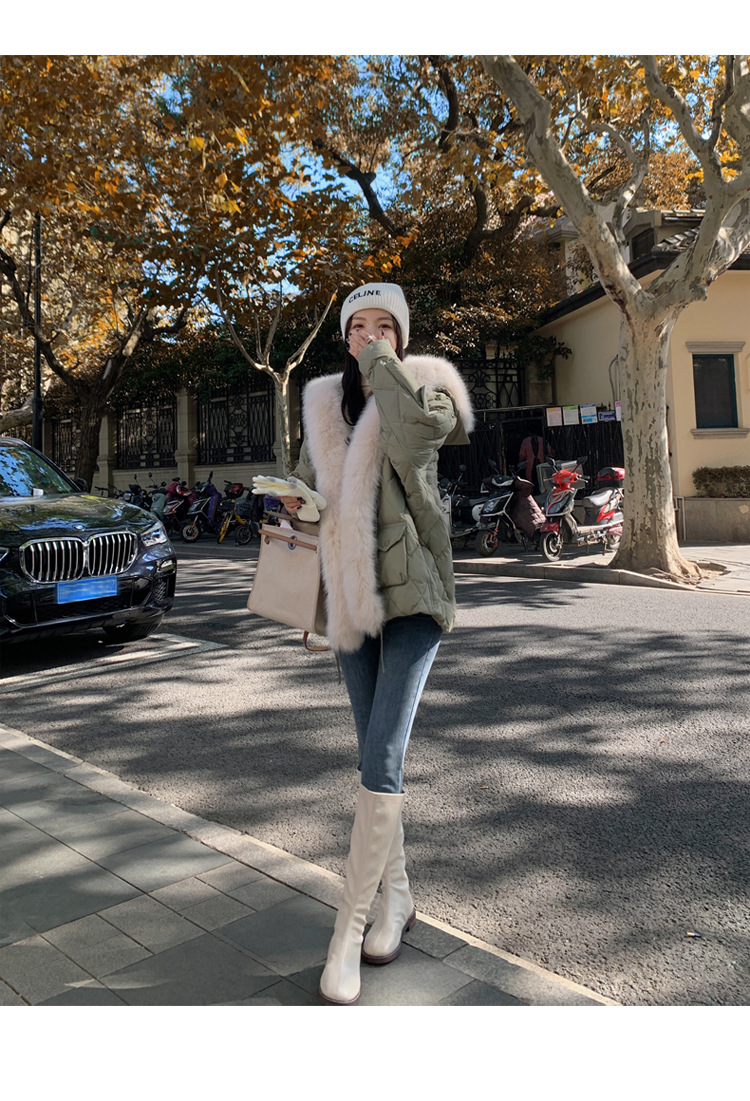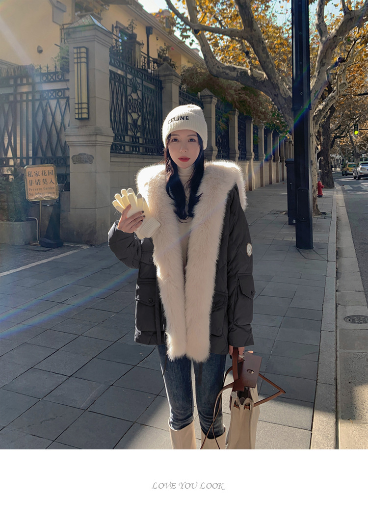 【服装鞋包】-冬季新款绒服派克服女皮外套女保暖中长款