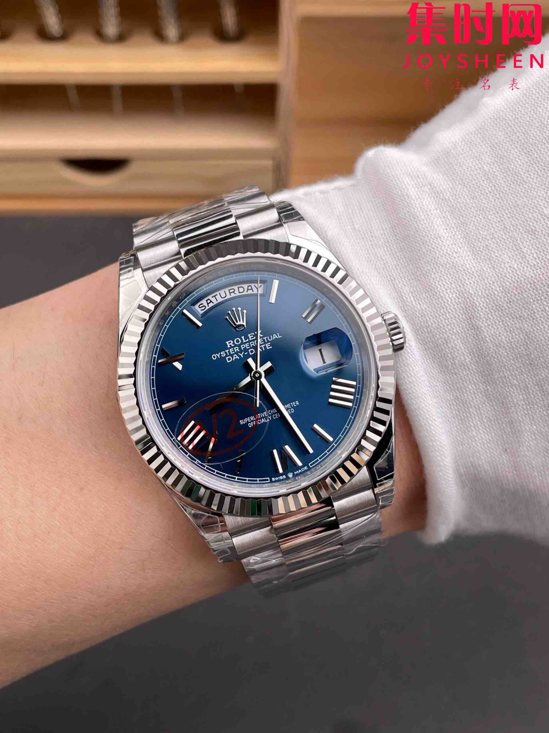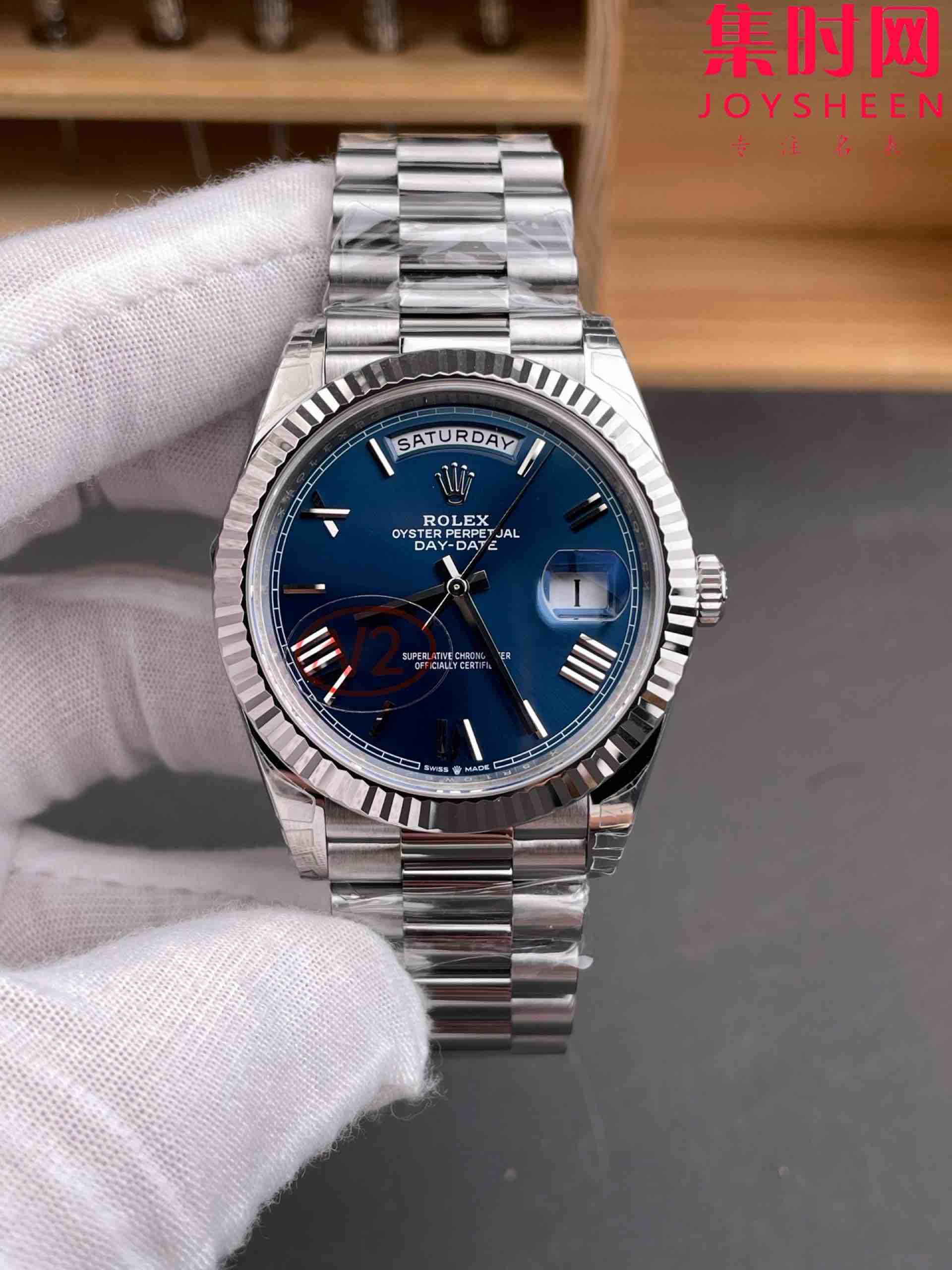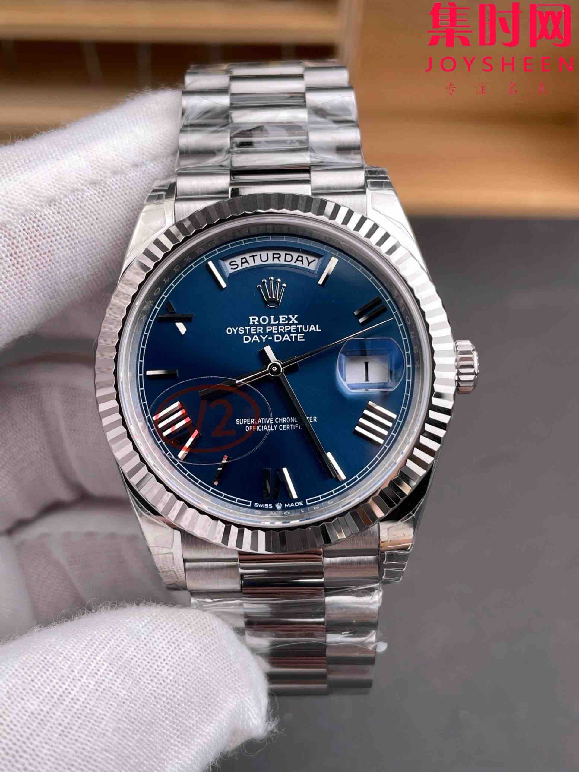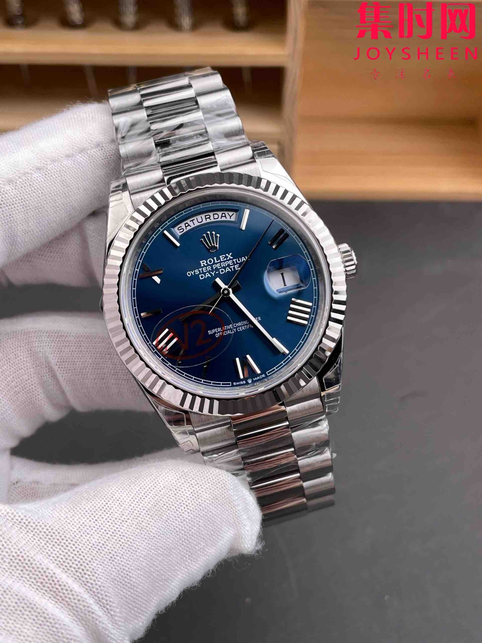 VS配重版 重量180克+ 蓝罗马DD 劳力士星期日历型系列 V2版 丹东3255机 三珠带 男士腕表 日志40mm