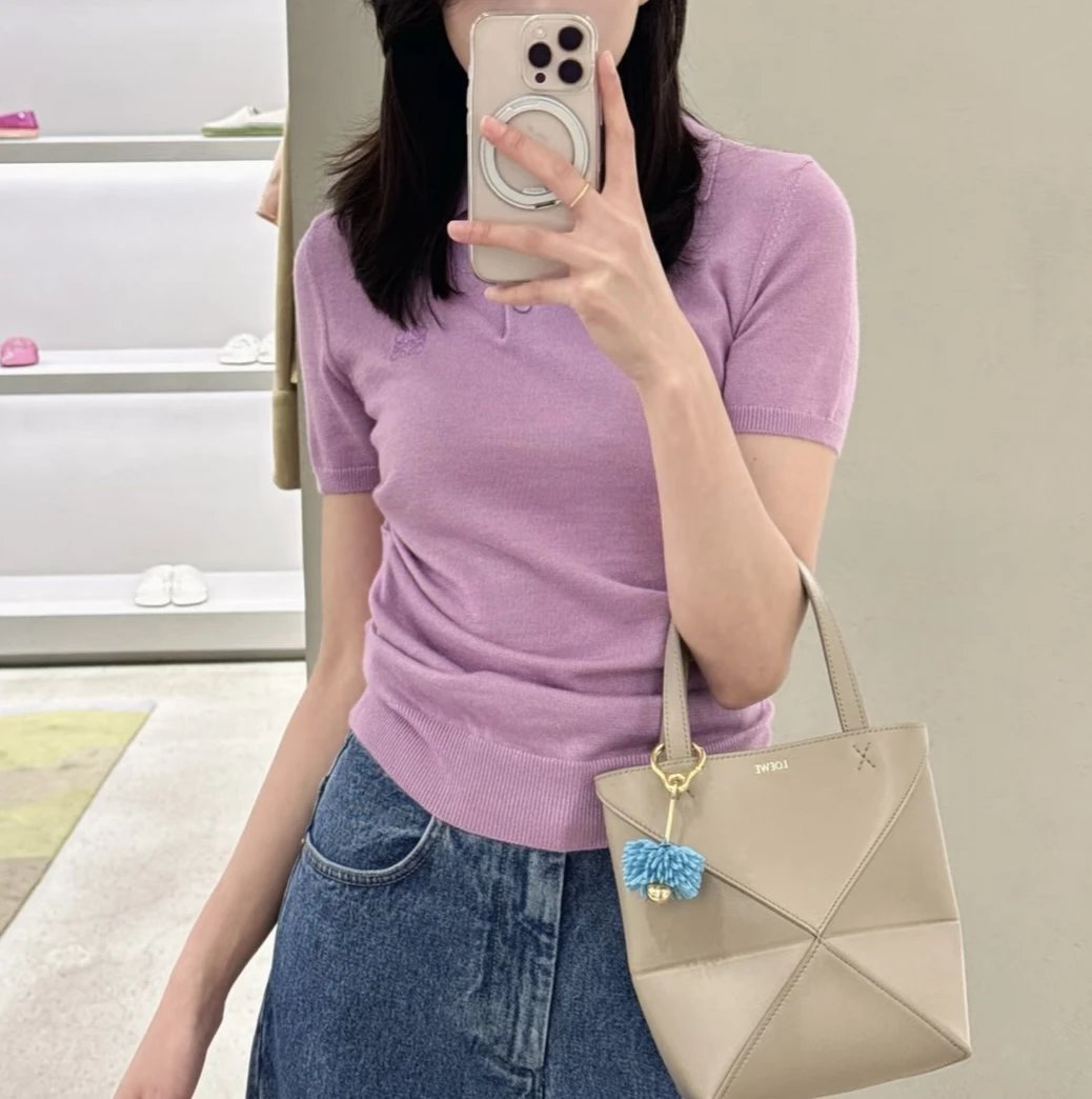 重磅渠道 low丝羊绒针织polo衫 侧面打褶设计 修饰身材