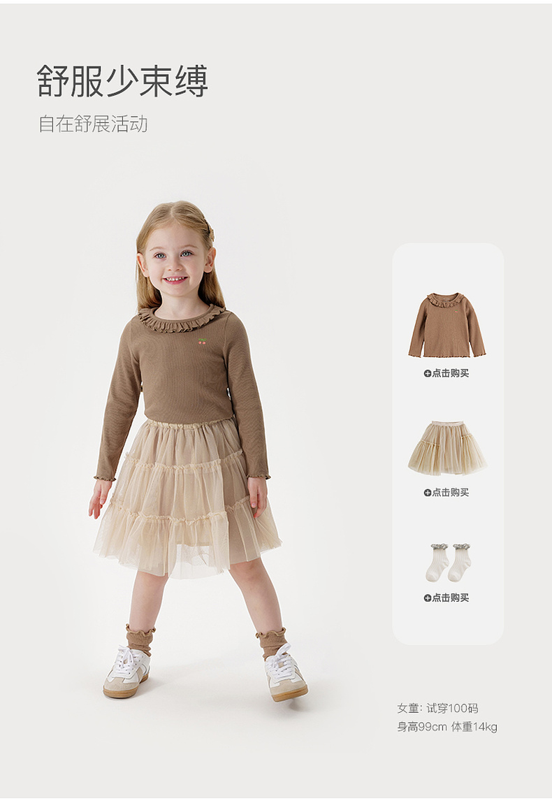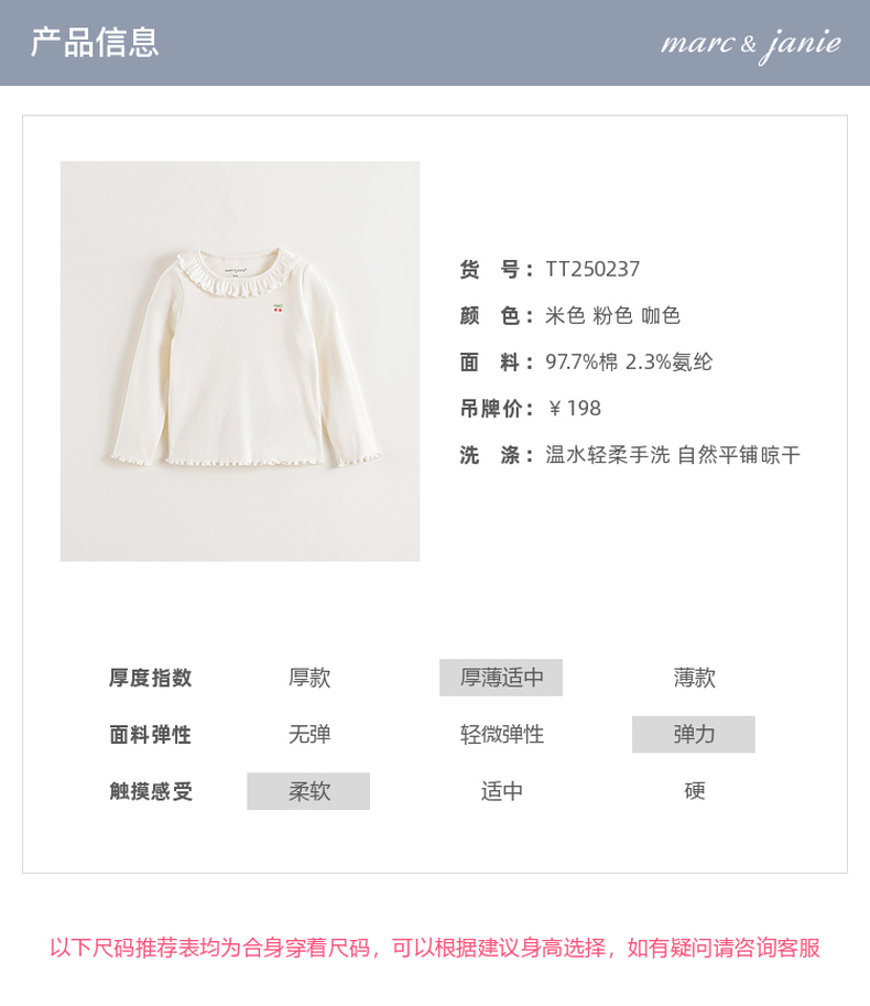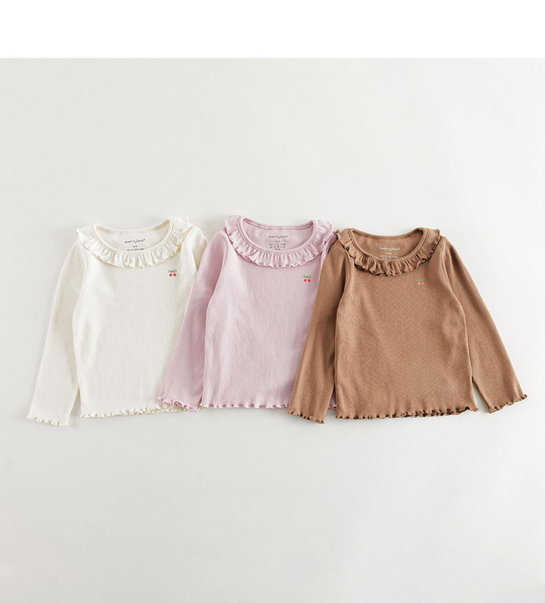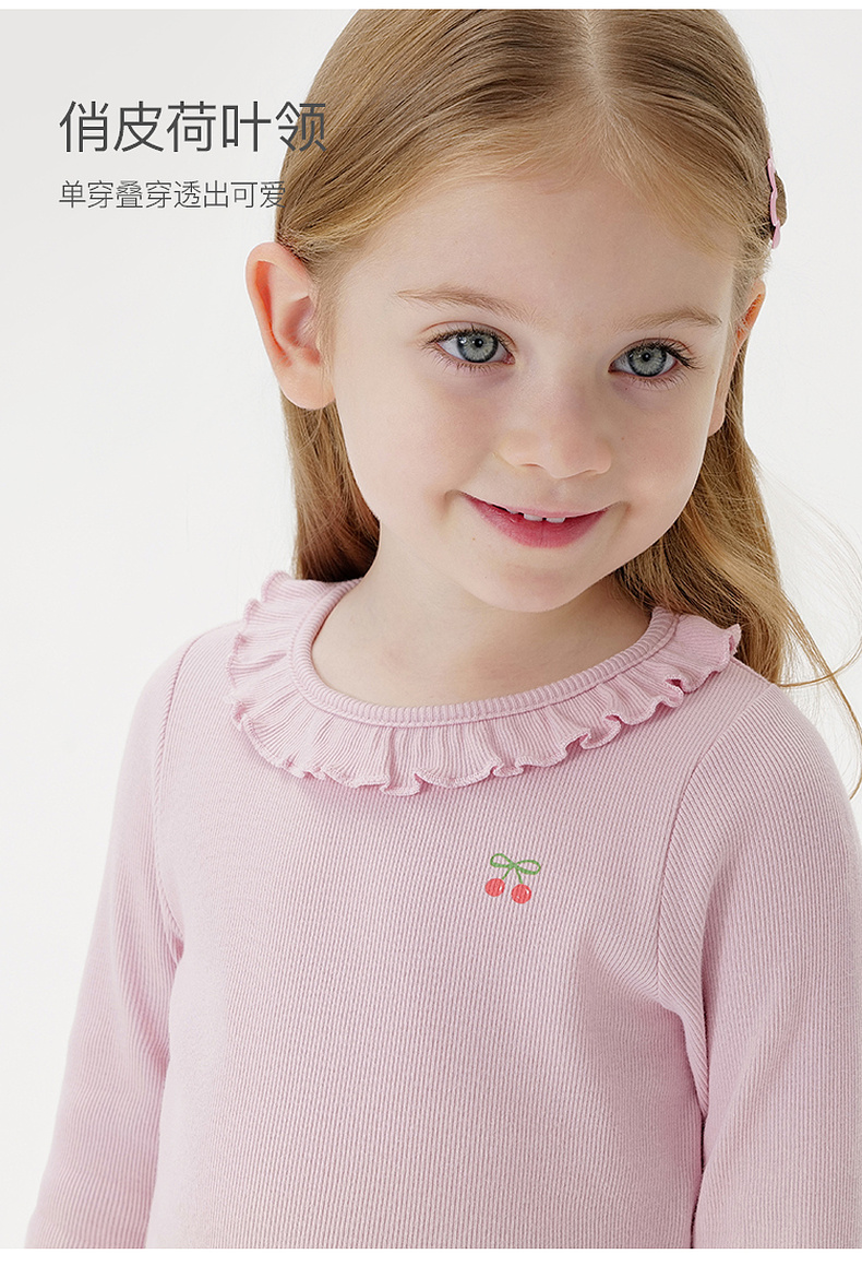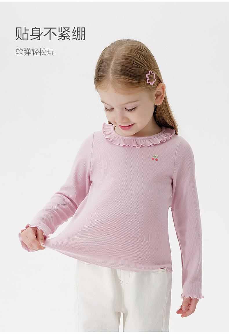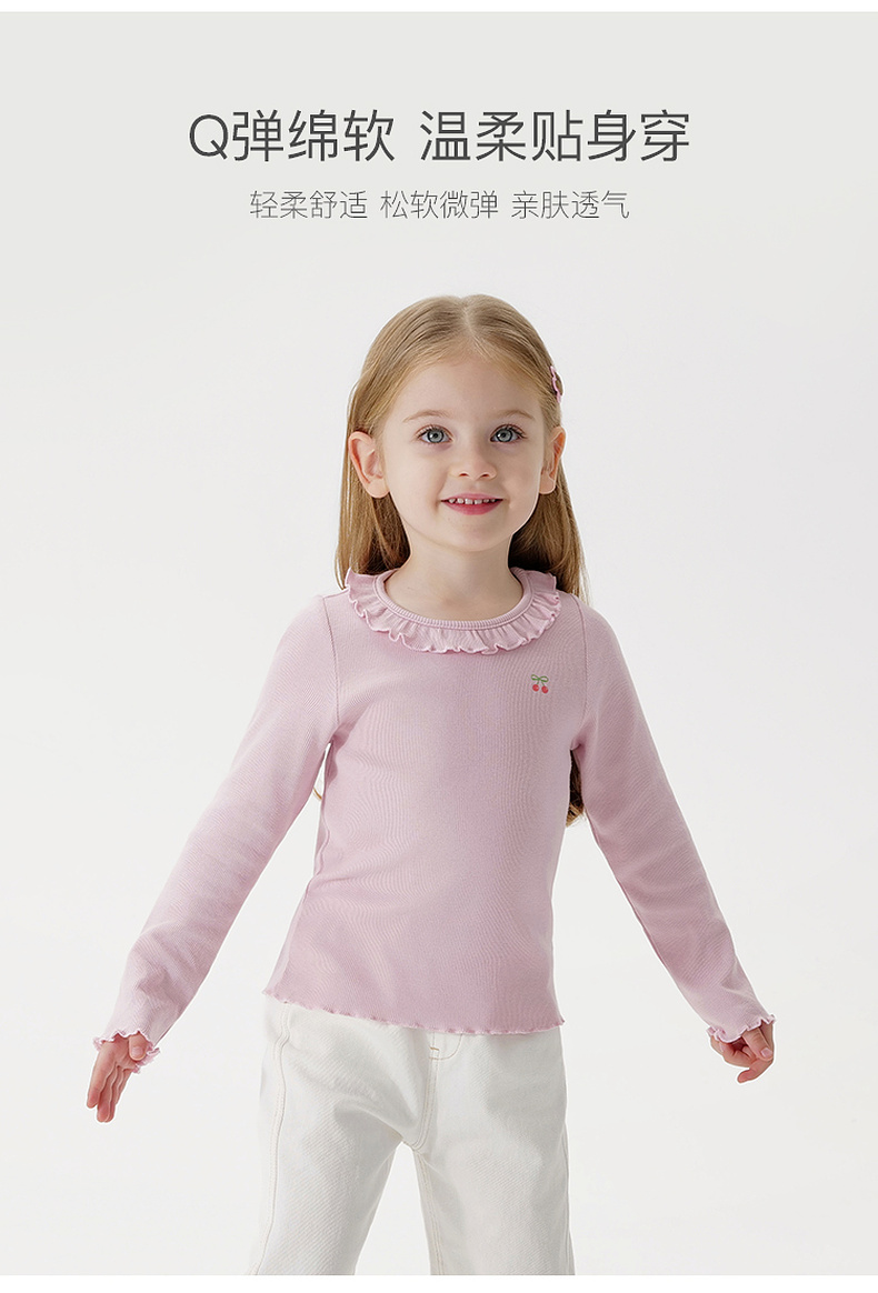 马克珍妮女童花边领弹力打底衫 宝宝T恤上衣2025年春装新款250237
