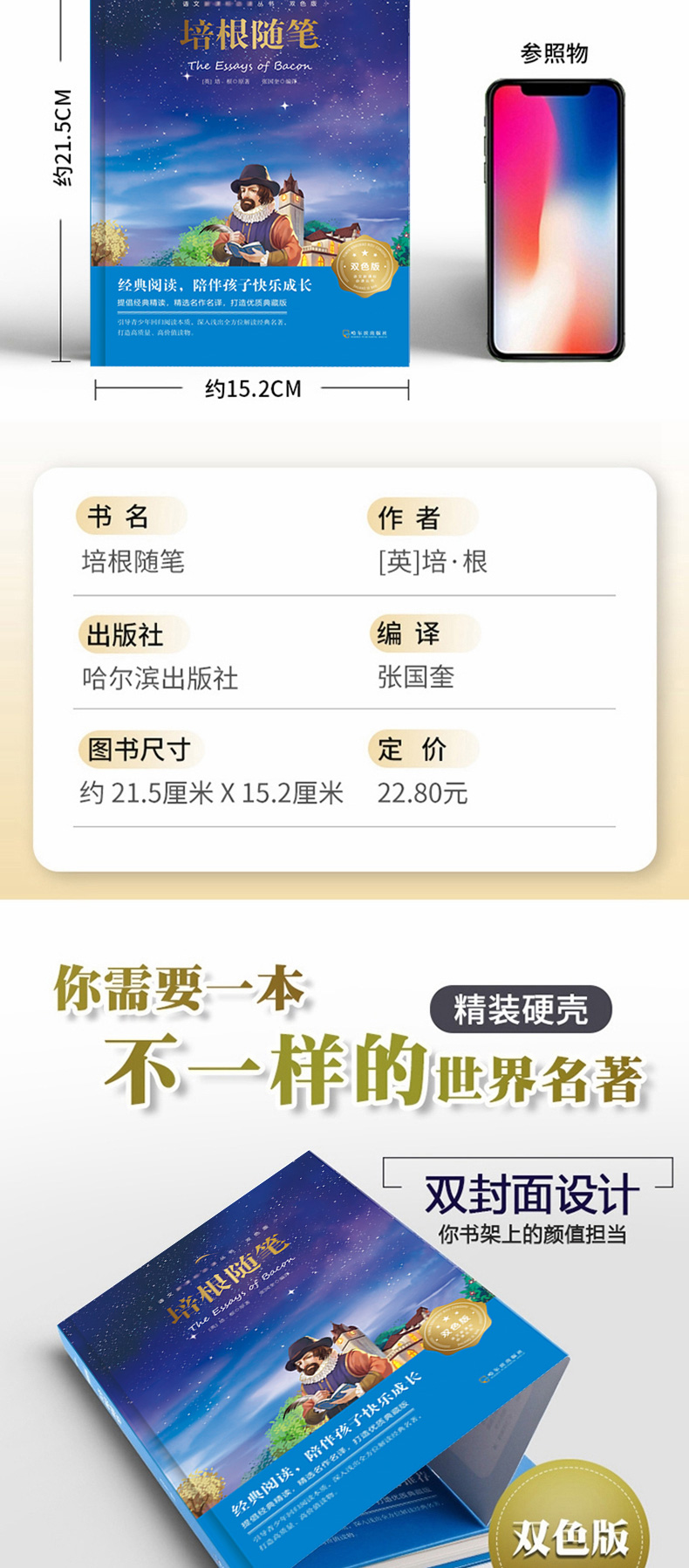 【烫金精装】培根随笔 导读本 四五六七年级中小学生课外阅读书籍 8-12-15岁少年儿童文学名著故事书老师推荐课外经典名著阅读