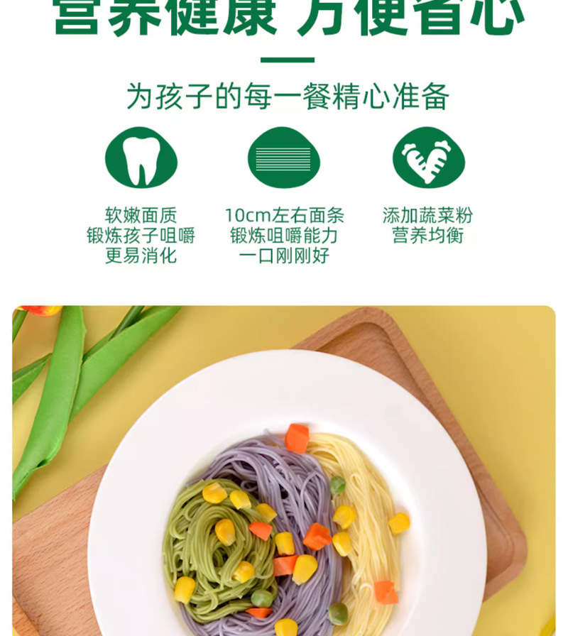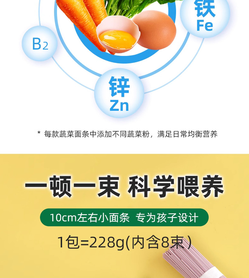 【福利9.9❗6+1营养小面条】一顿一束科学喂养,蔬菜粉+各种营养元素,全面补充日常所需营养,面条蔬菜面龙须面果蔬面细面228/克QQ