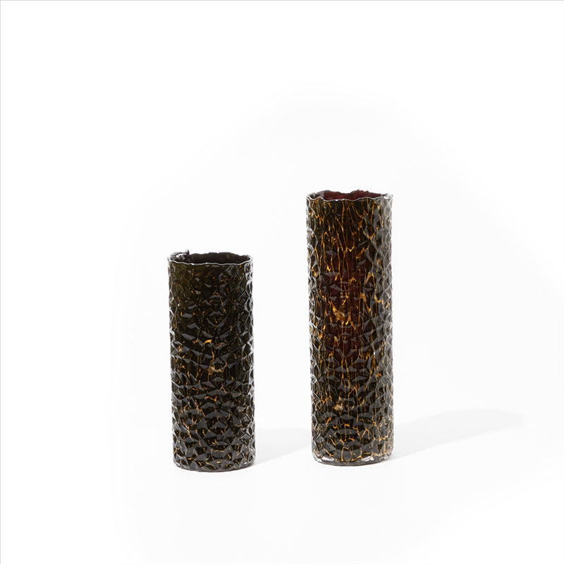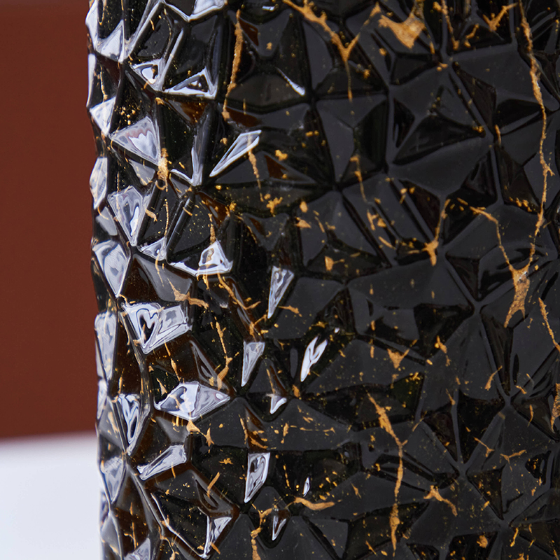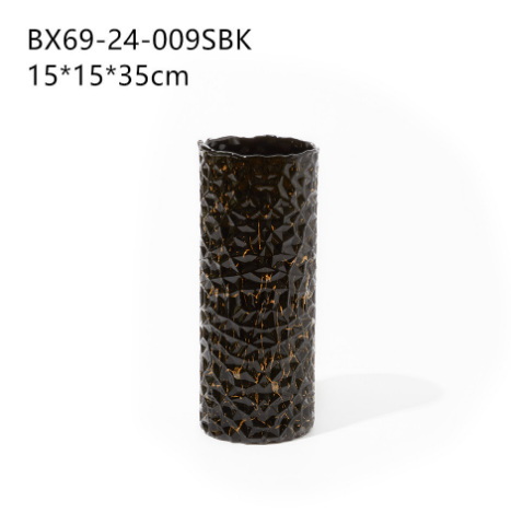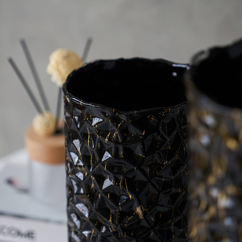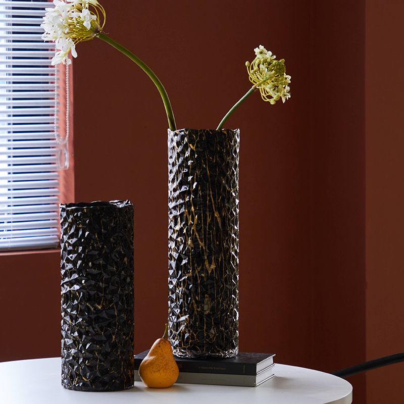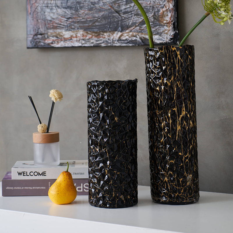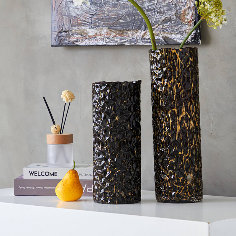 轻奢高级黑金直筒圆柱玻璃花瓶茶几餐桌台面酒店样板房别墅装饰品