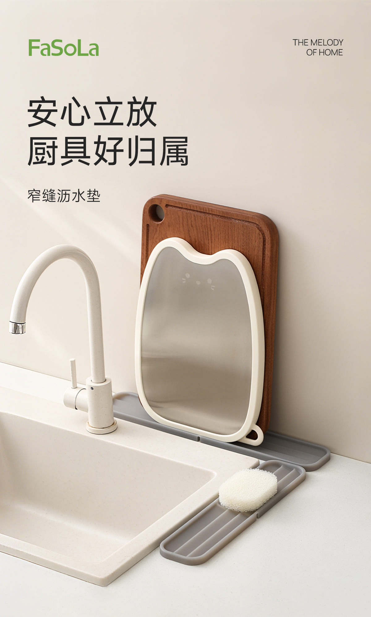 FaSoLa厨房灶台锅盖垫防滑硅胶垫台面防烫垫隔热垫多功能窄缝沥水垫
