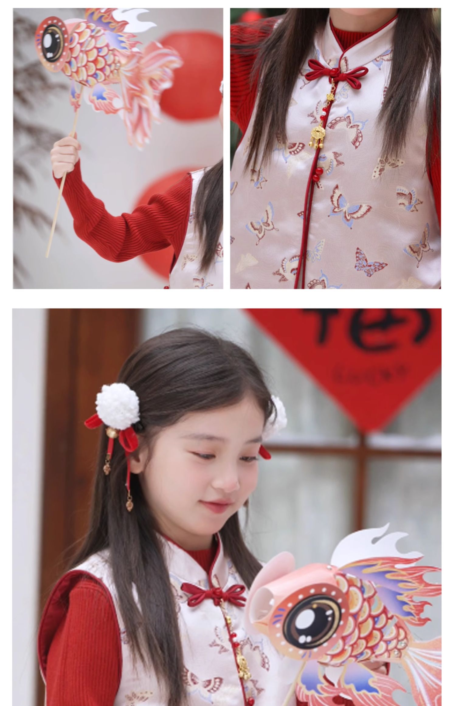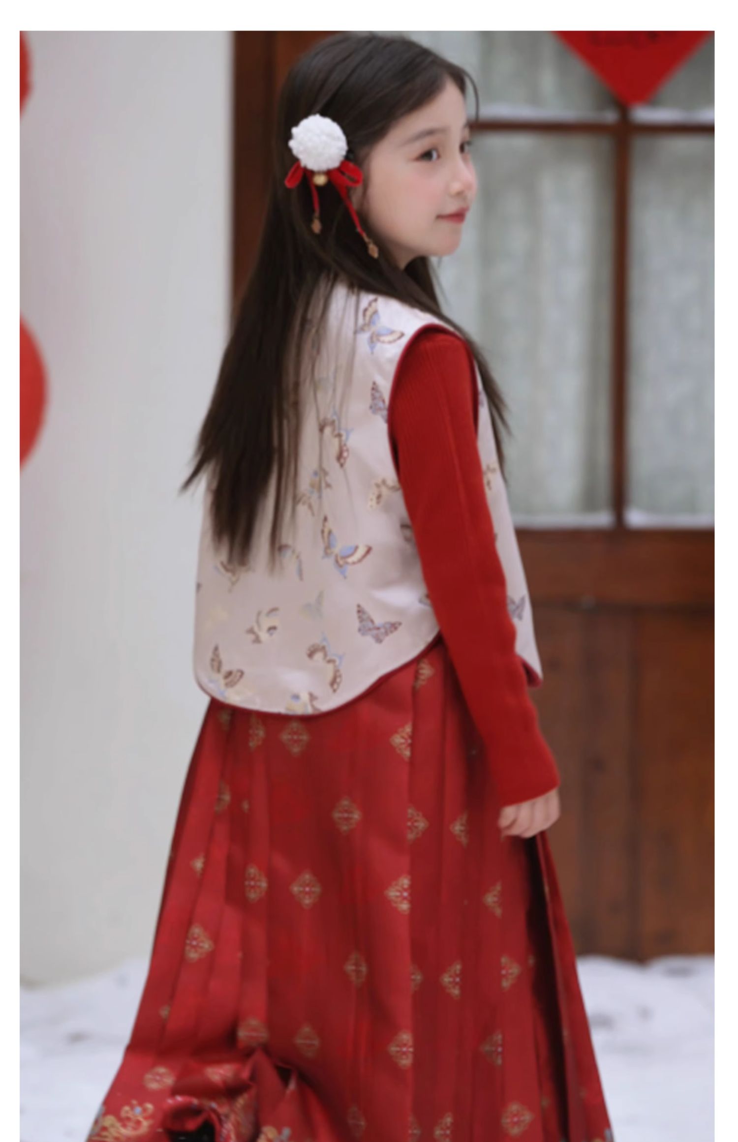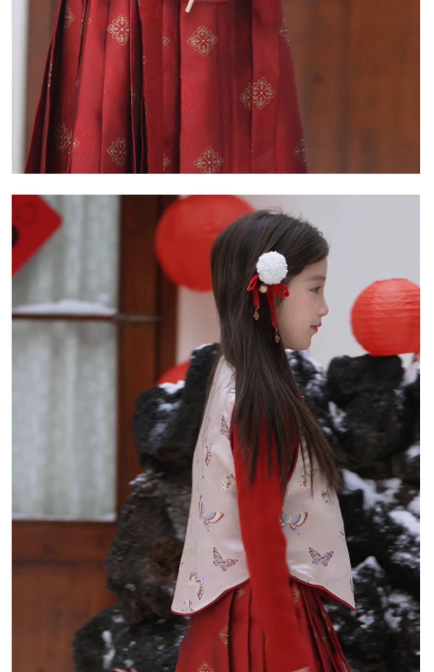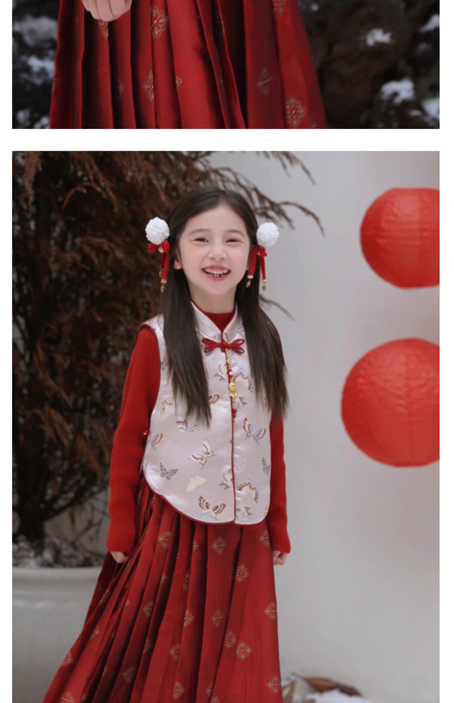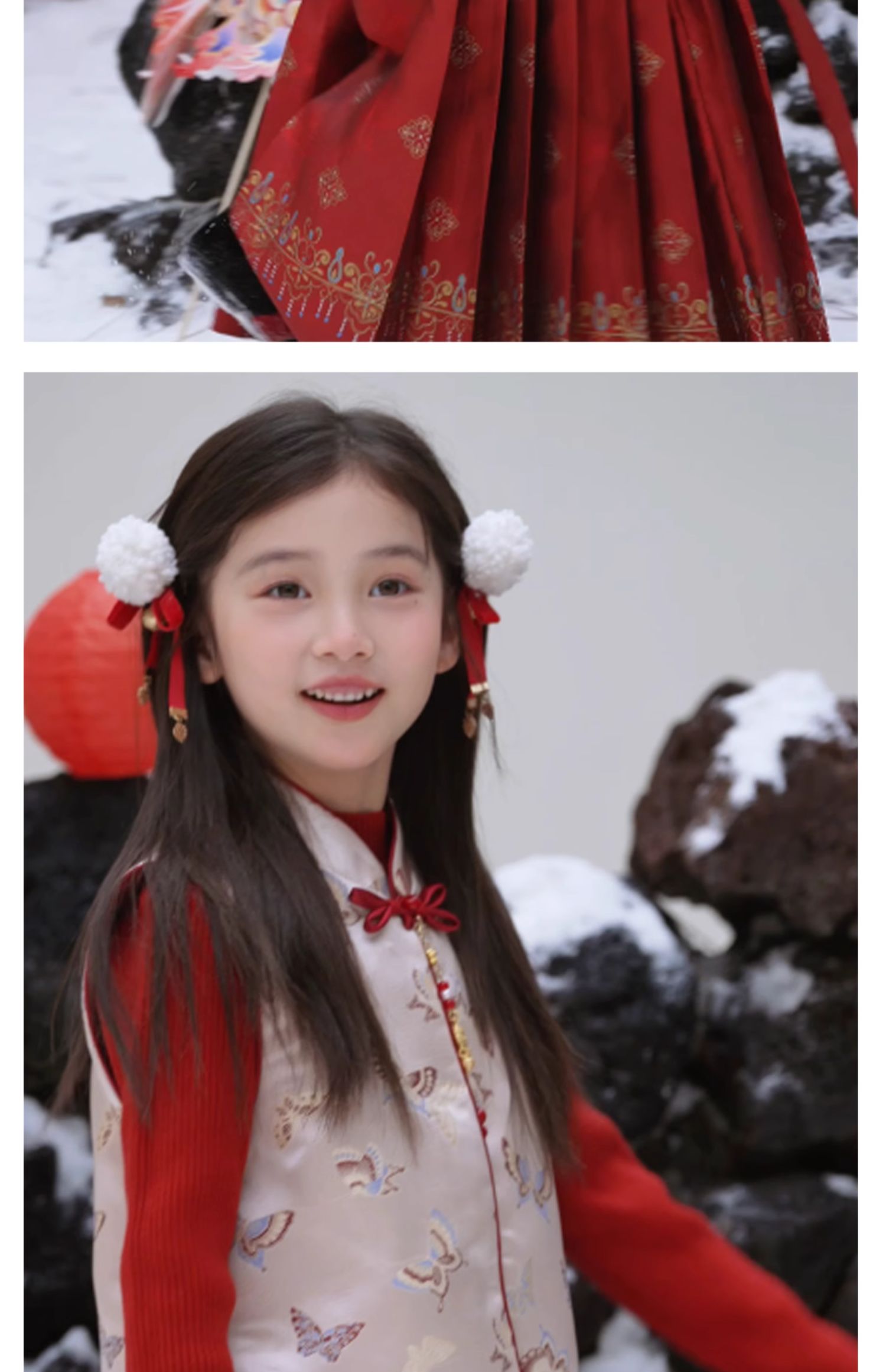 littletime中国风女童套装秋冬红色汉服新中式年服三件套
