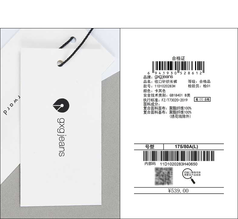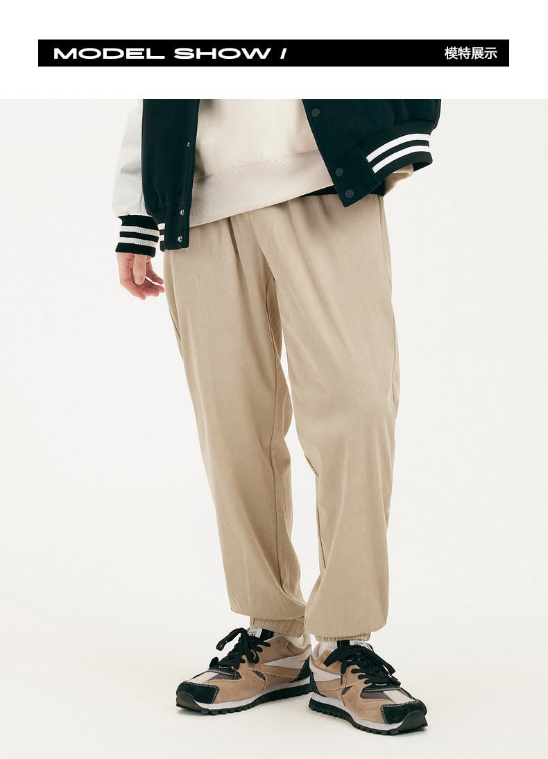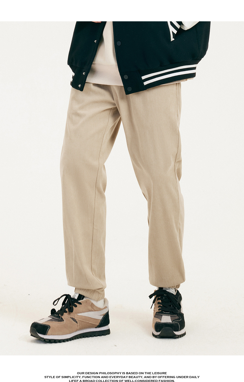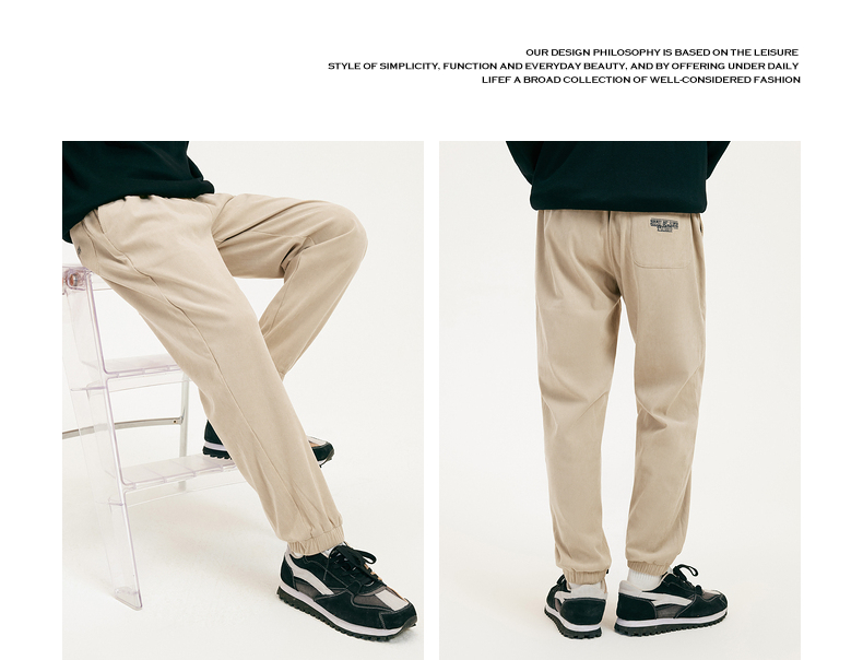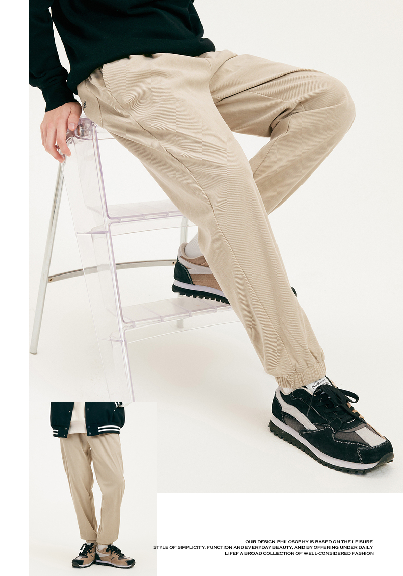 gxgjeans男装冬季卡其色束脚休闲裤男