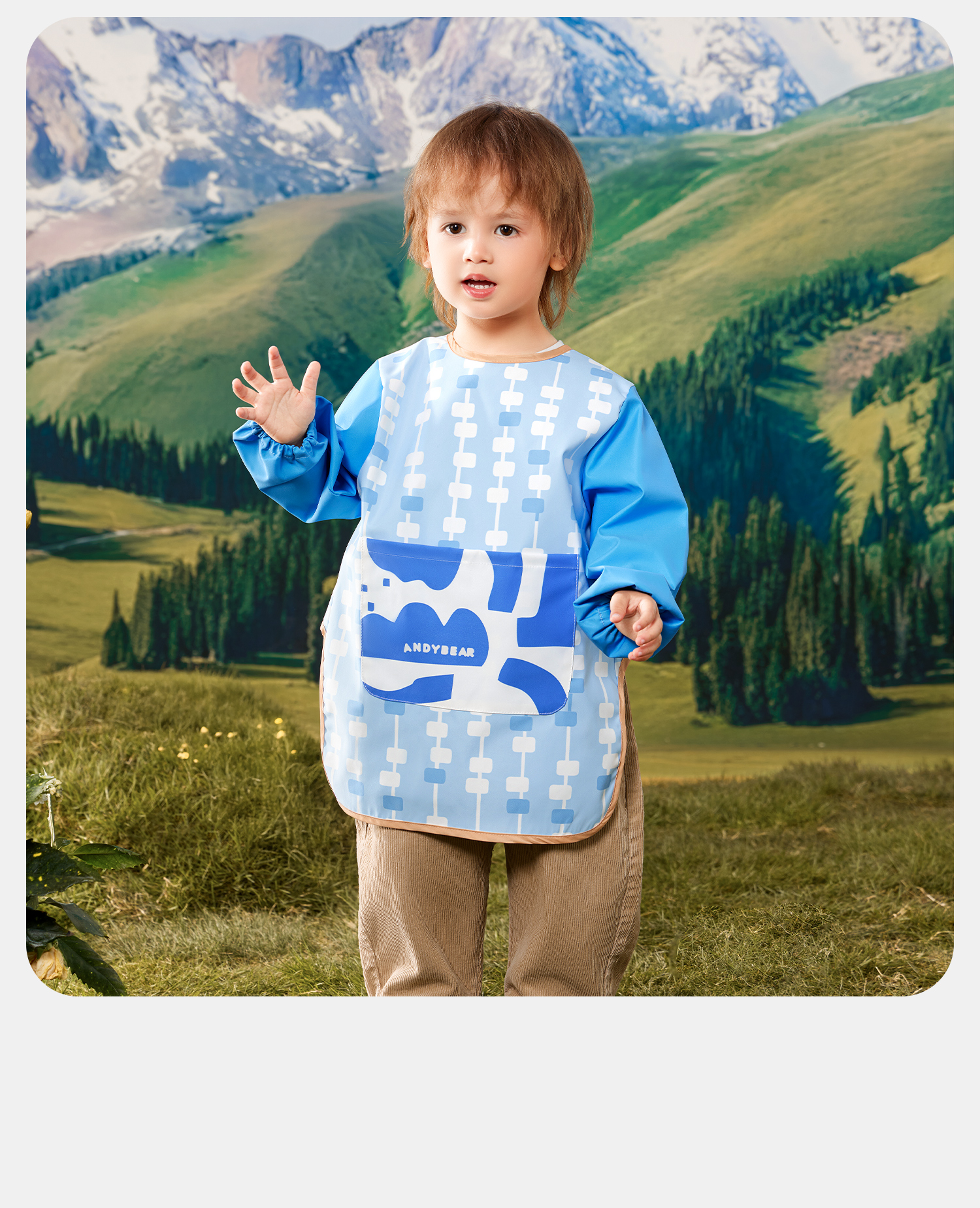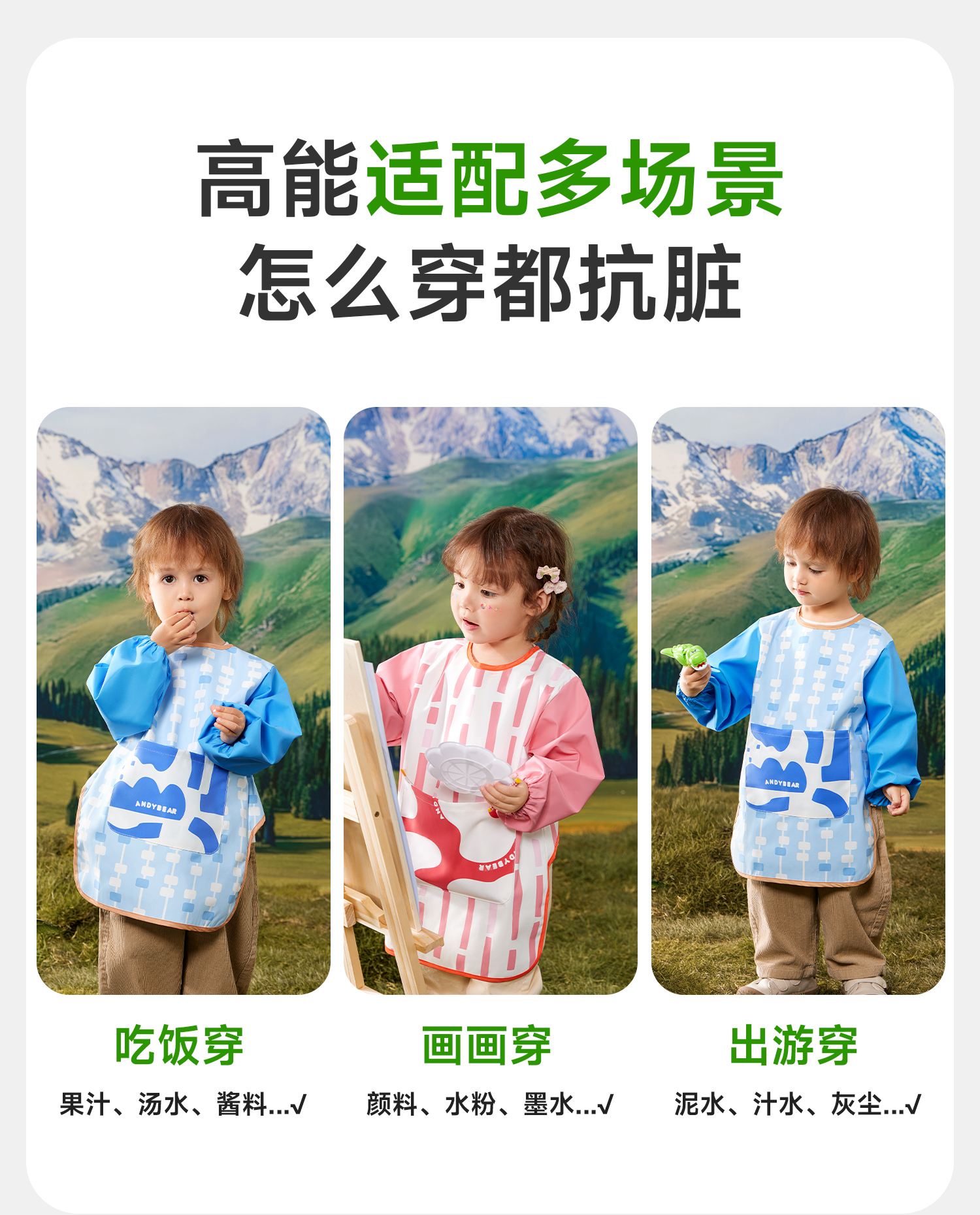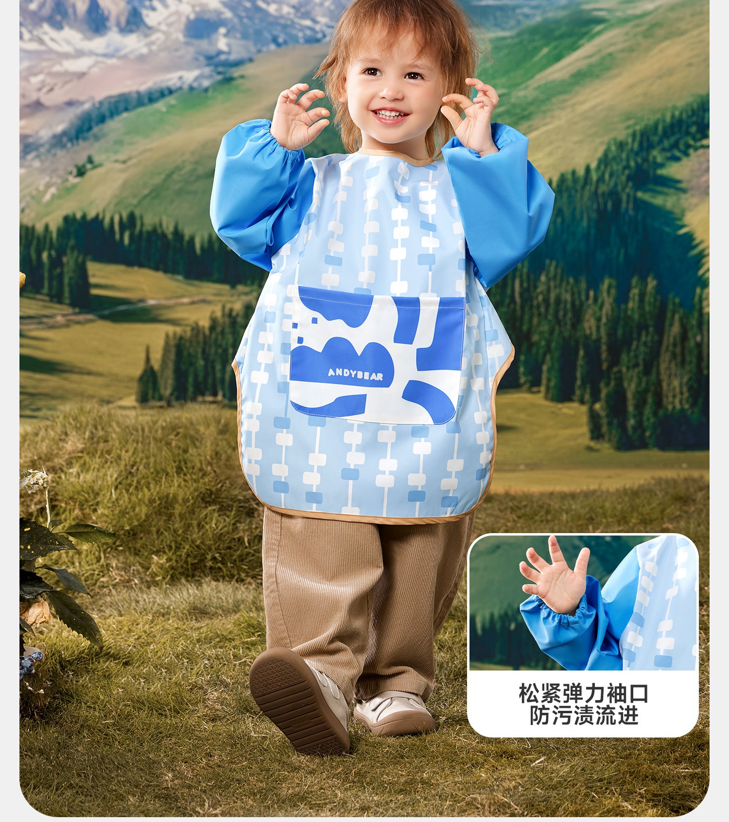 儿童画画罩衣宝宝吃饭围兜婴儿反穿衣服围裙男宝辅食饭兜防水防脏