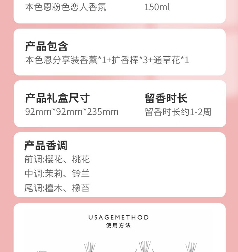 本色恩粉色恋人香氛 150ml 樱花香氛居家室内家用持久高级卧室香薰