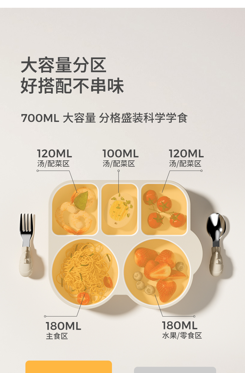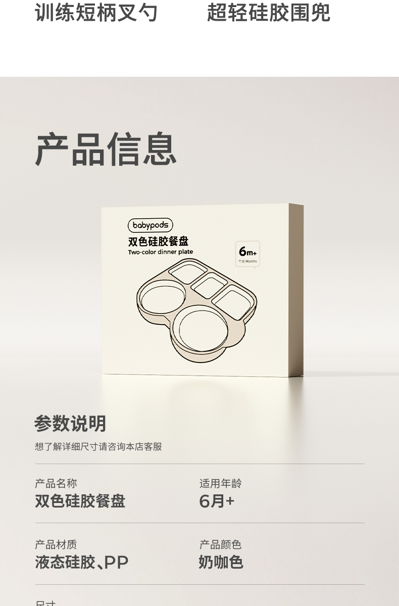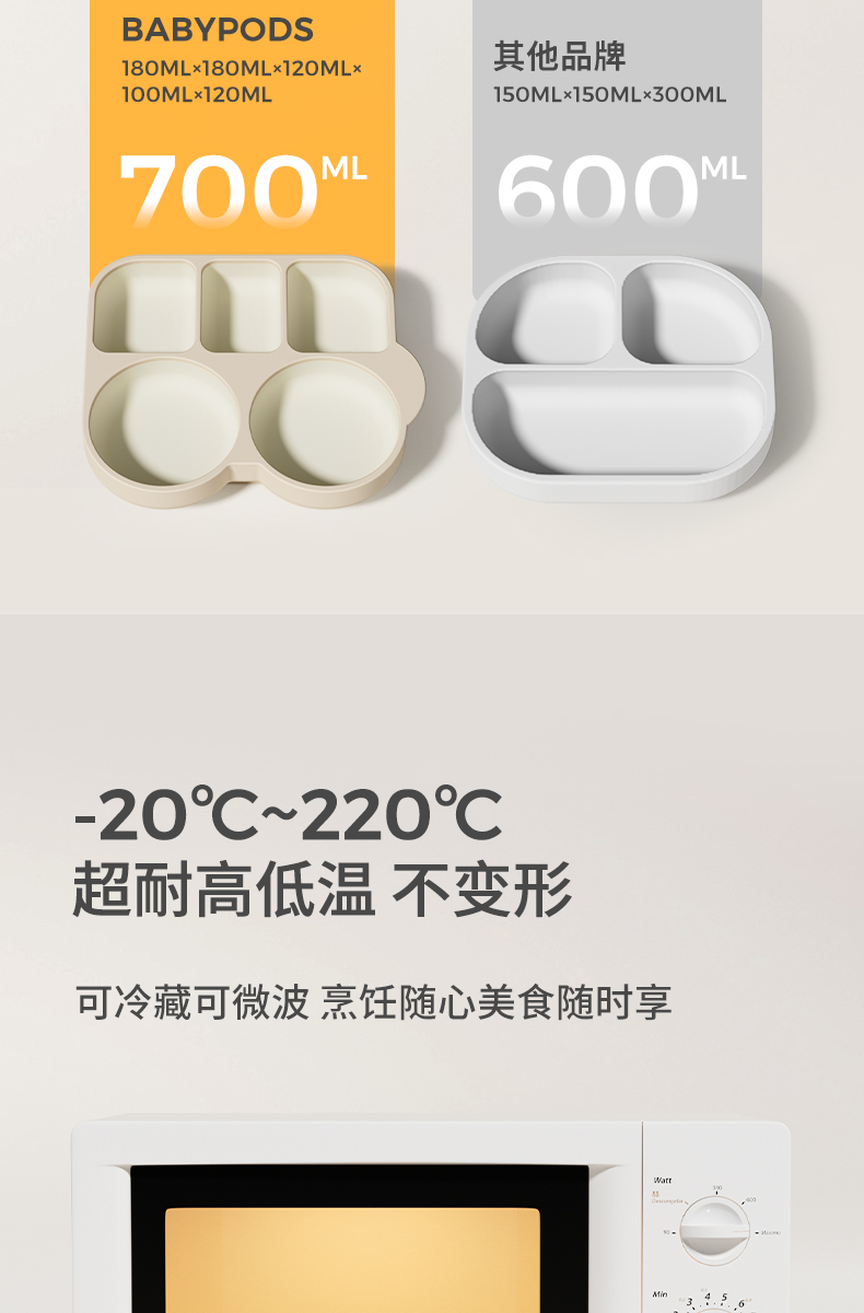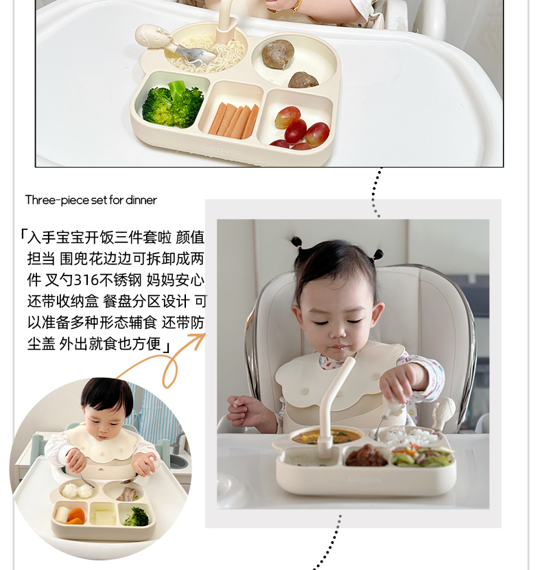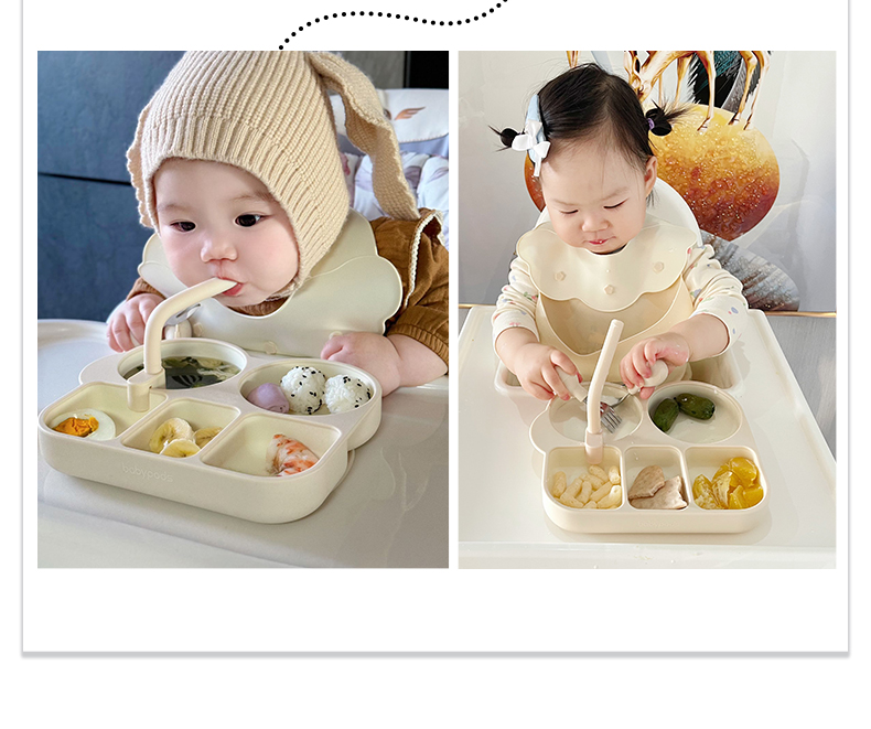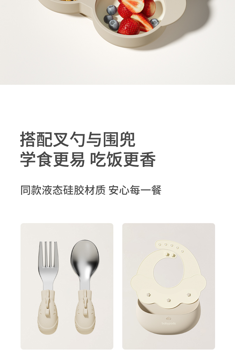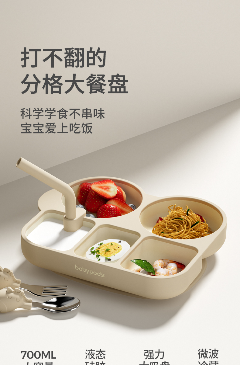 *babypods宝宝餐盘儿童餐具套装婴儿吃饭专用分格辅食碗吸盘硅胶碗