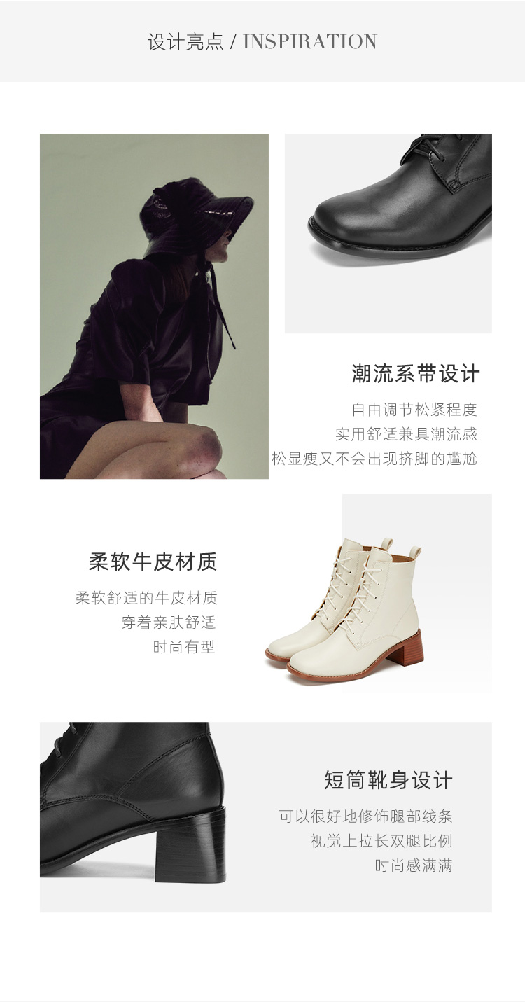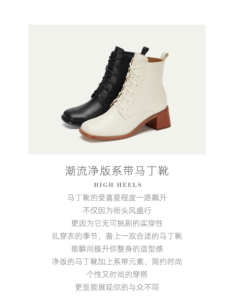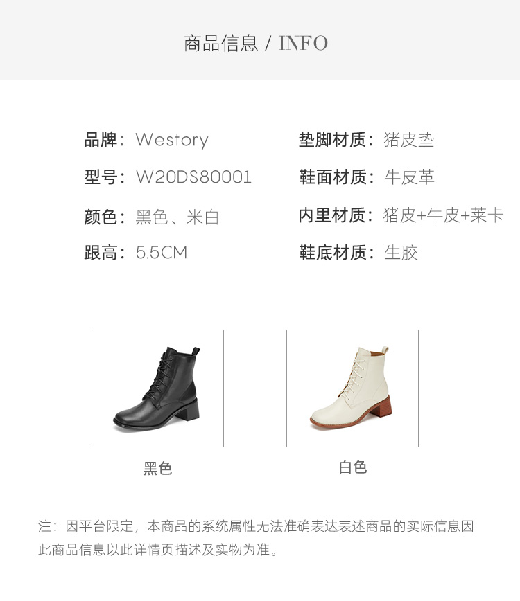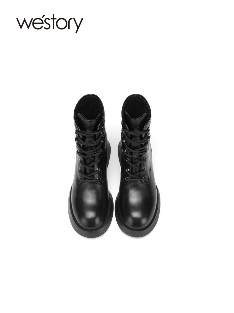 westory秋季新款女英伦风真皮高帮马丁靴时尚短靴女W20DS80001
