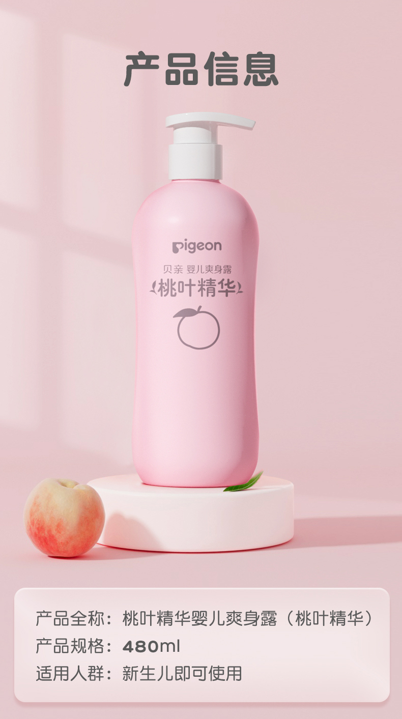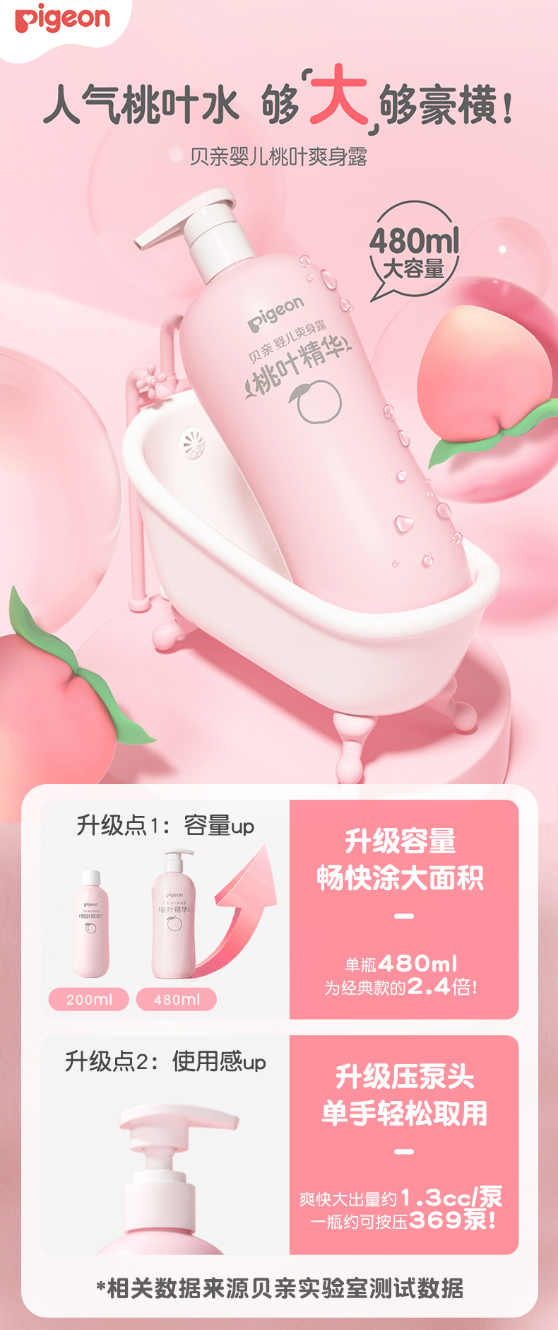 贝亲 婴儿桃叶水 爽身露 480ml IA286