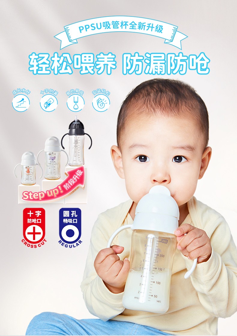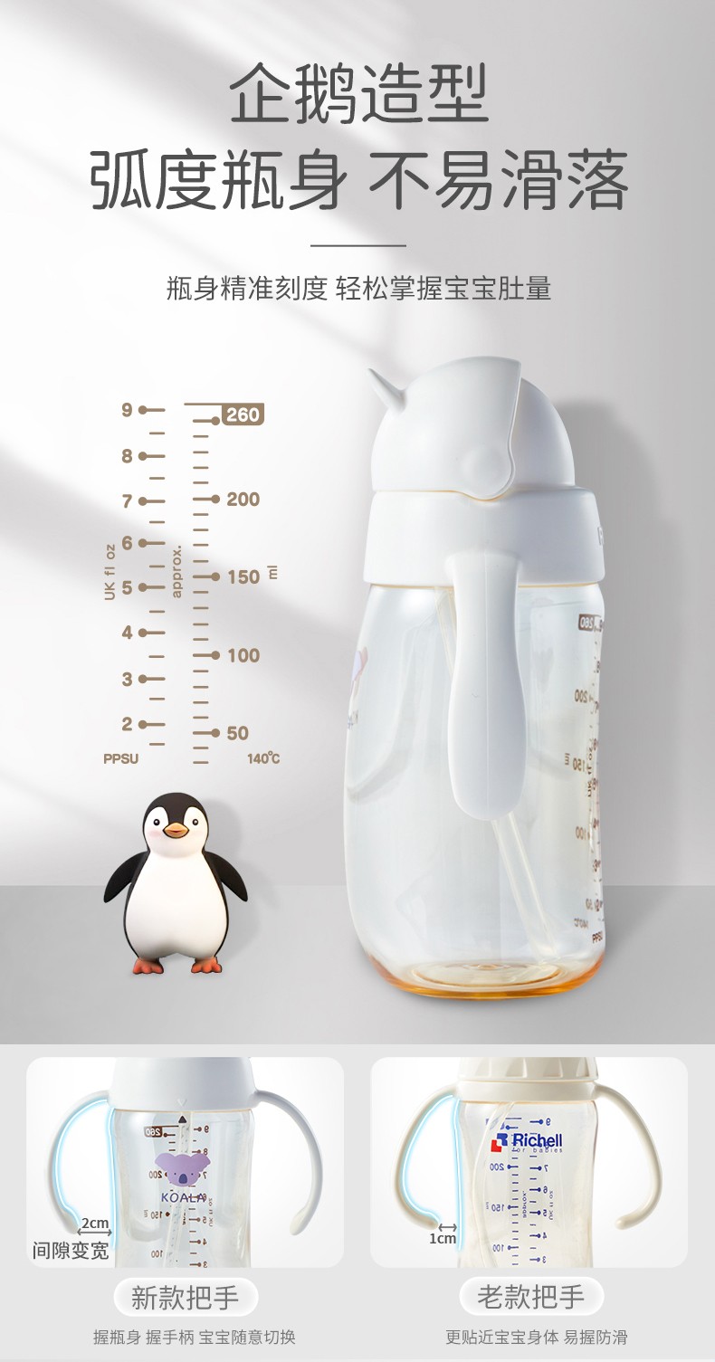利其尔 ppsu防呛吸管杯 企鹅杯宝宝水杯