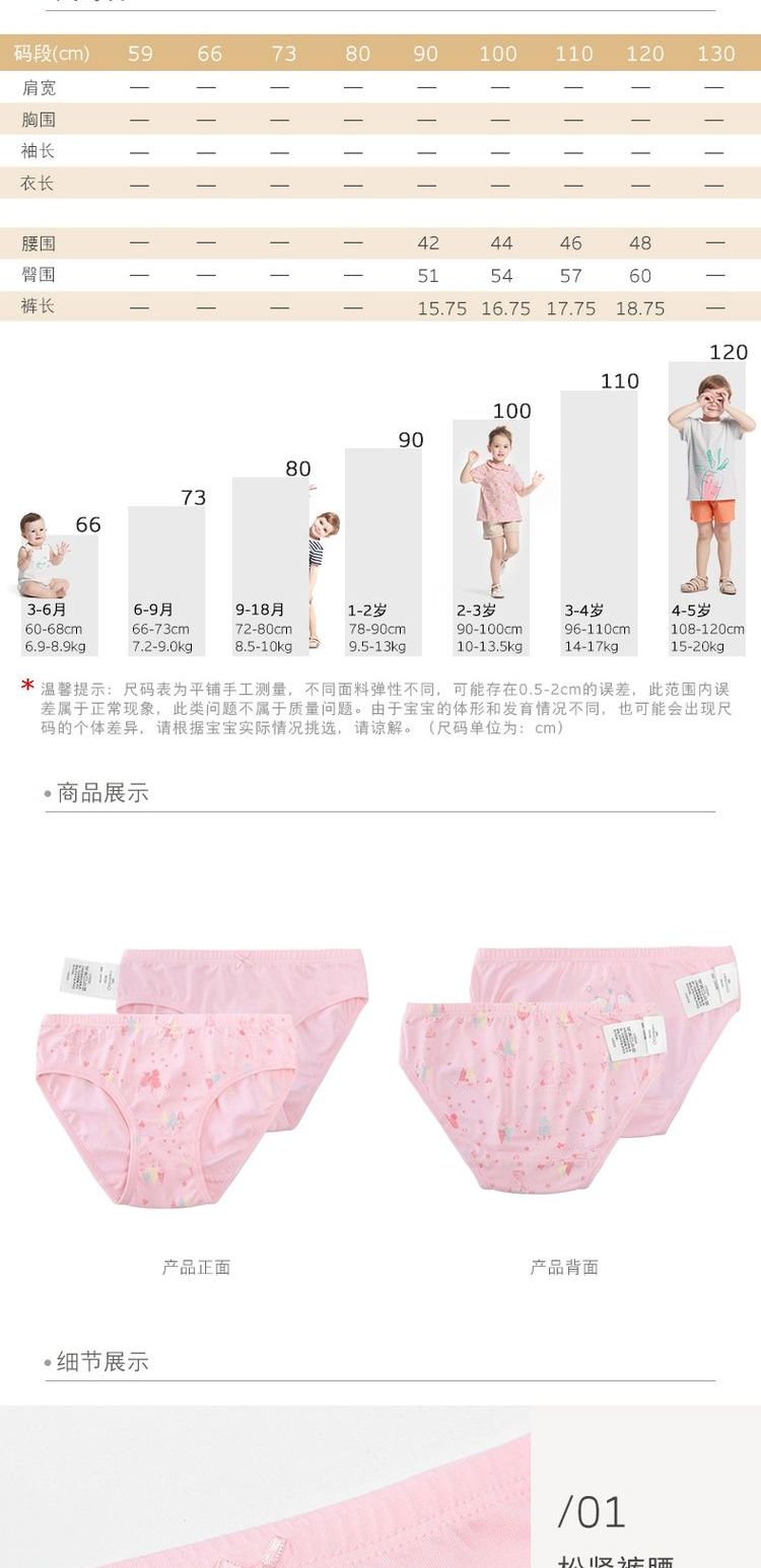 英氏儿童两件装宝宝短裤男女童莫代尔平角/三角内裤181B0366 181B0367 181B0369