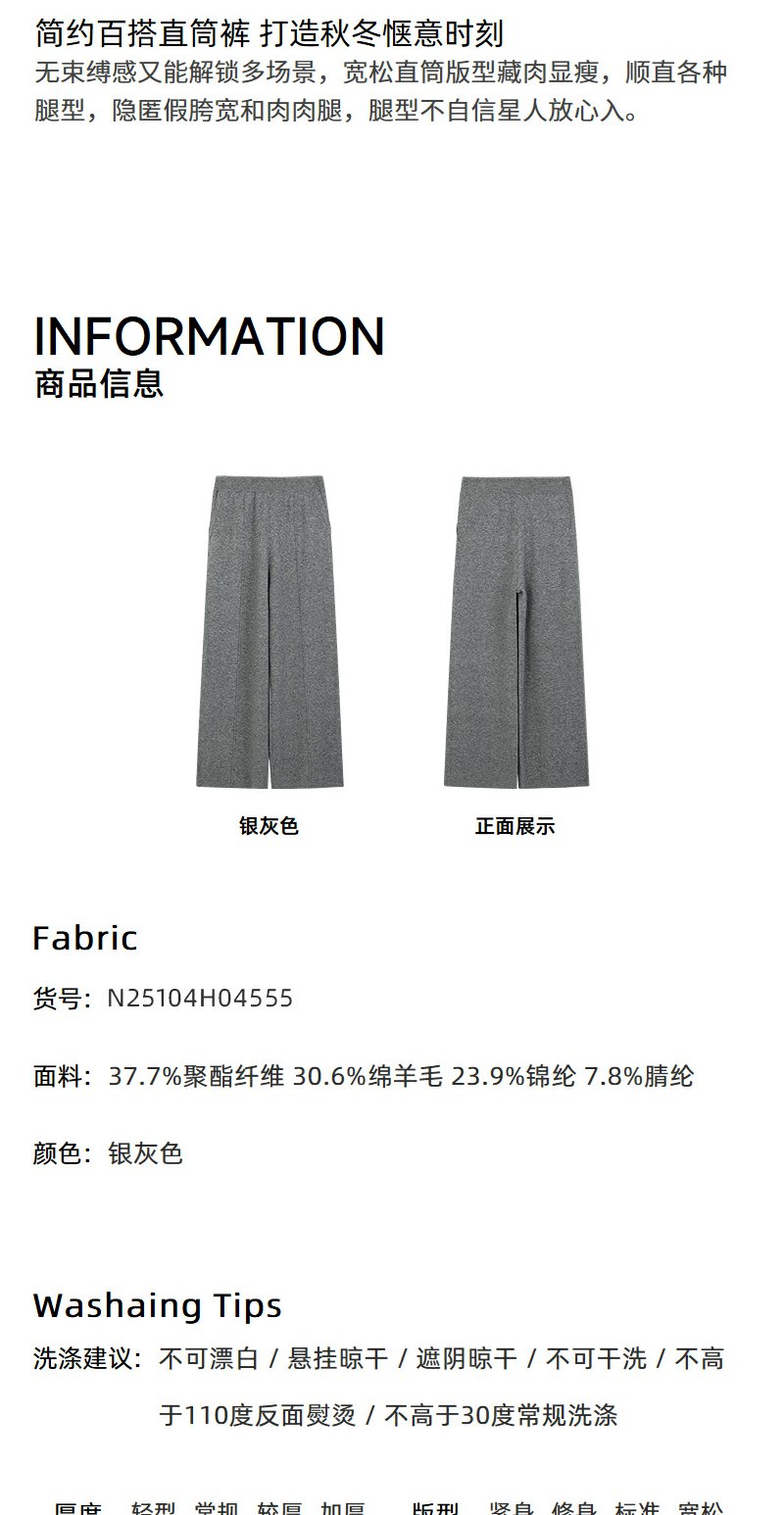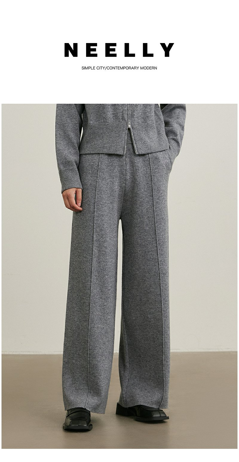 NEELLY纳俪商场同款冬新款宽松直筒休闲裤女小个子通勤针织长裤N25104H04555