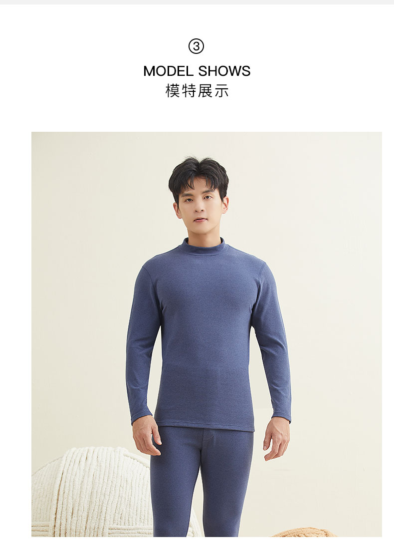 【第二件 0 元| 满2件 5 折】【秀黛】男温芯绒中领套装男保暖秋衣秋裤【280g左右】L3660044T【门店同款】