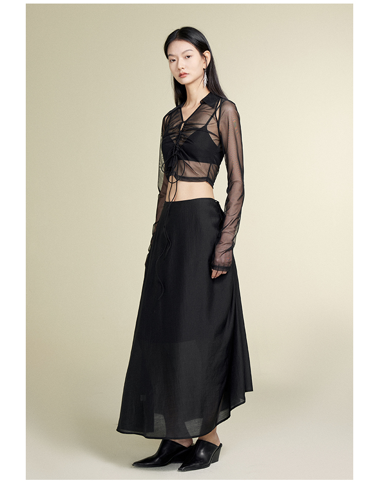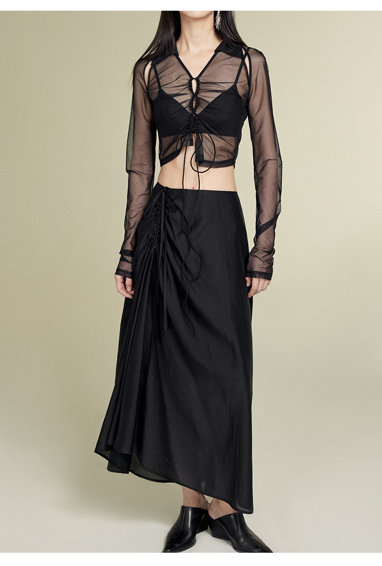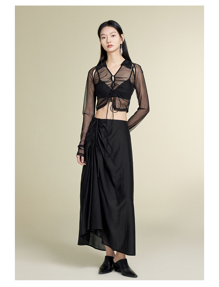 MURMURMI/MQ467/A型大摆侧抽皱半身裙