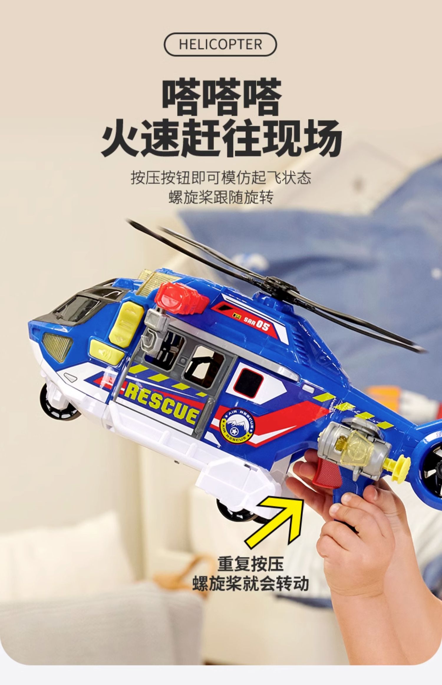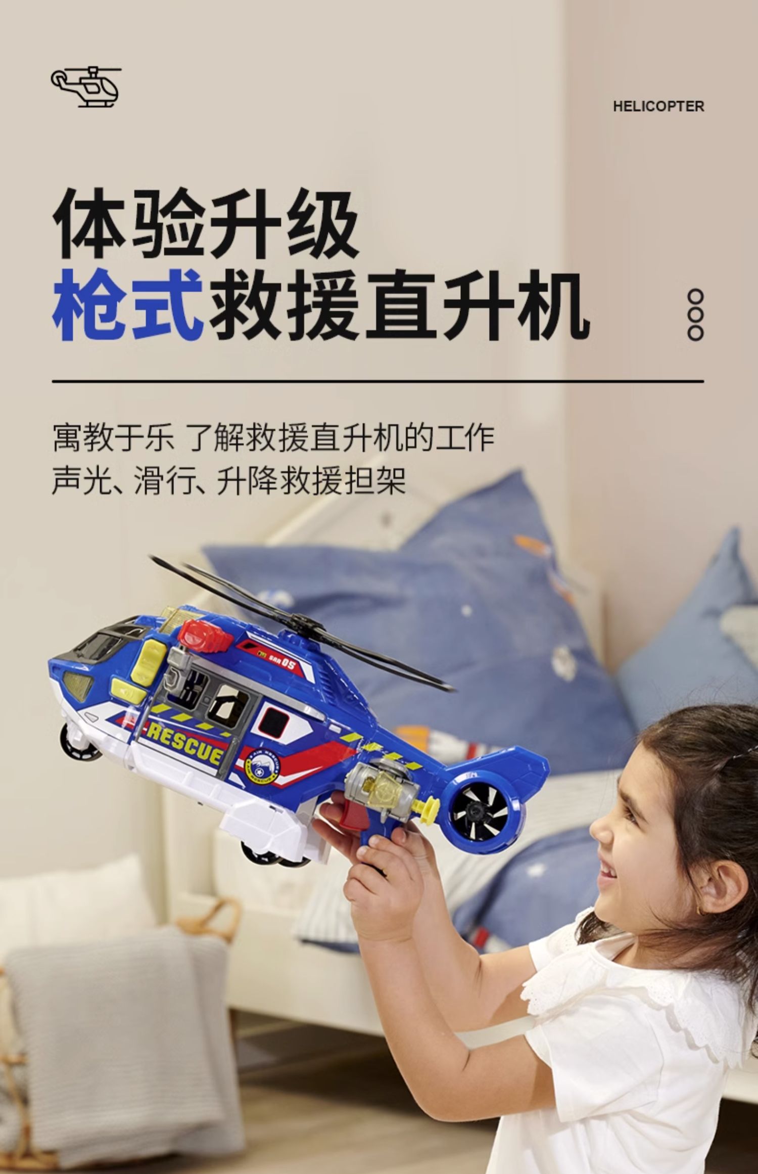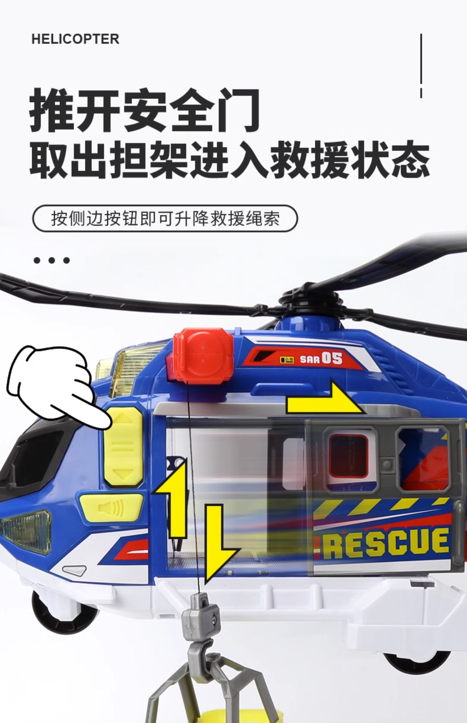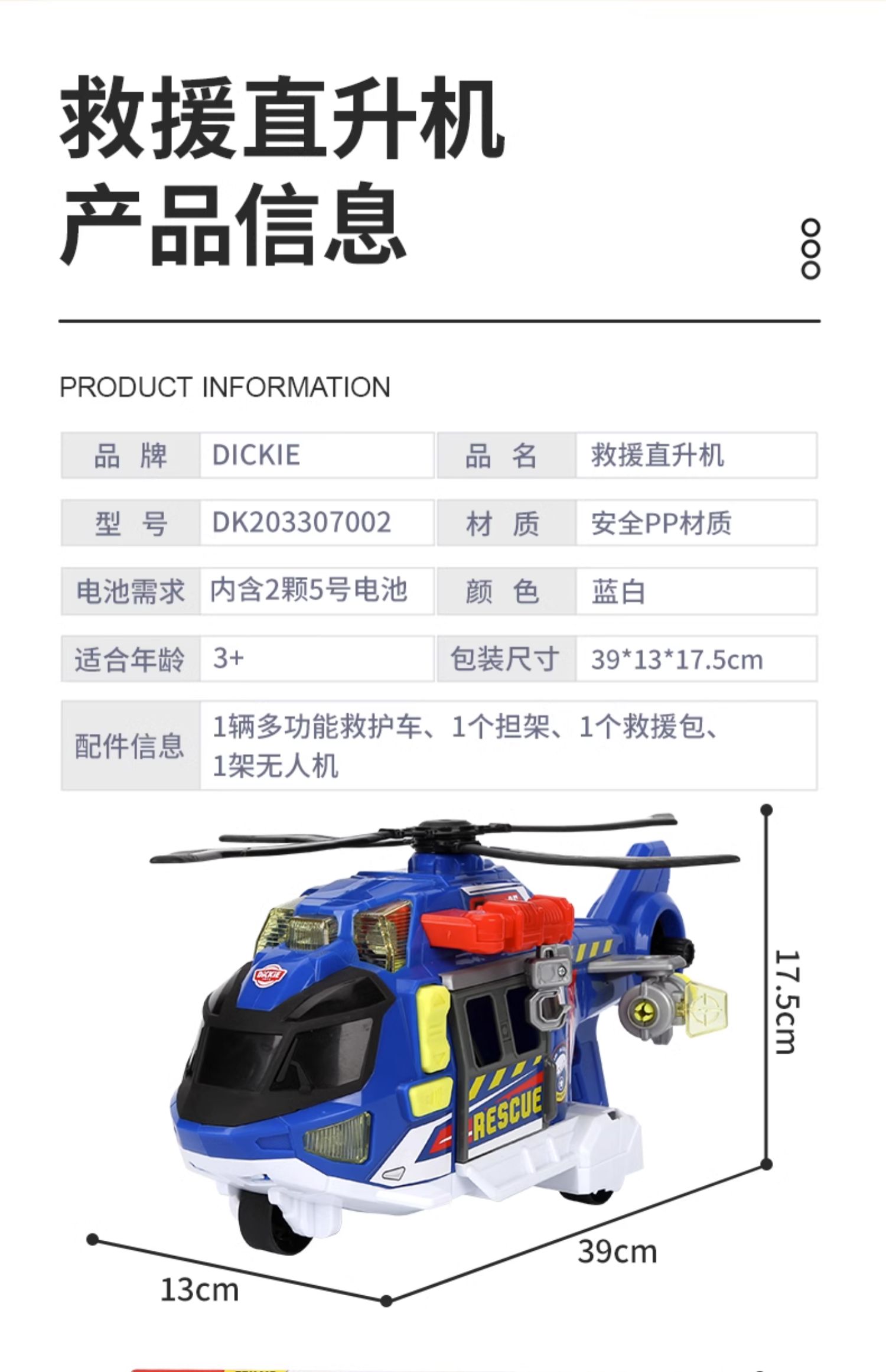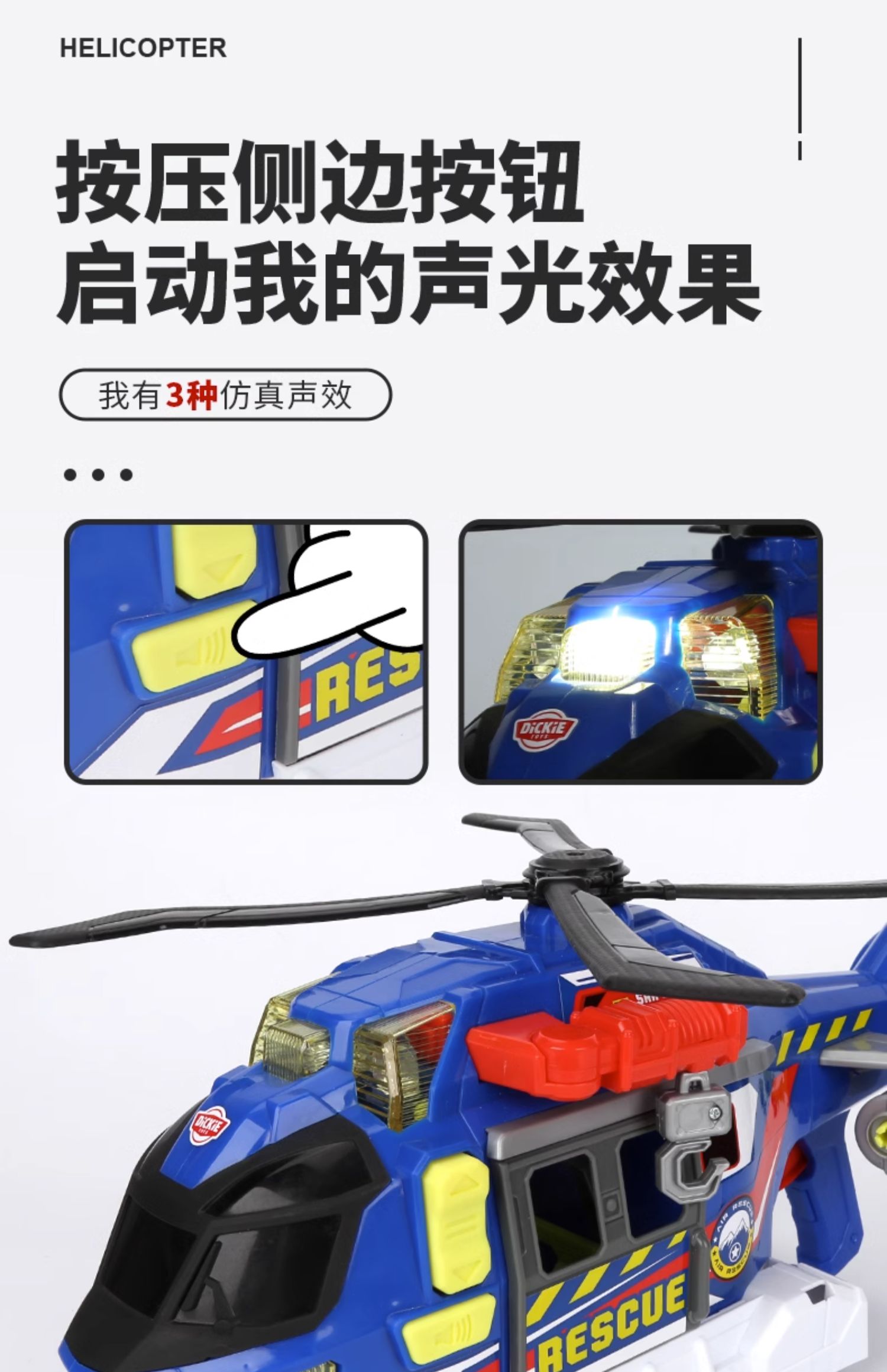 德国Dickietoys儿童大号仿真救援直升机惯性声光模型玩具男孩新款 3岁+