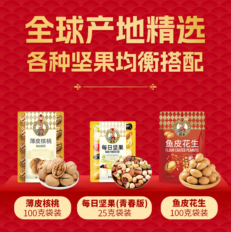 如水红运桶坚果礼盒休闲零食565g-XJ