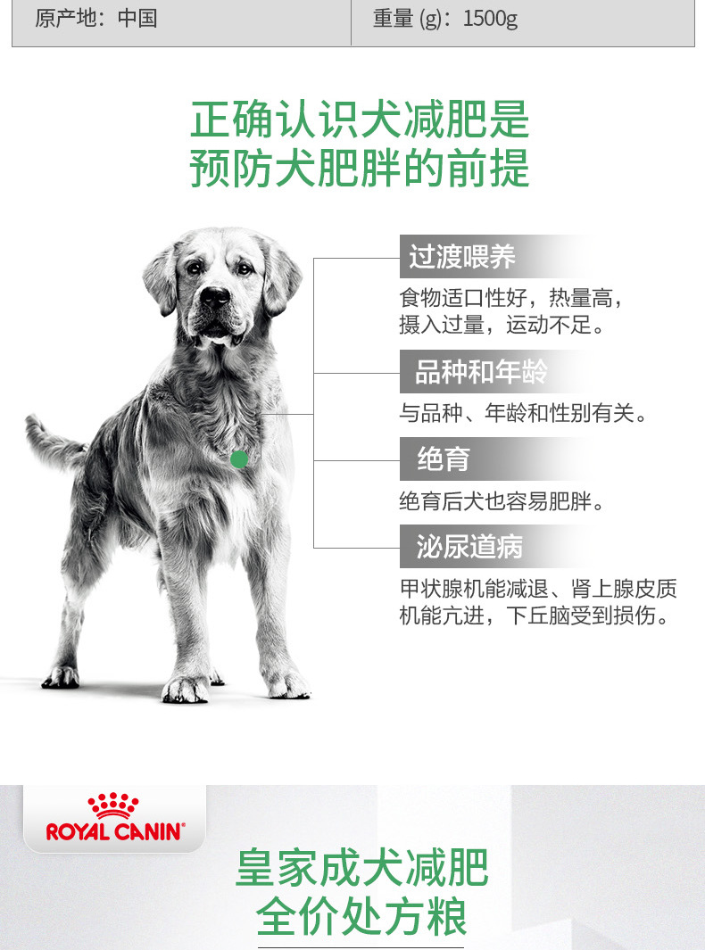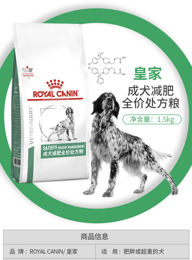 皇家狗粮成犬减肥处方粮1.5KG SAT30减脂高蛋白 主粮瘦身狗粮