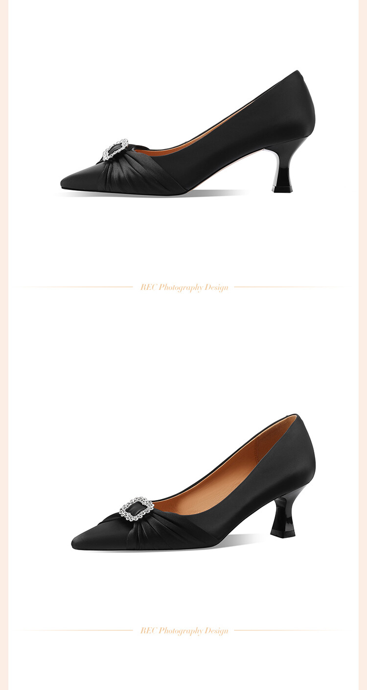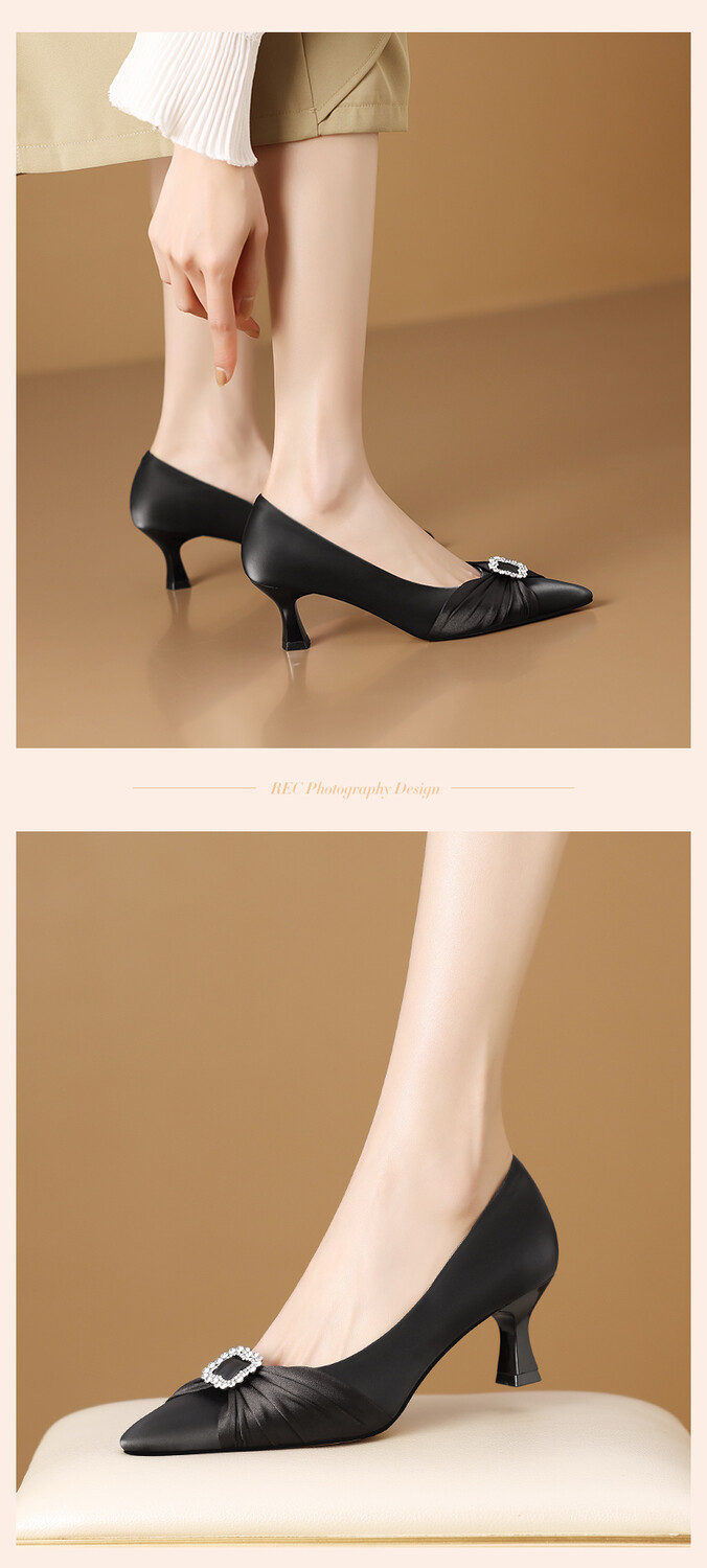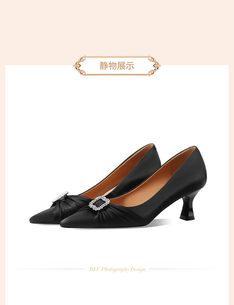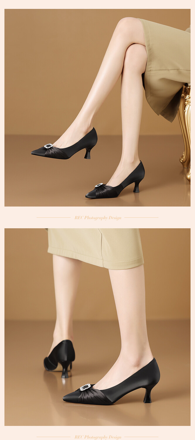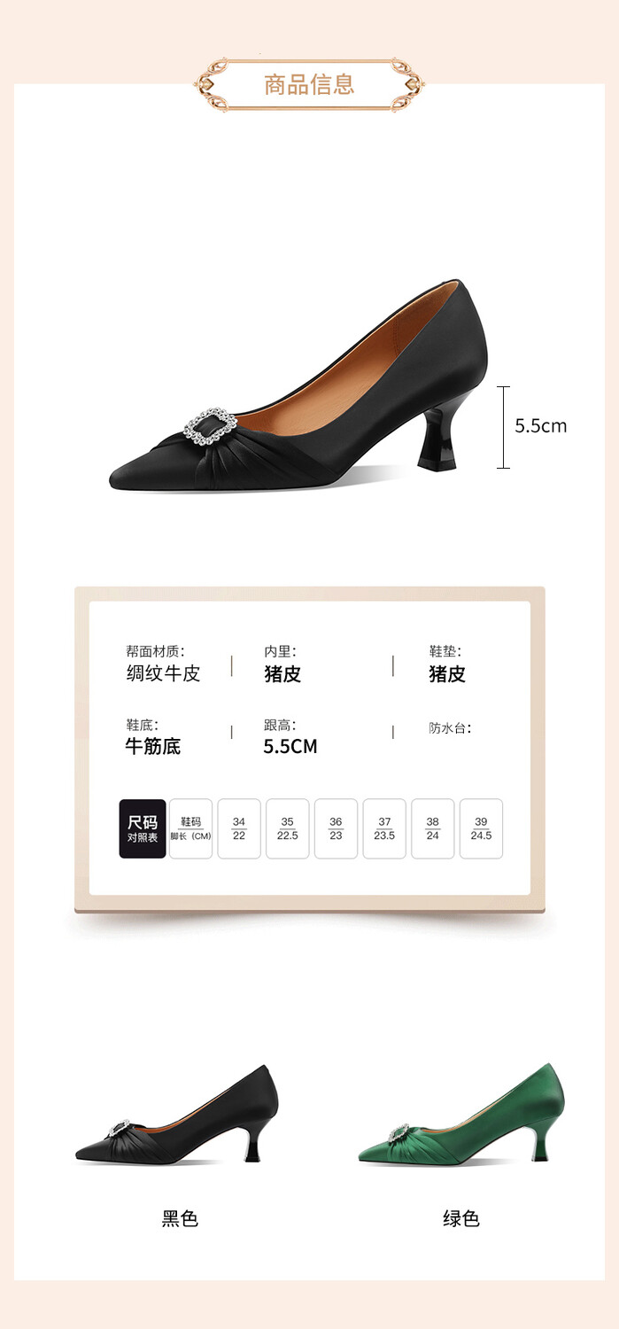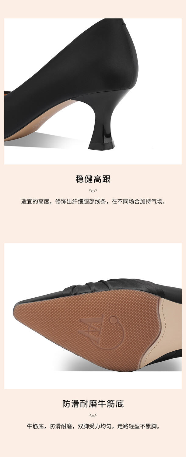 【预售5天】丝绸真皮优雅尖头浅口单鞋女细跟新款时尚时装高跟鞋女鞋HY&H3355