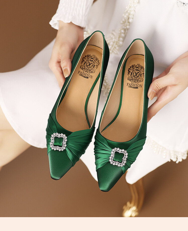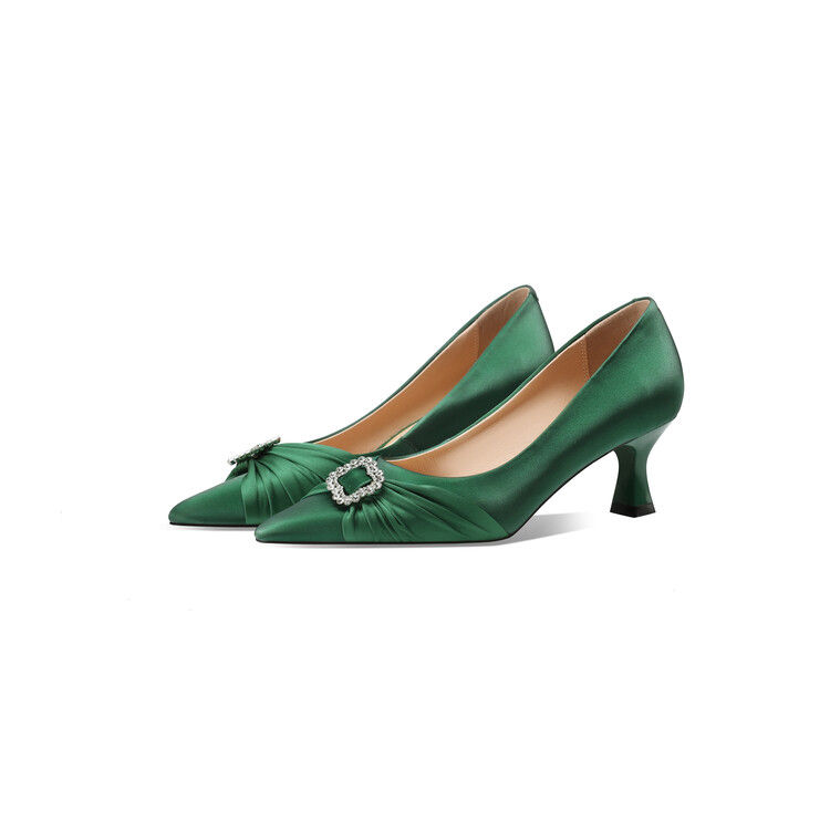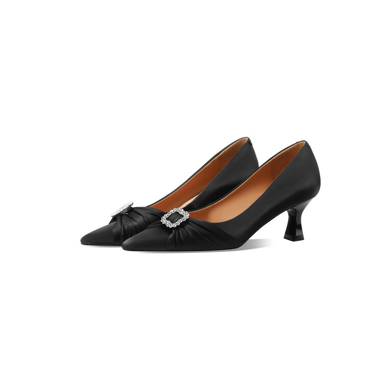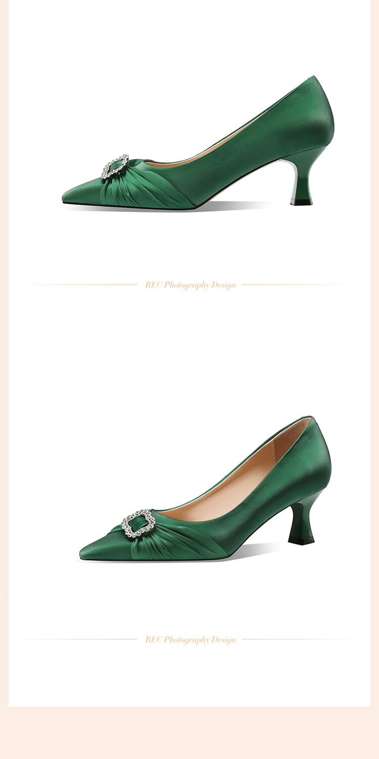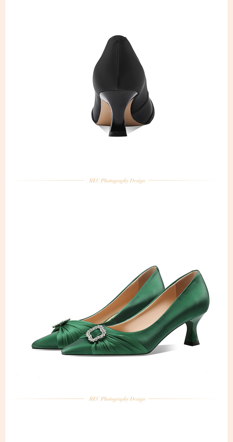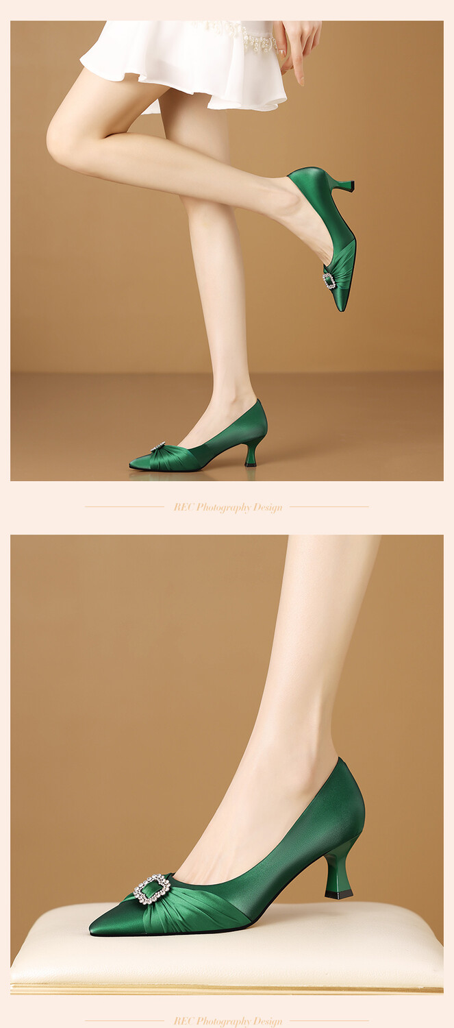 【预售5天】丝绸真皮优雅尖头浅口单鞋女细跟新款时尚时装高跟鞋女鞋HY&H3355