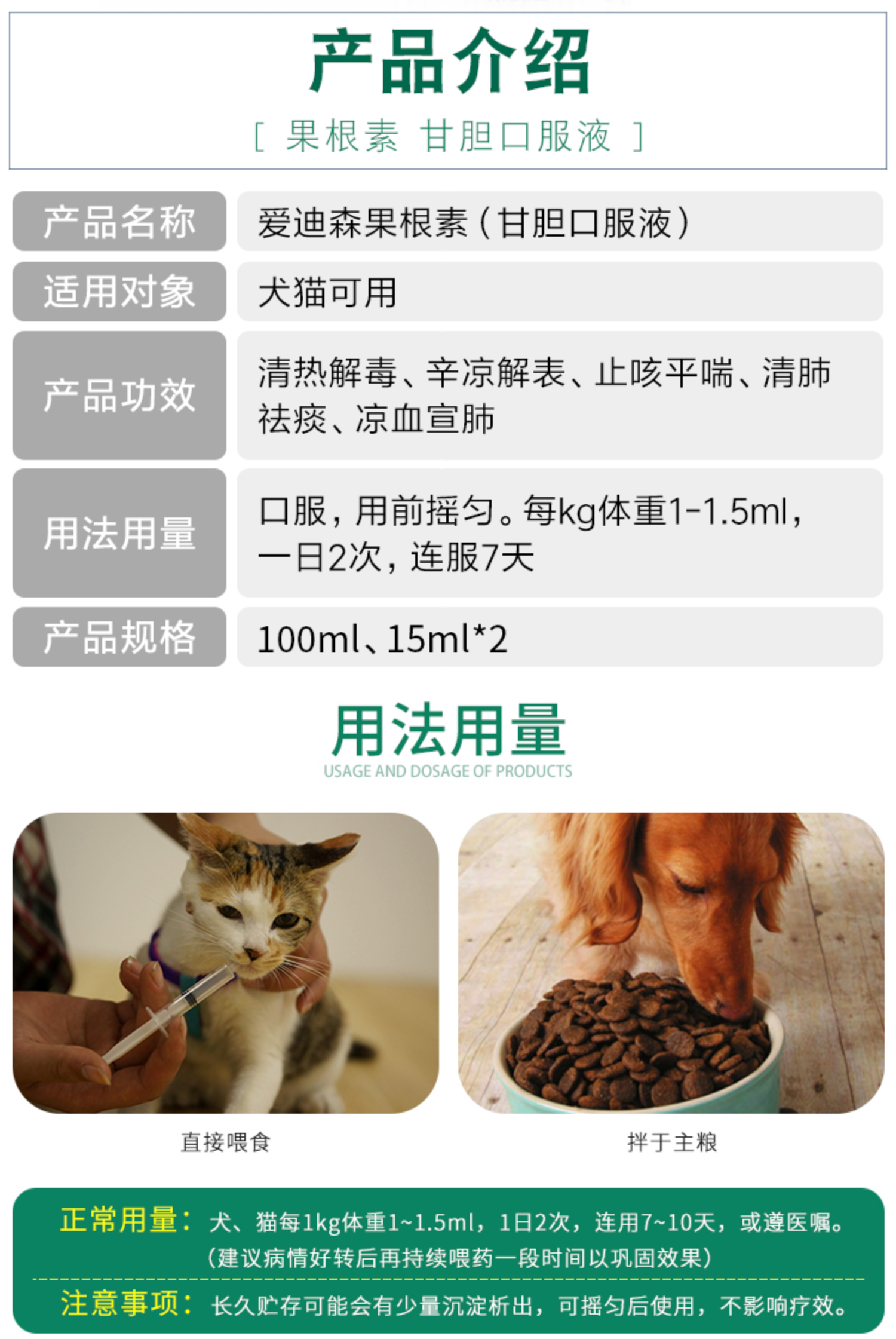 爱迪森果根素狗狗猫咪果根素甘胆口服液猫鼻支宠物药果根素