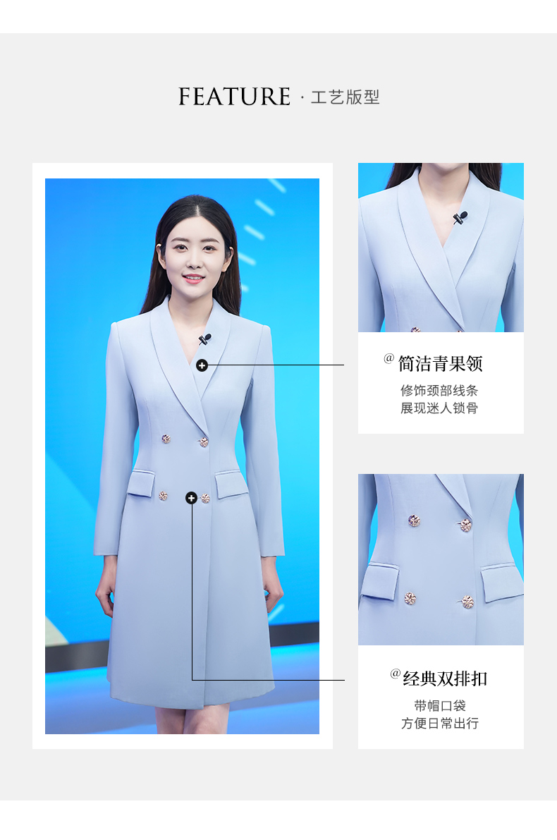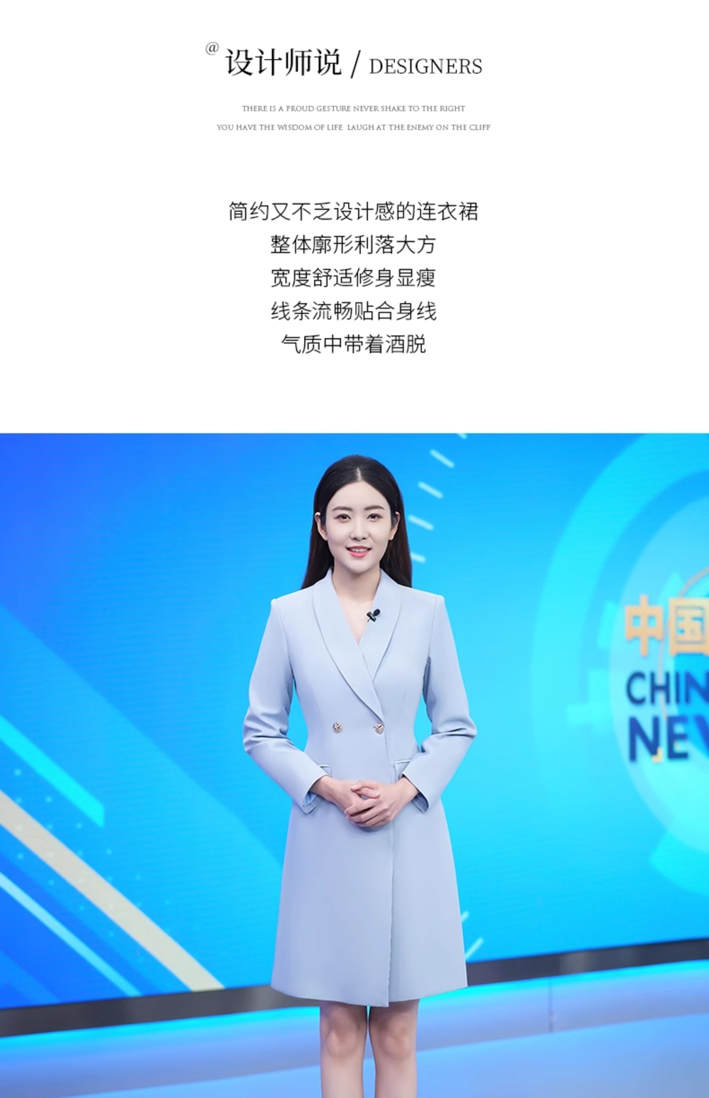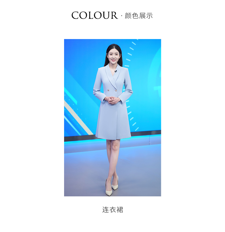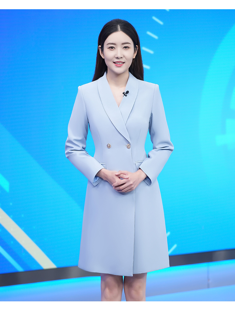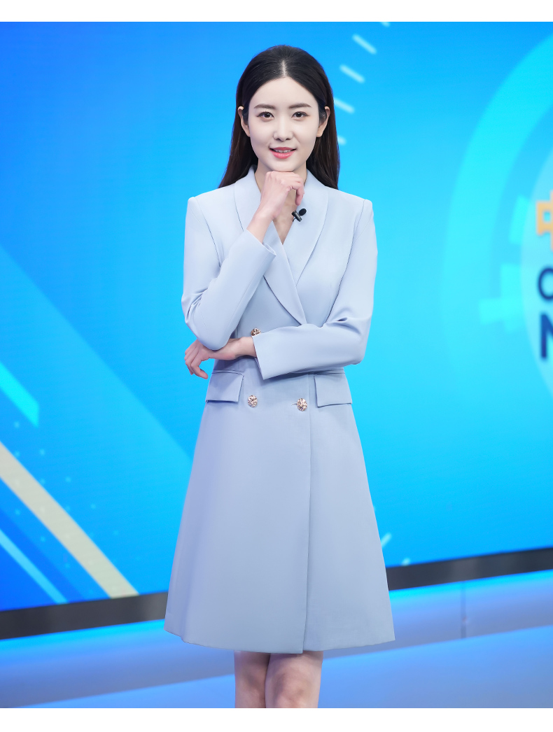 IWY/蓝色西装连衣裙女端庄大气主持人正装上镜艺考演讲比赛服装Q1019-L