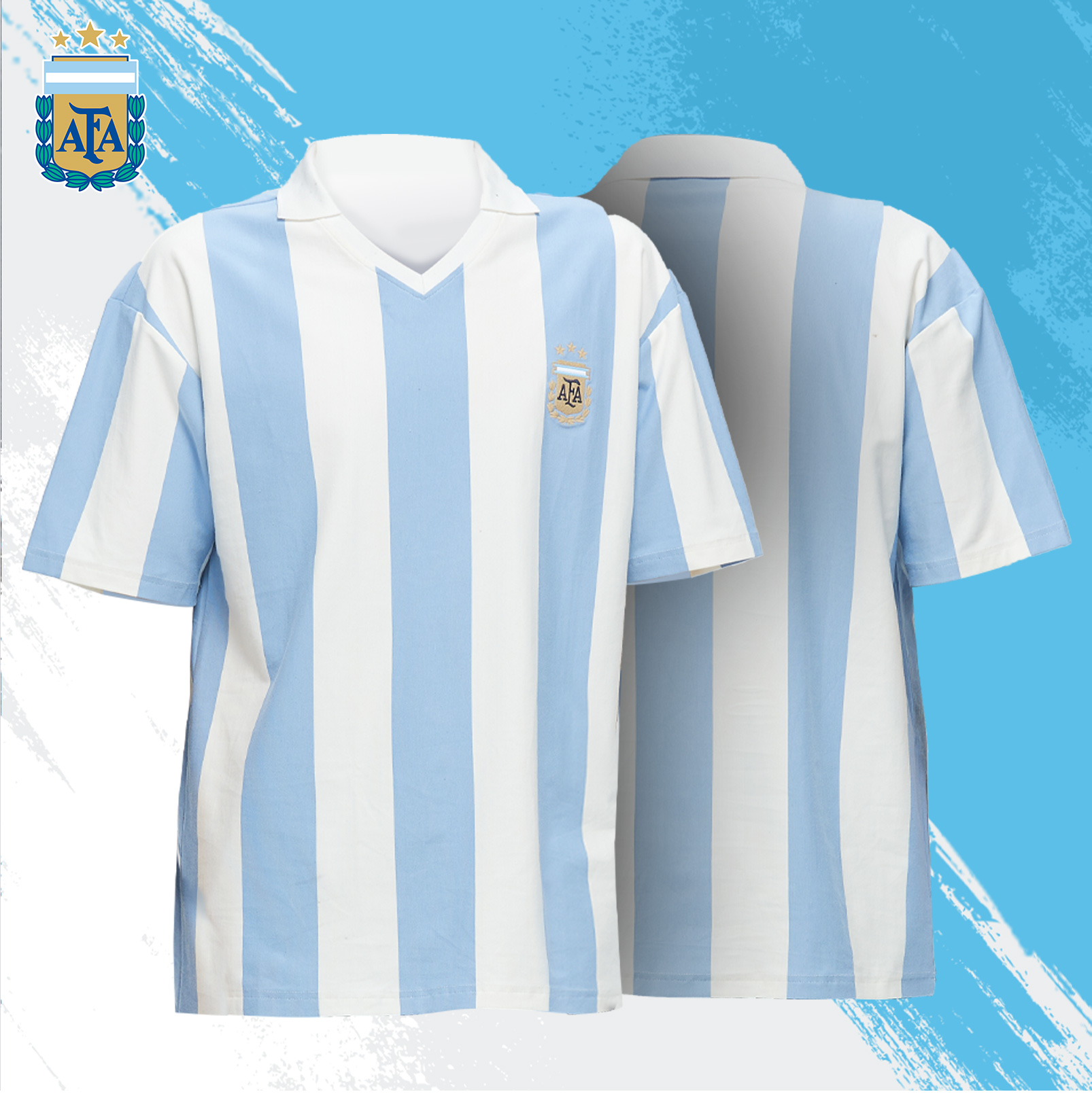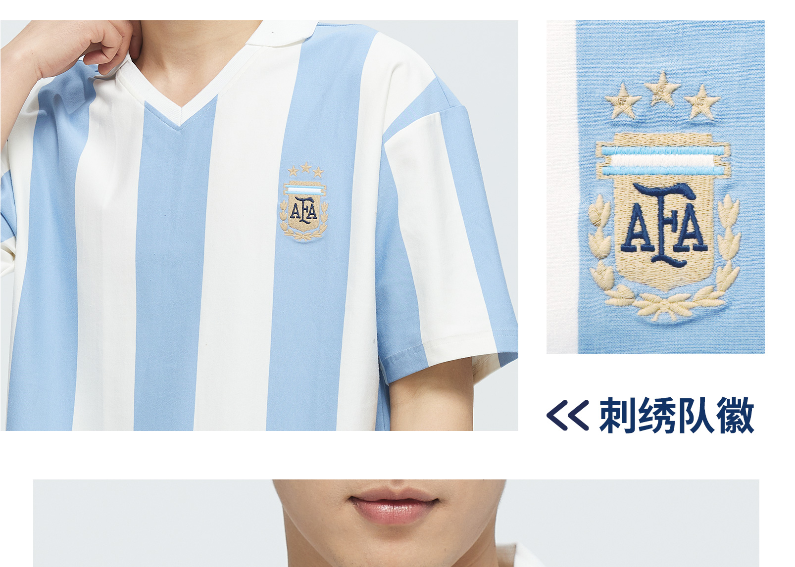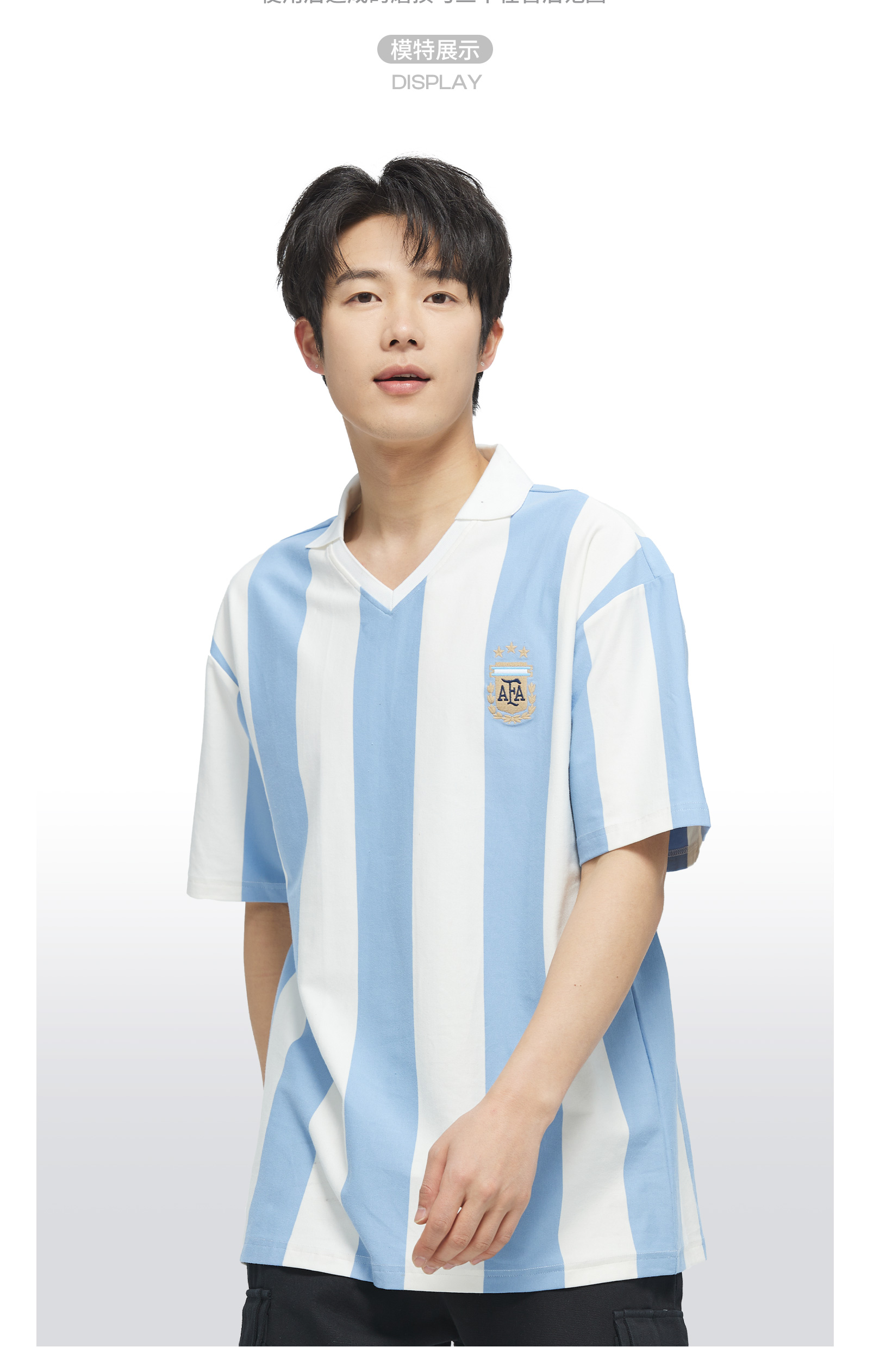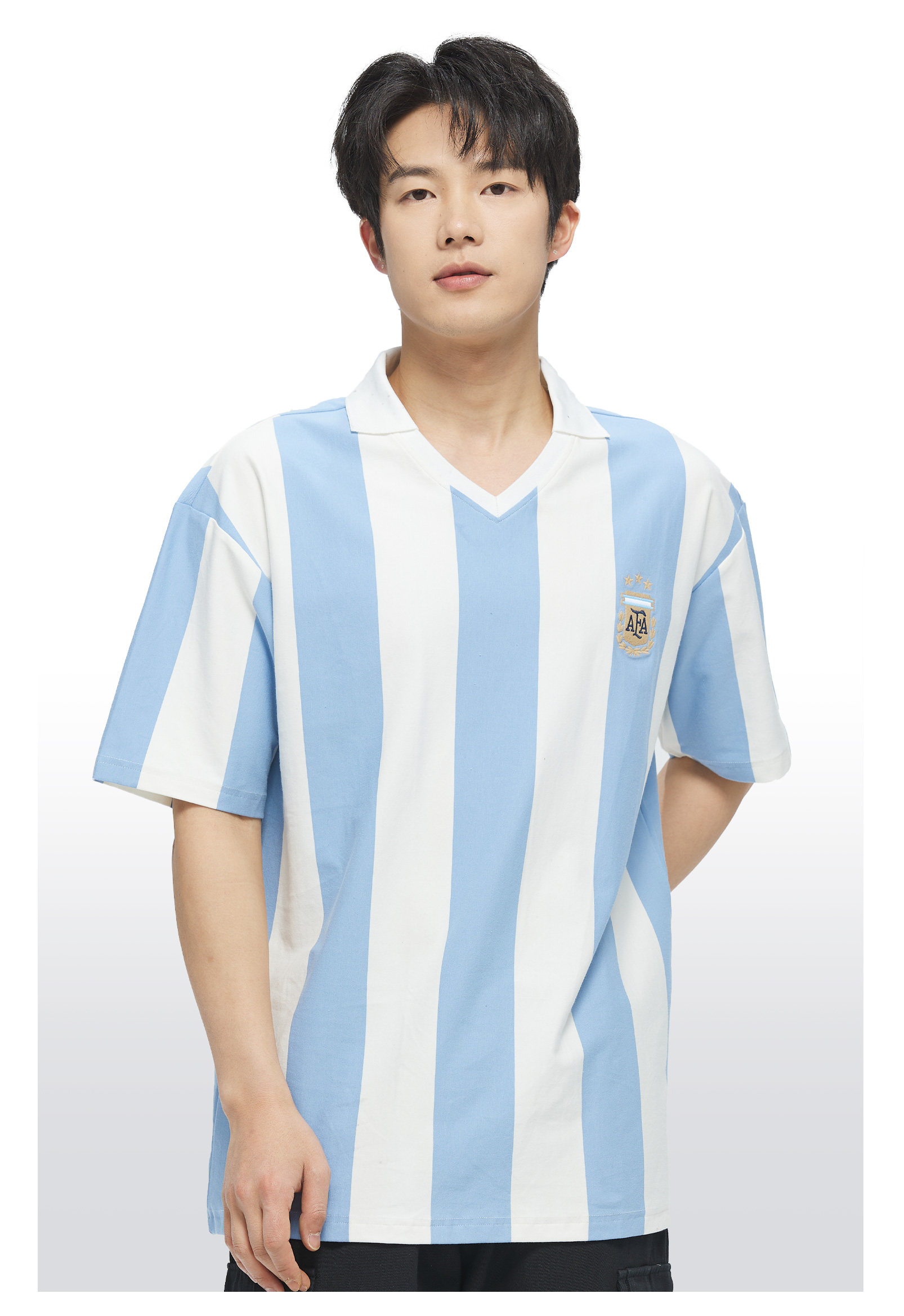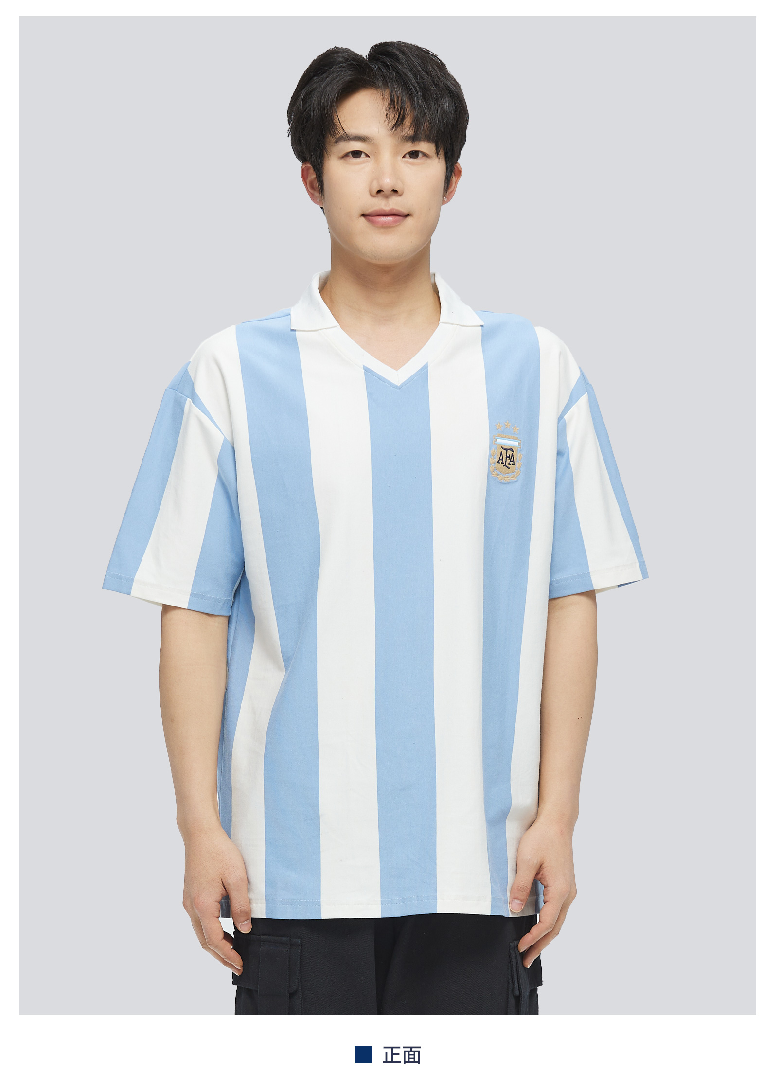 【官方正版】阿根廷国家队 | 蓝白条纹复古球衣款v领POLO短袖重磅棉质T恤