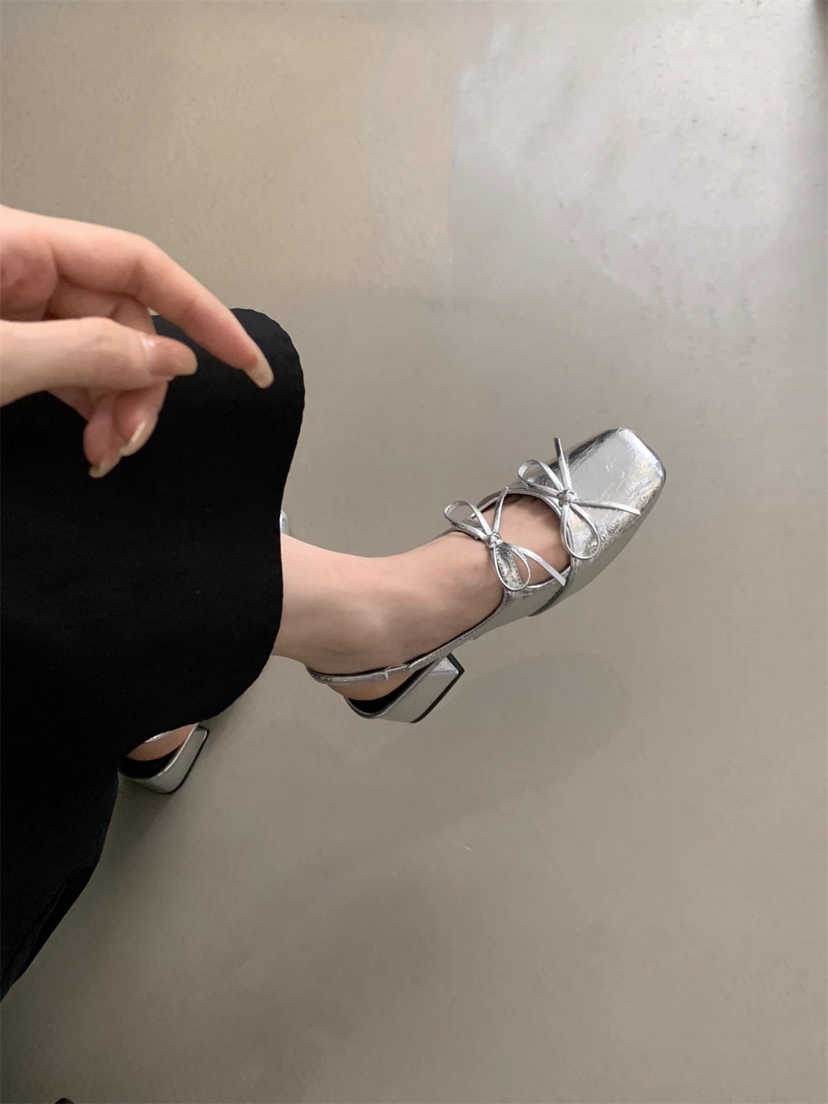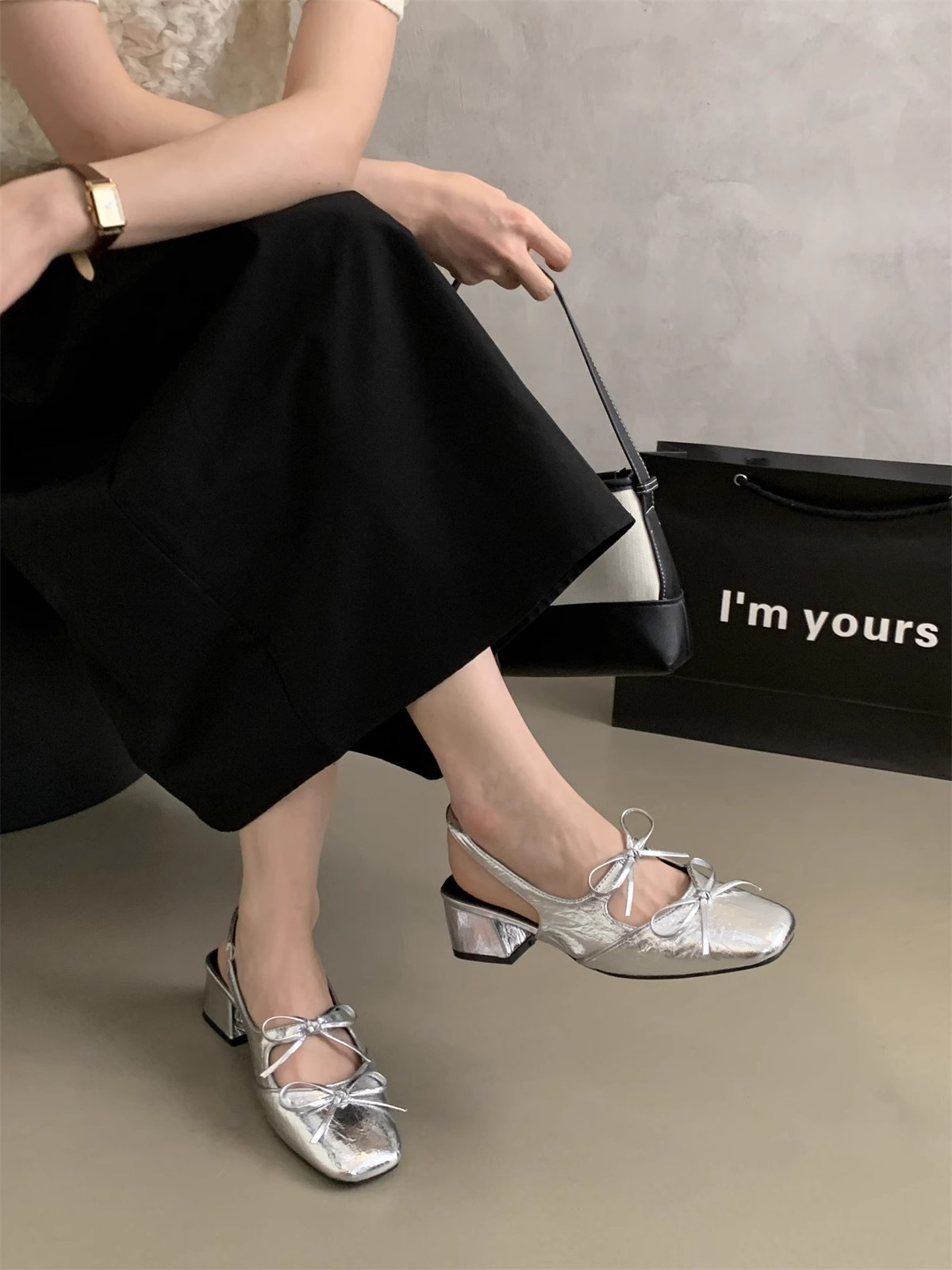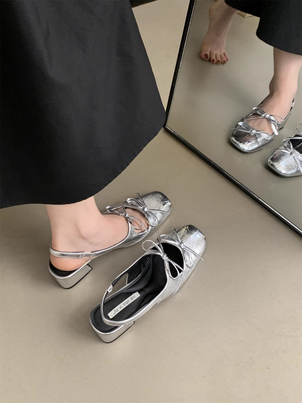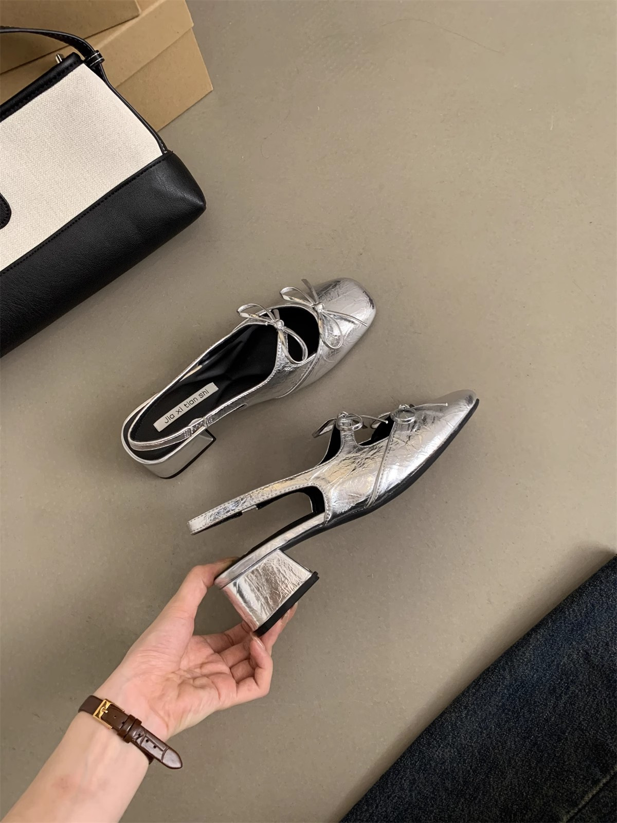 【小香风包头凉鞋】夏季外穿 法式女士气质粗跟仙女风银色后空单鞋女
