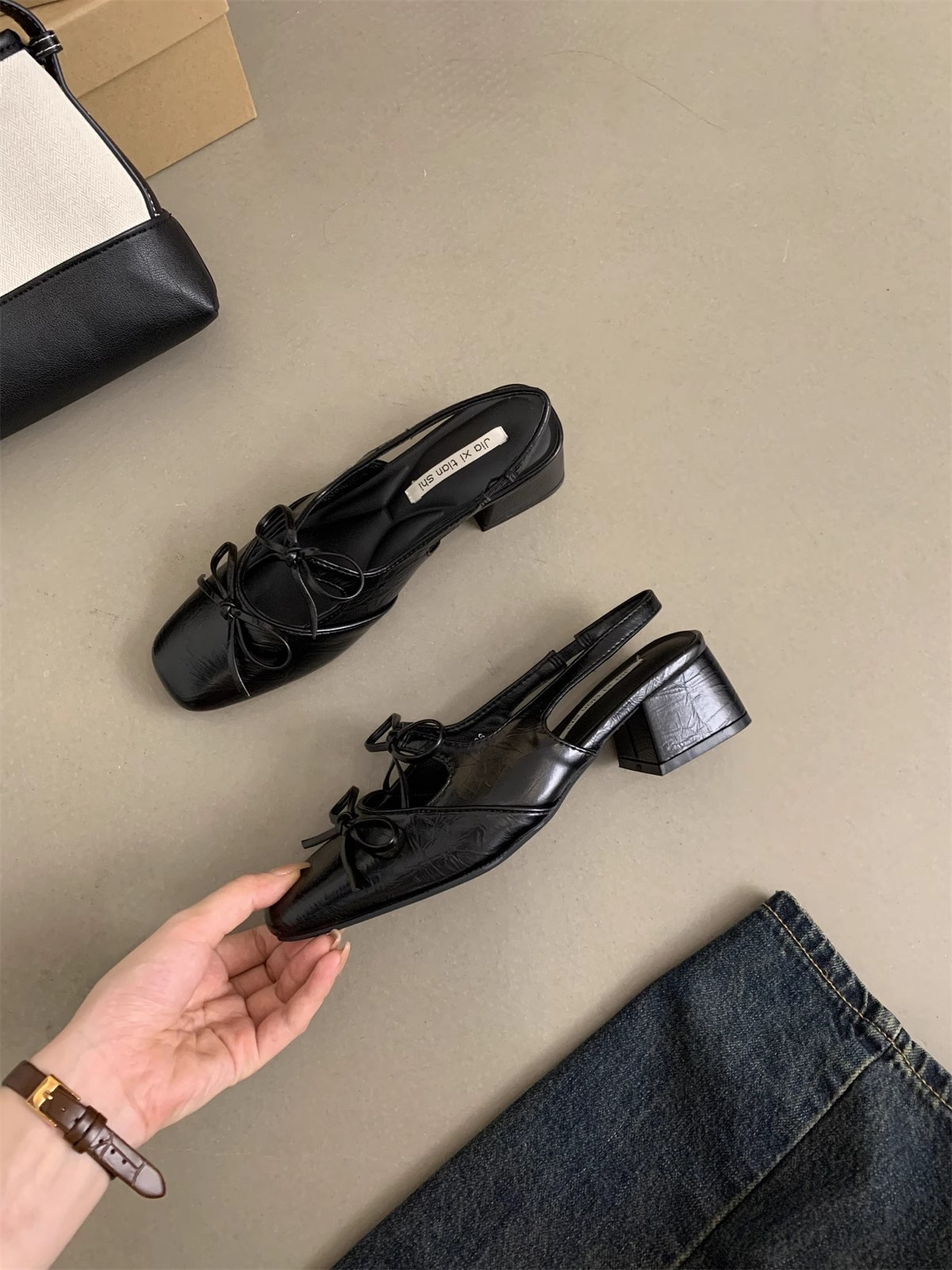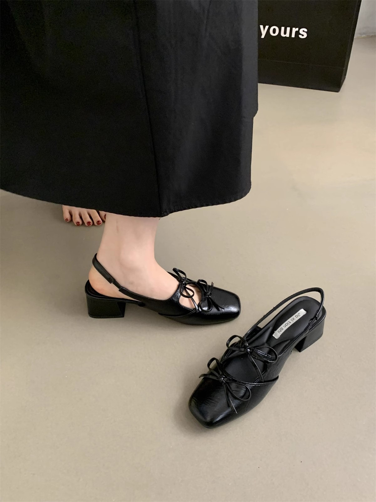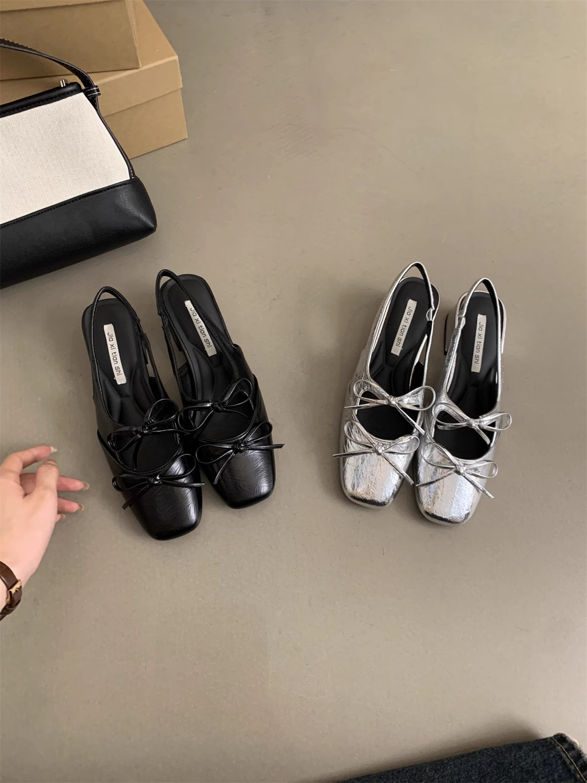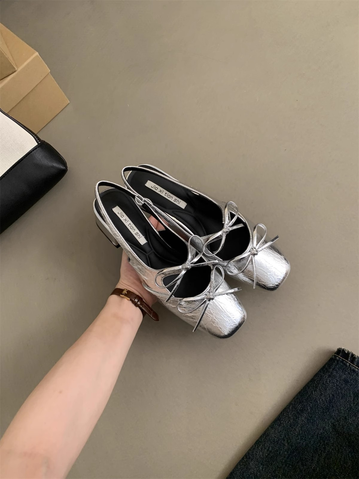 【小香风包头凉鞋】夏季外穿 法式女士气质粗跟仙女风银色后空单鞋女