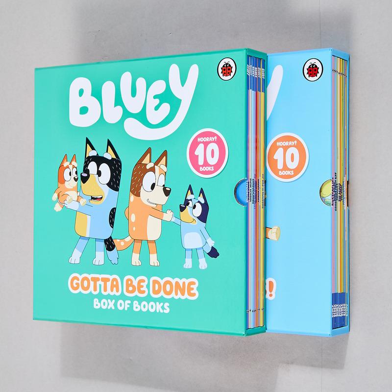 The Bluey: Gotta Be Done! 10 Picture Books Story Collection Box Set is a delightful collection of stories featuring Bluey, Bingo, and their family. Each book in the set explores everyday adventures, family moments, and imaginative play, capturing the humour, warmth, and relatable experiences that make Bluey such a beloved series for children and parents alike.