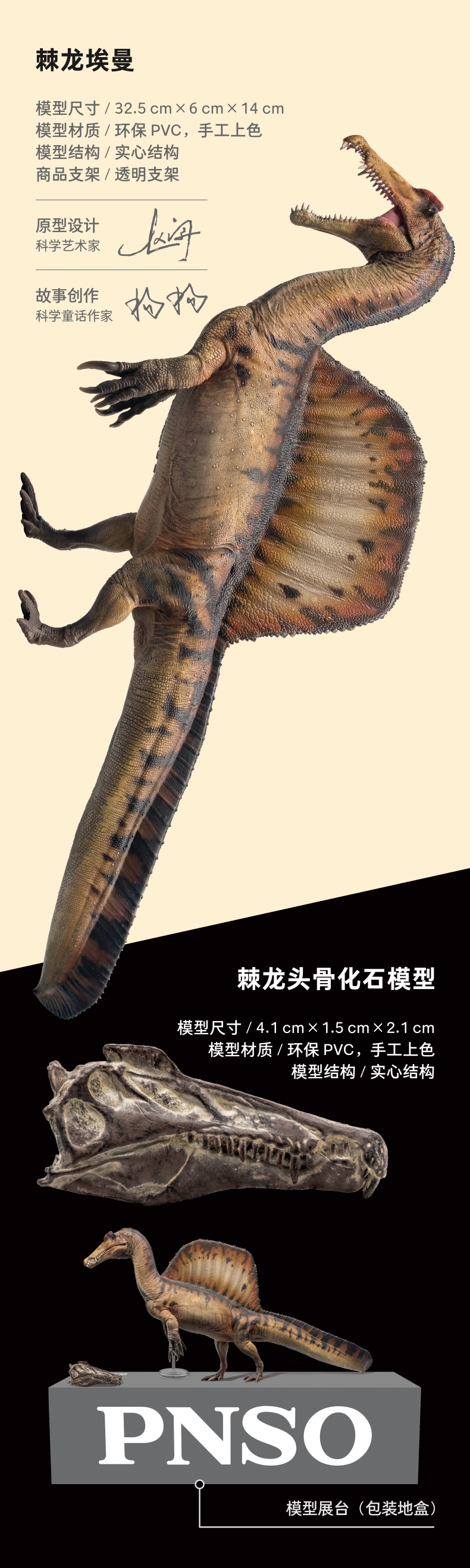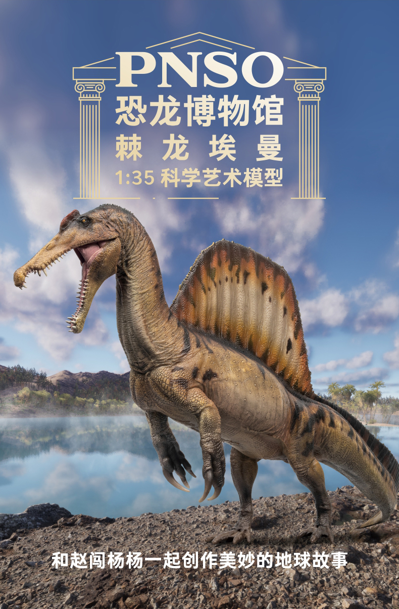 PNSO棘龙埃曼附棘龙头骨恐龙博物馆1:35科学艺术模型
