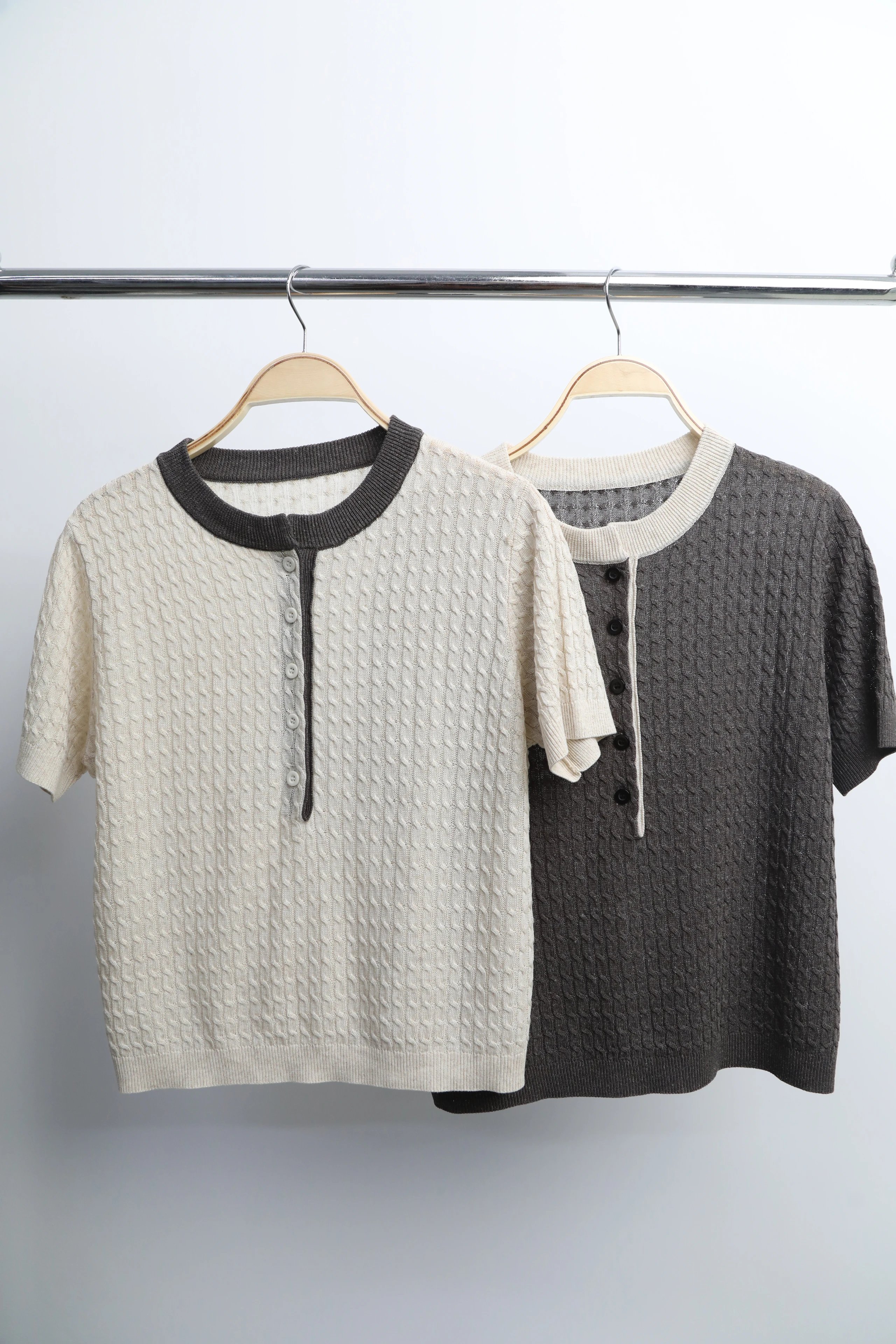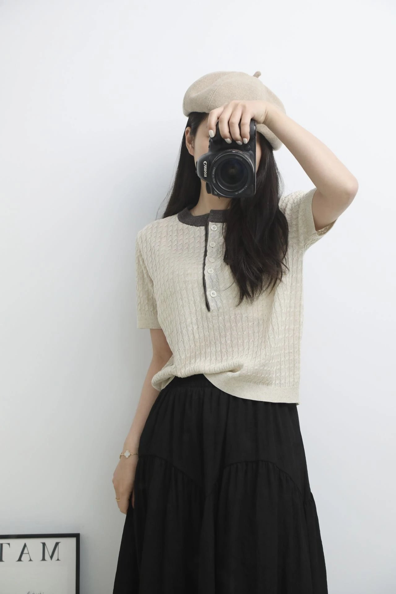 独家限量发售⚠️L*Piana御用天丝亚麻混纺料❗️定制绞花针织短袖!上身有种随性慵懒的感觉❗️