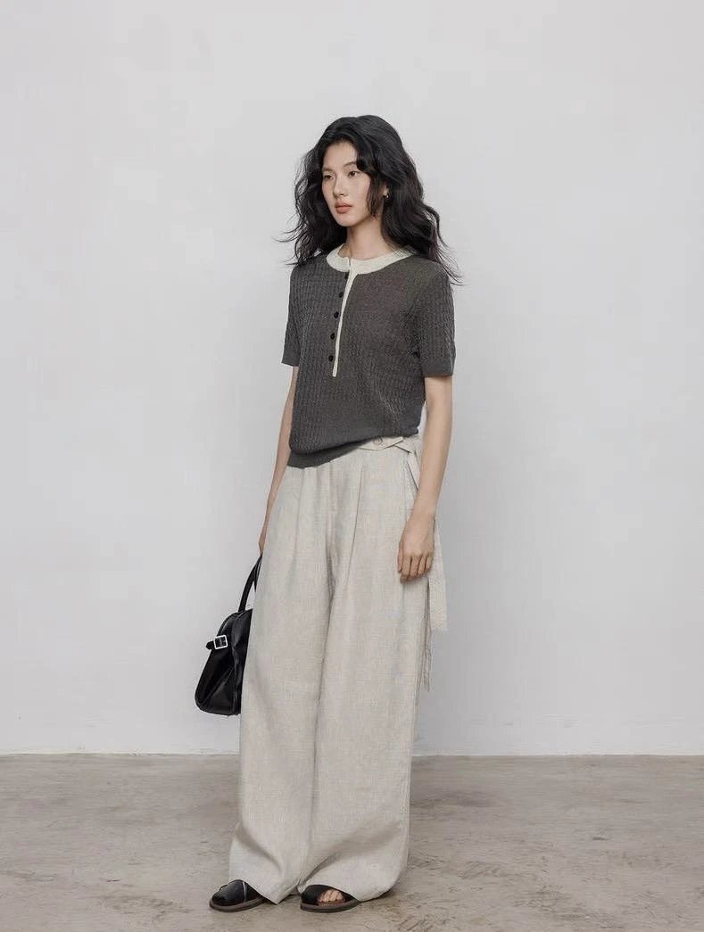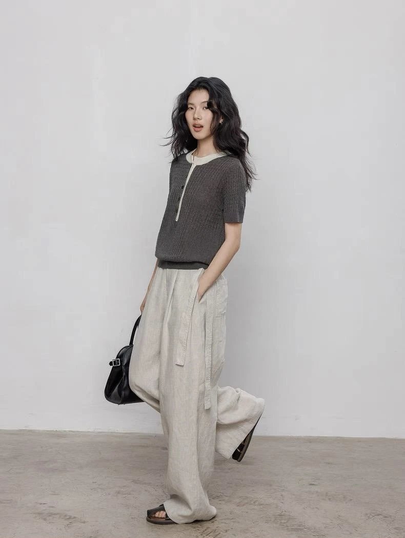 亚麻的质朴肌理碰撞天丝的柔滑垂坠