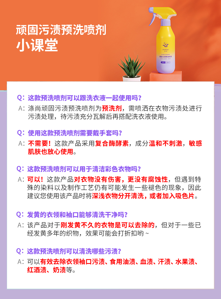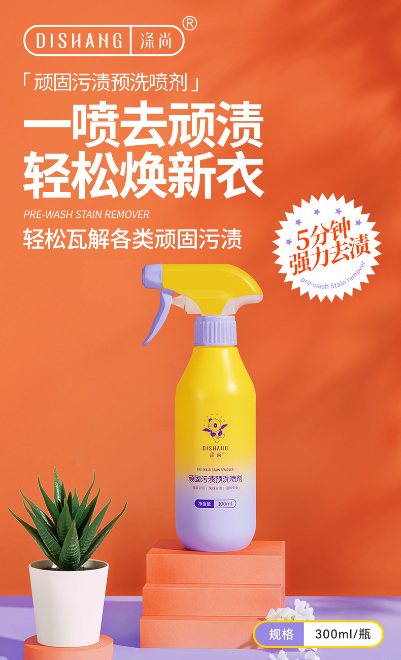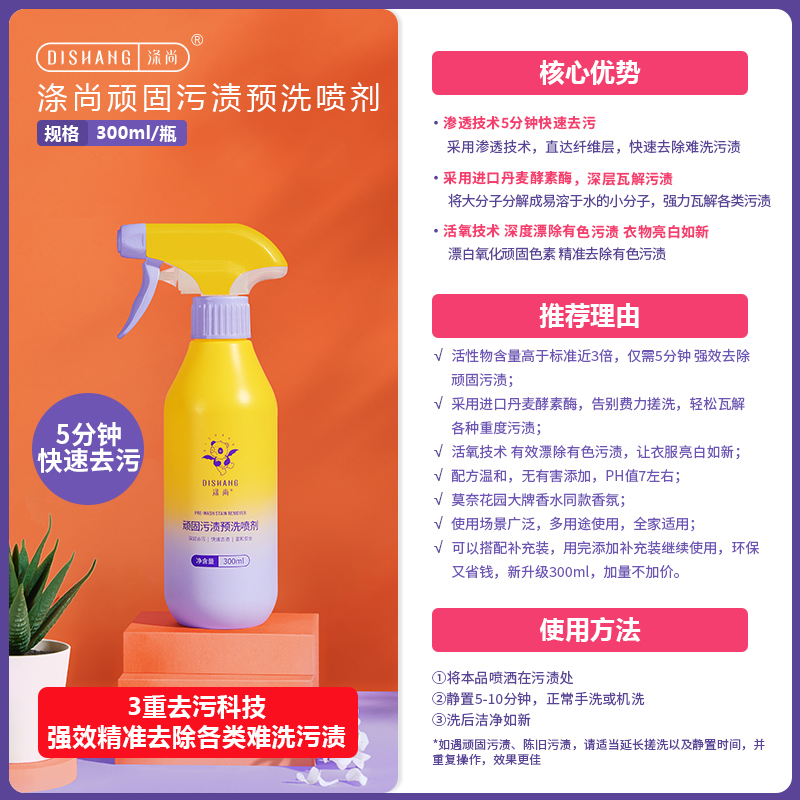 这是一款专攻衣物顽固污渍的高效预洗清洁剂,无需费力搓洗,5 分钟就能快速瓦解各种难洗污渍,就连校服上那些难缠的污渍也能轻松搞定,新升级配方去污力更出众!