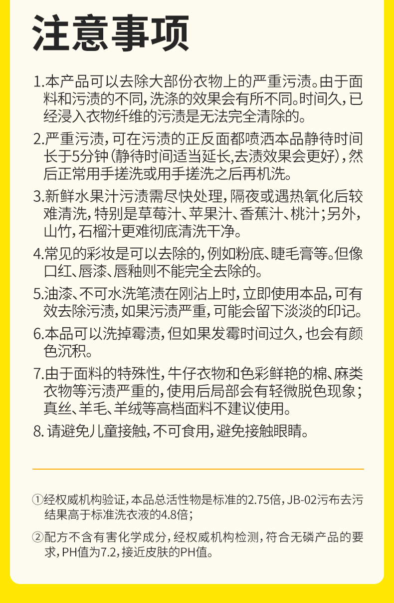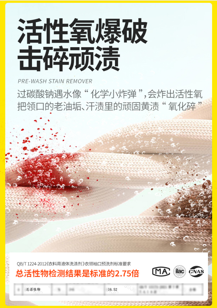 √活性物含量高于标准近3倍,仅需5分钟 强效去除顽固污渍;