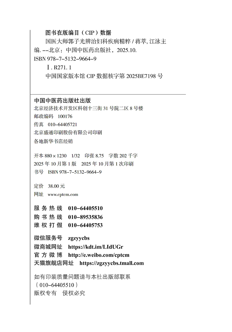 国医大师郭子光辨治妇科疾病精粹 蒋萃 江泳 主编 以妇科常见疾病为例 闸述郭子光教授辨治妇科疾病的学术精粹 中国中医药出版社