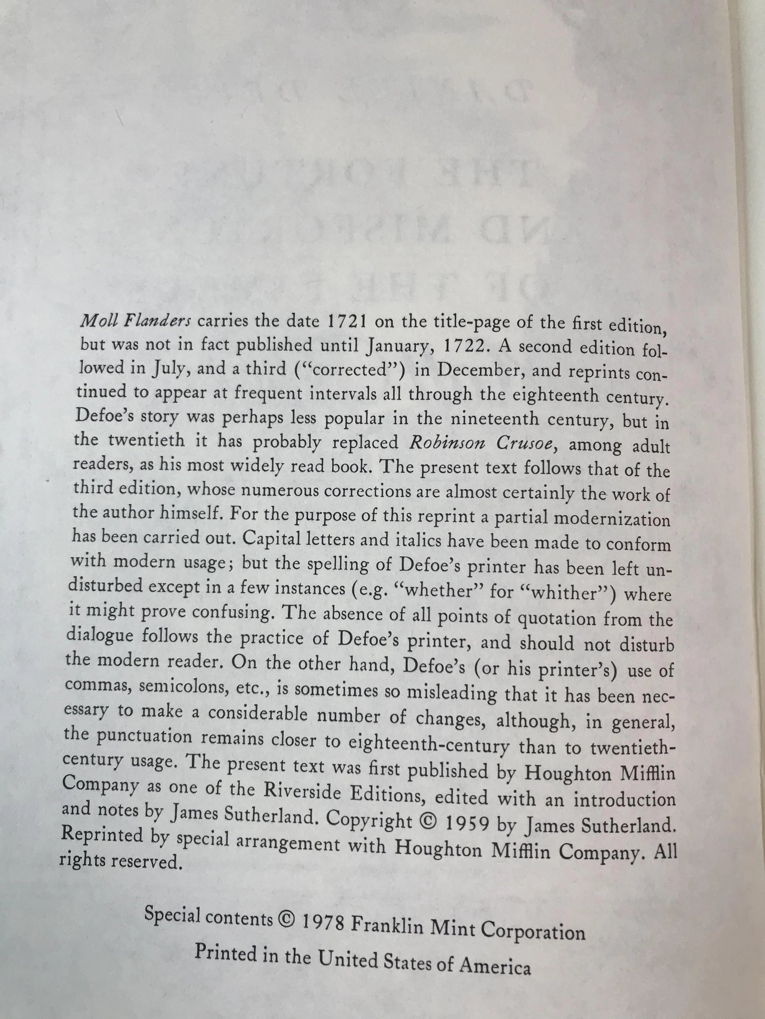 限量版!含藏书票 丹尼尔・笛福《摩尔・弗兰德斯》 配插图 富兰克林图书馆豪华皮装本