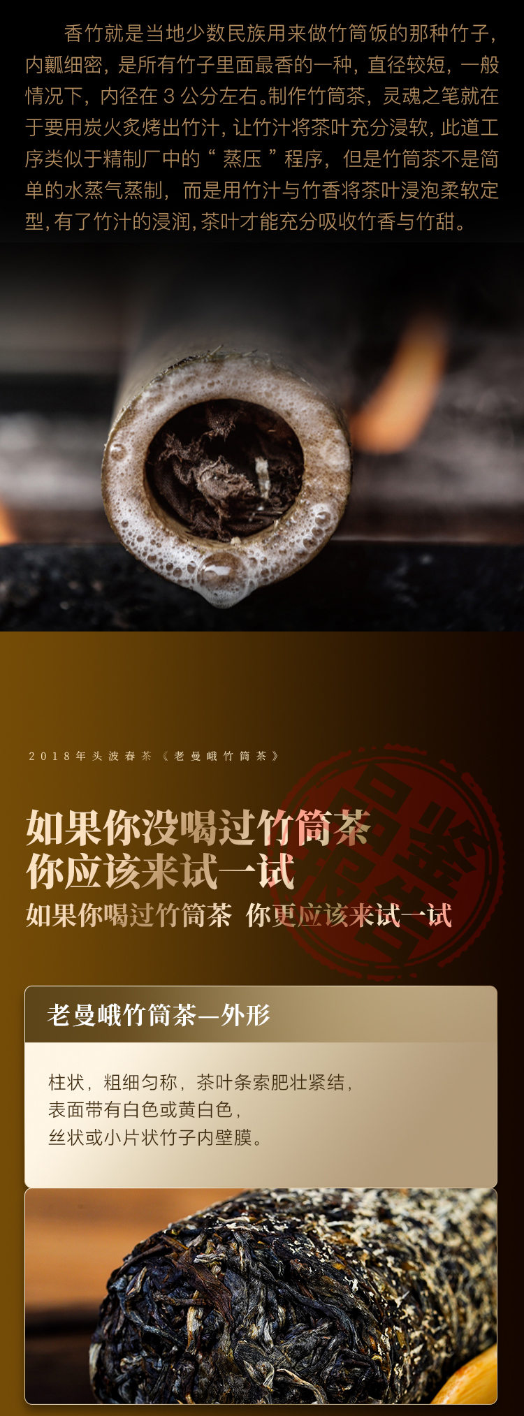 10月8日晚20点【老曼峨竹筒茶】2018年头春头采岩老亲制普洱生茶收藏送礼佳选补贴价放送300g/筒
