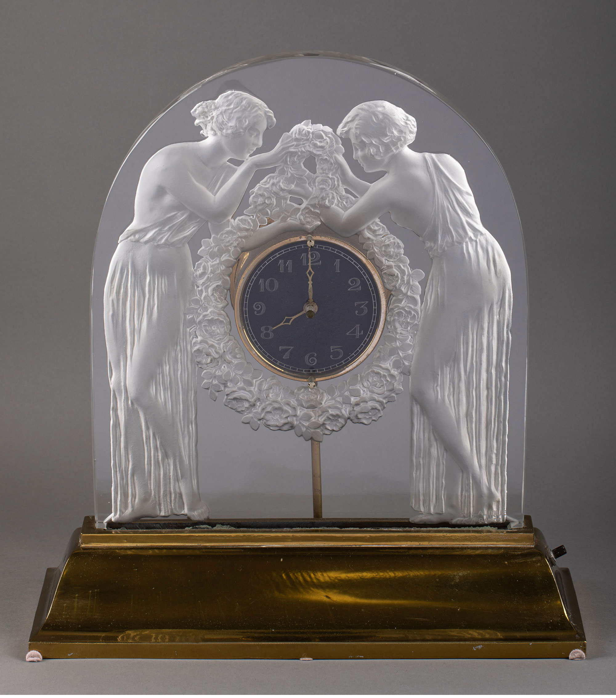 1926年代法国出品「Deux figurines」少女主题水晶座钟