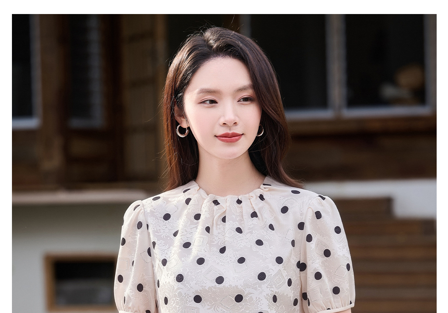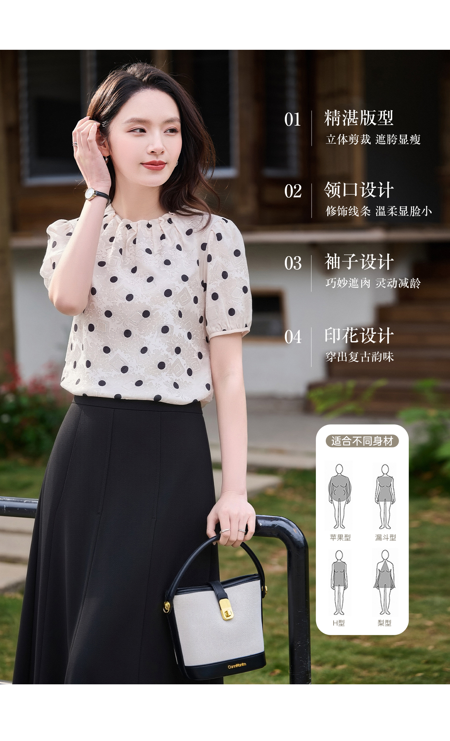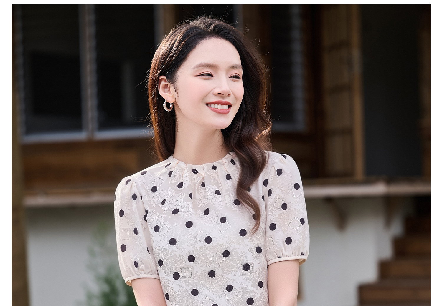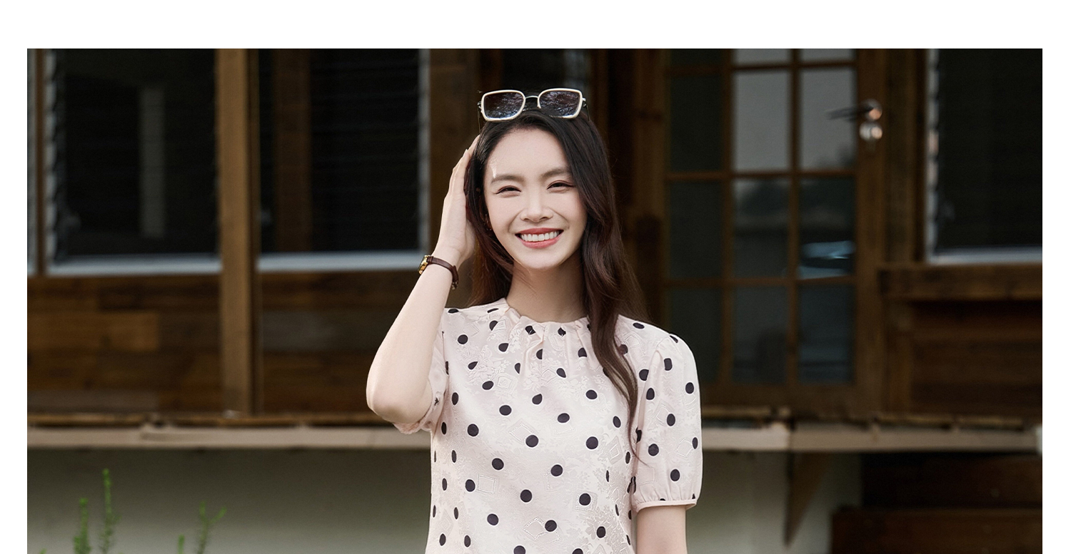 米思阳2026夏季新品优雅减龄木耳边领衬衣复古波点百搭衬衫女2090