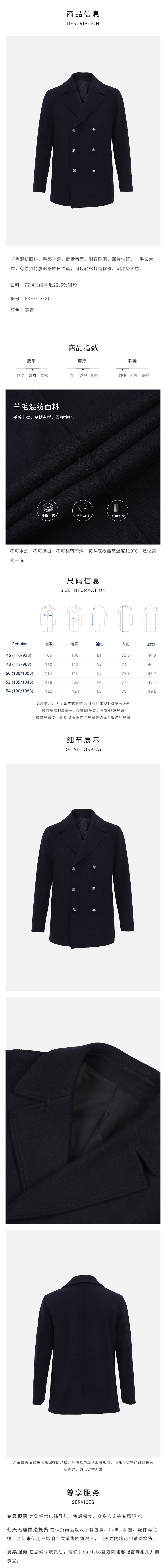 callisto日蚀蓝羊毛混纺大衣 FSFEC058C