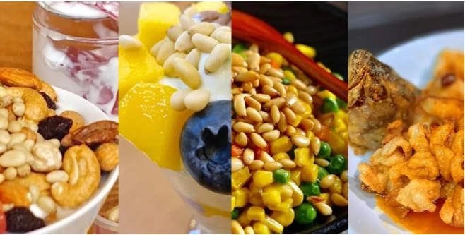 除了可以直接食用,领略原汁原味👍🏻 红松子在烹饪中也能发挥独特的作用 可以将红松子仁炒熟后加入各种菜肴,为食物增添坚果的香气和酥脆的口感 ✔️炒松仁玉米 ✔️松子酥饼或松子面包 ✔️酸甜松子鱼 ✔️拌酸奶、拌冰淇淋 无论是直接食用、烹饪、烘焙还是拌沙拉,都能带来独特的风味体验,想想都馋哭了